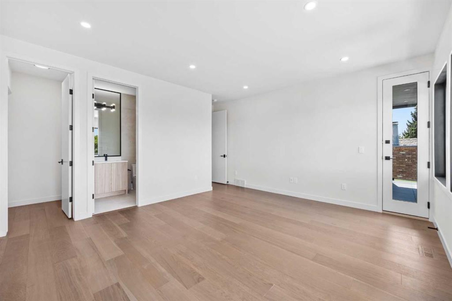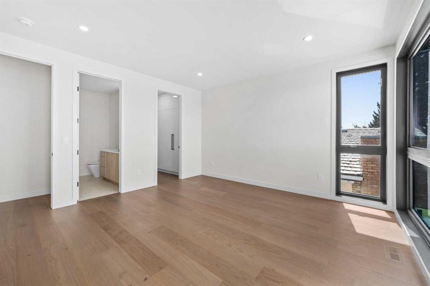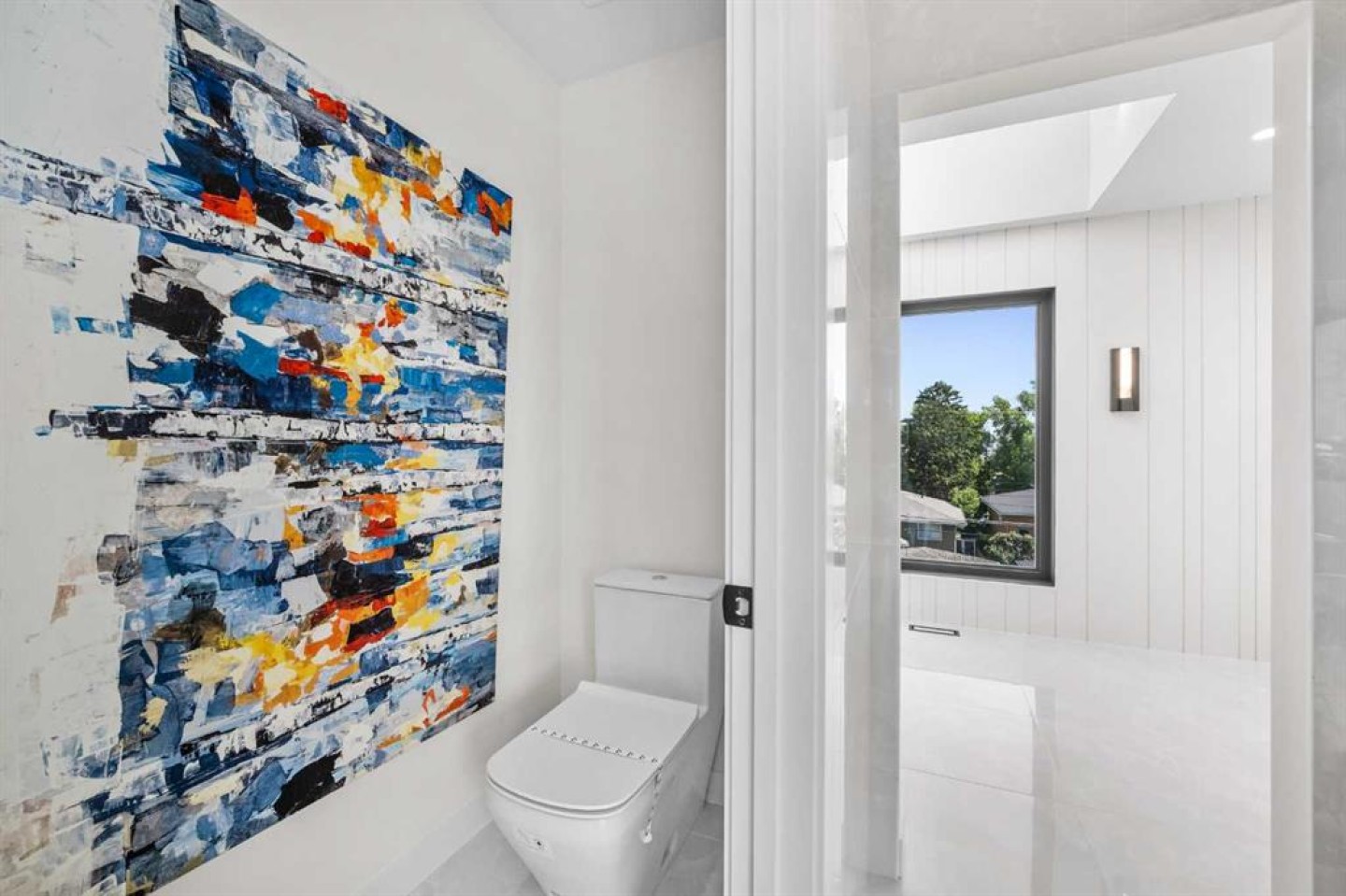 An architectural masterpiece by Silverpoint Custom Homes and Paul Lavoie Interior Design. Perched on a spectacular lot overlooking Bridgeland, and offering breathtaking views of the City and Rocky Mountains. A 5,200-square-foot gem, which seamlessly blends Hollywood Hills vibes, in a meticulous and one of a kind design. A fantastic open floor plan with a separate formal living and dining rooms overlooking the city. Boasting a truly magnificent kitchen, featuring a 13ft waterfall island and all MIELE appliances. Hardwood floors weave throughout the four levels including the basement, creating a harmonious atmosphere of seamless design. The main level surprises you with a hidden coat closet, a spacious mudroom, and a private den overlooking a backyard oasis with a large deck, (hot-tub ready) Move effortlessly between levels via the elevator or a captivating floor to ceiling glass-walled staircase leading to three generous bedrooms and a master top suite, simply like no other. The second floor offers 3 spacious bedrooms with panoramic city views from 2 bedrooms, private balconies, and a separate family lounge with access to a full guest bath. A fabulous laundry room and linen closet complete this level, not to mention large picture windows offering fulll sunrise worthy east views. The third-floor PRINCIPAL BEDROOM is a showstopper with a HUGE BALCONY showcasing the best panoramic city and mountain vews. A separate lounge area with coffee bar, fridge and a built in TV LIFT separate the bedroom area. As you enter the ensuite, flooded with natural light, a magical SMARTGLASS window gives you the option of privacy, or to enjoy the fabulous city views while soaking in the tub. A luxurious dual vanity, dual spa shower area surrounded by glass, featuring heated floors and shower bench. The walk-in wardrobe suite is a one of a kind dream space, with built in's that will rival a designer shop. Large skylights, a huge window and your own washer/dryer, make this the perfect dressing area. The lower level caters to the extended family and features a media area with full bar, gym, and a large bedroom. A full bath including a steam shower completes this level with all heated hardwood flooring. The outdoor spaces surrounding the house lets you indulge in extended year round outdoor living. A large front patio with a fire pit option, and seating lets you indulge in the west city and mountain views. The rear yard offers you a great dining space, and private relaxation areas with an optional hot tub, and a multi purpose sports area or green space. This home as expected includes all Smart home features, an elevator, extensive internal glass walls, AC, infloor heat, and an oversized garage with a full third car garage option which can be built prior to possession for the buyer. An amazingly unique home with modern, yet classic design elements, encompassing every luxury option a discerning home owner would desire in their dream home.