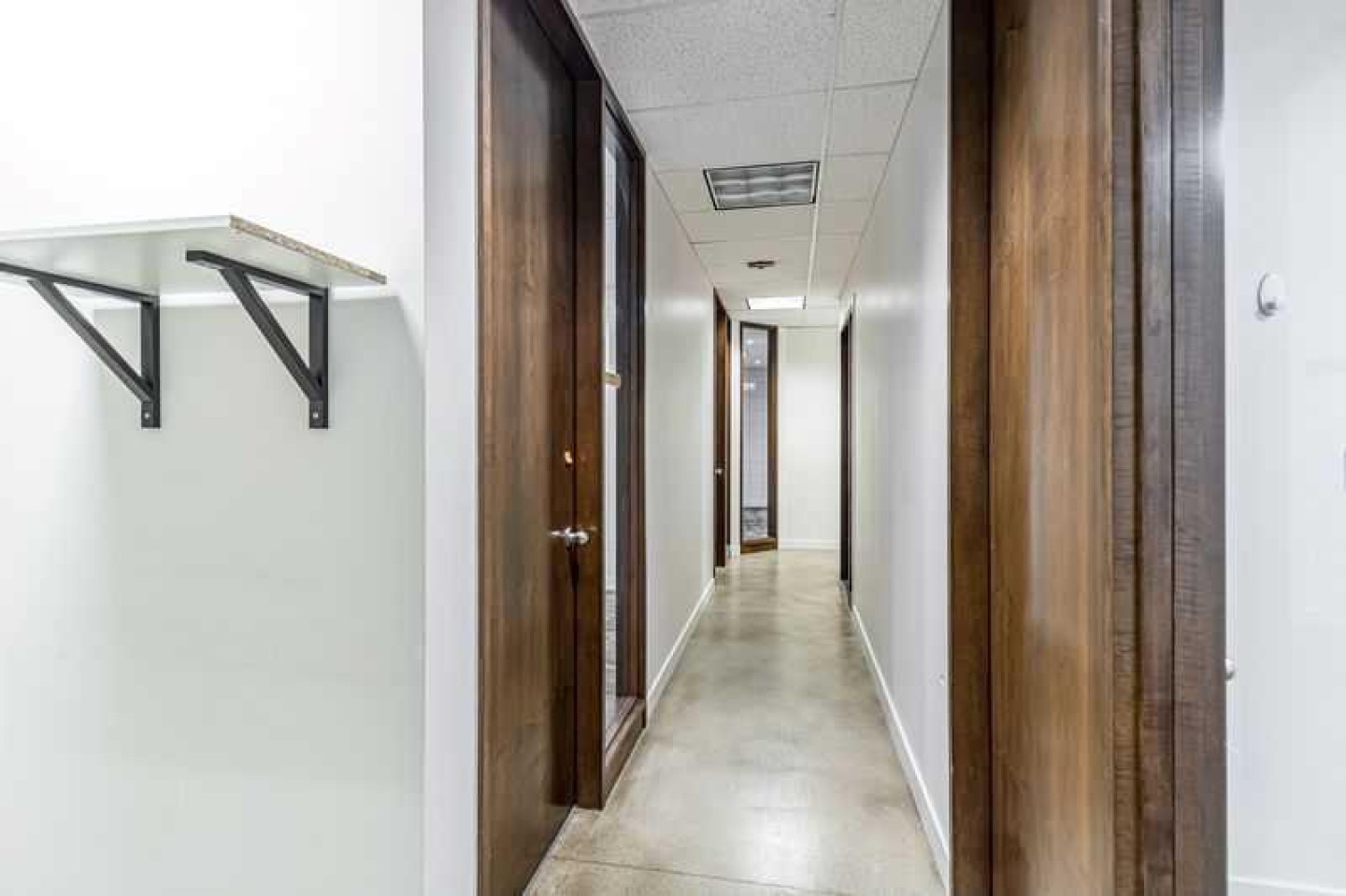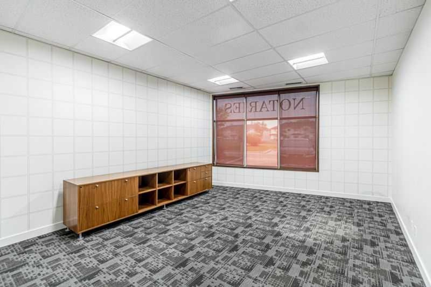 This impressive 2,619 sq. ft. main-floor, end-unit office condominium in the Douglasdale Professional Building presents a standout opportunity for businesses seeking strong visibilty along Calgary's busy 24th Street corridor. Fully renovated in 2018 with a $200,000 investment, the Space was originally tailored for a boutique law firm and now offers a polished, efficient layout beginning with a finished shared foyer that leads into a warm reception area accented by exposed brick and an adjacent client seating zone. The interior includes six well-planned private offices, two 2-piece washrooms, dedicated copy and file rooms, and a generous staff kitchen/lunchroom outfitted with quality cabinetry, an inset double sink, tiled backsplash, built-in microwave, dishwasher, and refrigerator. High-end touches such as etched concrete flooring with carpet inlays, 9-foot ceilings, full-height doors, and full wheelchair accessibility contribute to a refined and professional atmosphere. The property provides six assigned parking stalls plus 25 additional shared surface stalls, ensuring ample parking for both staff and visitors. Located just minutes from Quarry Park-with its extensive green spaces, established business community, and mixed-use developments-the site benefits from excellent drive-by exposure, convenient access to major. roadways, and proximity to essential amenities. Well-suited for professional services, veterinary practices, or corporate operations, this premium space offers a compelling opportunity in one of Calgary's most desirable commercial areas.