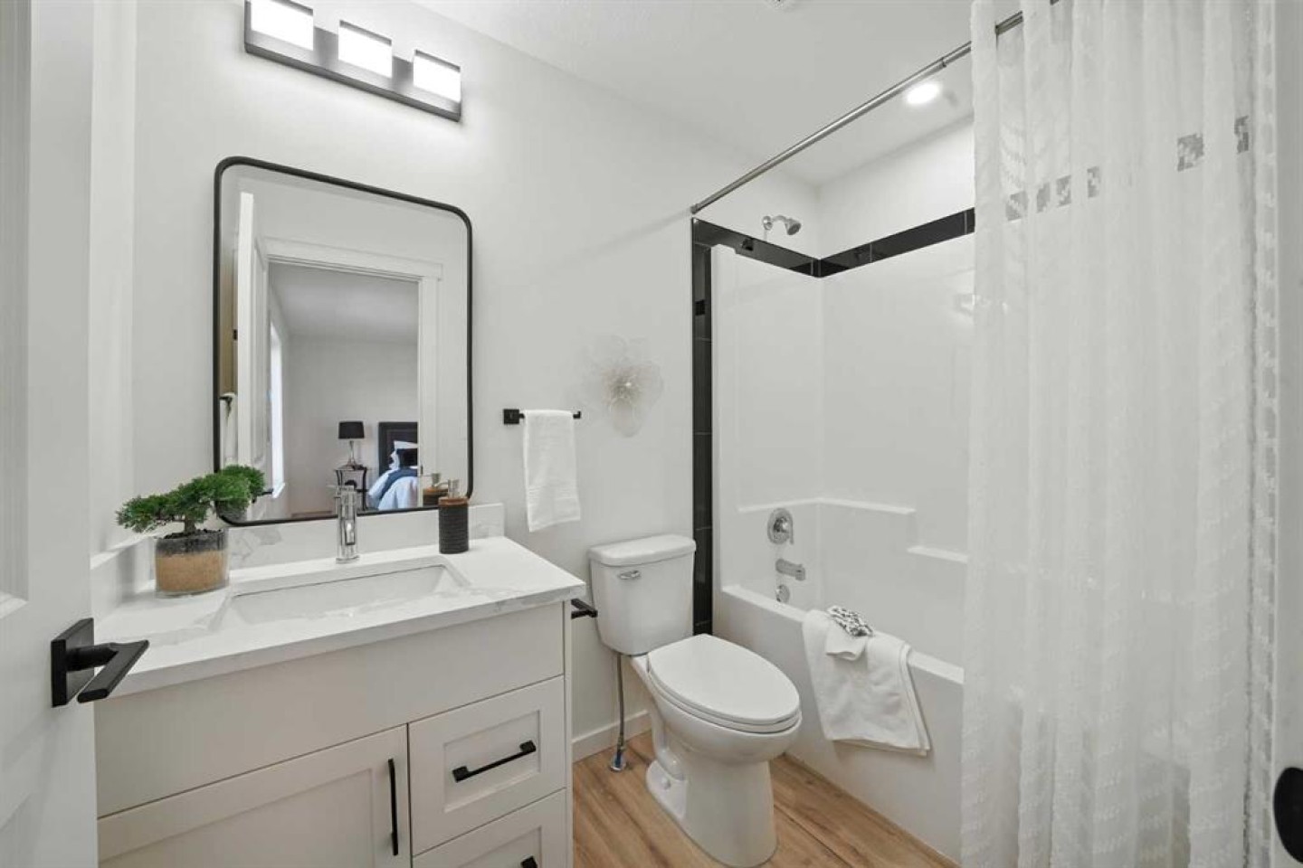 Step right in to a home that exudes LUXURY AND COMFORT, A practical and very functional floorplan, ideal for a growing family. Very IMPRESSIVE CURB APPEAL sets the tone- modern architectural lines, striking exterior finishes, and a welcoming front entry that feels fresh and inviting! Inside you will be wowed by the contemporary design, where clean lines, airy open spaces, and thoughtfully chosen finishes come together to create a home that feels both STYLISH and livable. High-end materials, sleek cabinetry, and high-end luxury vinyl plank flooring gives every room a polished, magazine worthy look, while large windows flood the home with natural light.. The main floor features an OPEN CONCEPT, 3 bedrooms, a four-piece bathroom, living room, dining and kitchen. Kitchen features: corner pantry with censored lighting, QUARTZ COUNTERTOPS, soft close doors and drawers, FULL POLISHED BLACK SUBWAY TILE, water line to the fridge, STAINLESS STEEL APPLIANCES, Undermount granite sink and black hardware. Shingles are 35-year asphalt, foundation is (ICF) insulated concrete form. The basement has been mostly wired and features a finished four-piece bathroom. Future floor plan for basement features 2 spacious bedrooms, and a generous size family/recreational room. Plus the utility room where you will find the laundry and roughed in in-floor heat. PROGRESSIVE 10-year NEW HOME WARRANTY! The 20x24 double attached garage has rough in for heat, a floor drain and soft close modern overhead doors with driftwood finish. Other great features include: whitewash pine VAULTED CEILINGS on main floor, beams in living, dining and kitchen, electric fireplace in living room has feature wall with live edge wood mantle, commercial grade hot water tank, 35 year shingles, LED lighting and QUARTZ countertops throughout. Every detail in this show home has been carefully curated to showcase the latest in modern trends and craftsmanship- a perfect blend of function and flair. It’s a home that doesn't just impress at first glance. but continues to inspire as you explore every beautiful space.