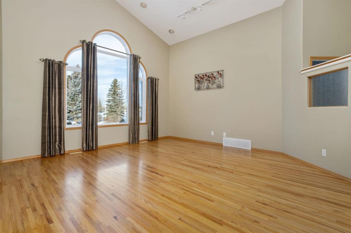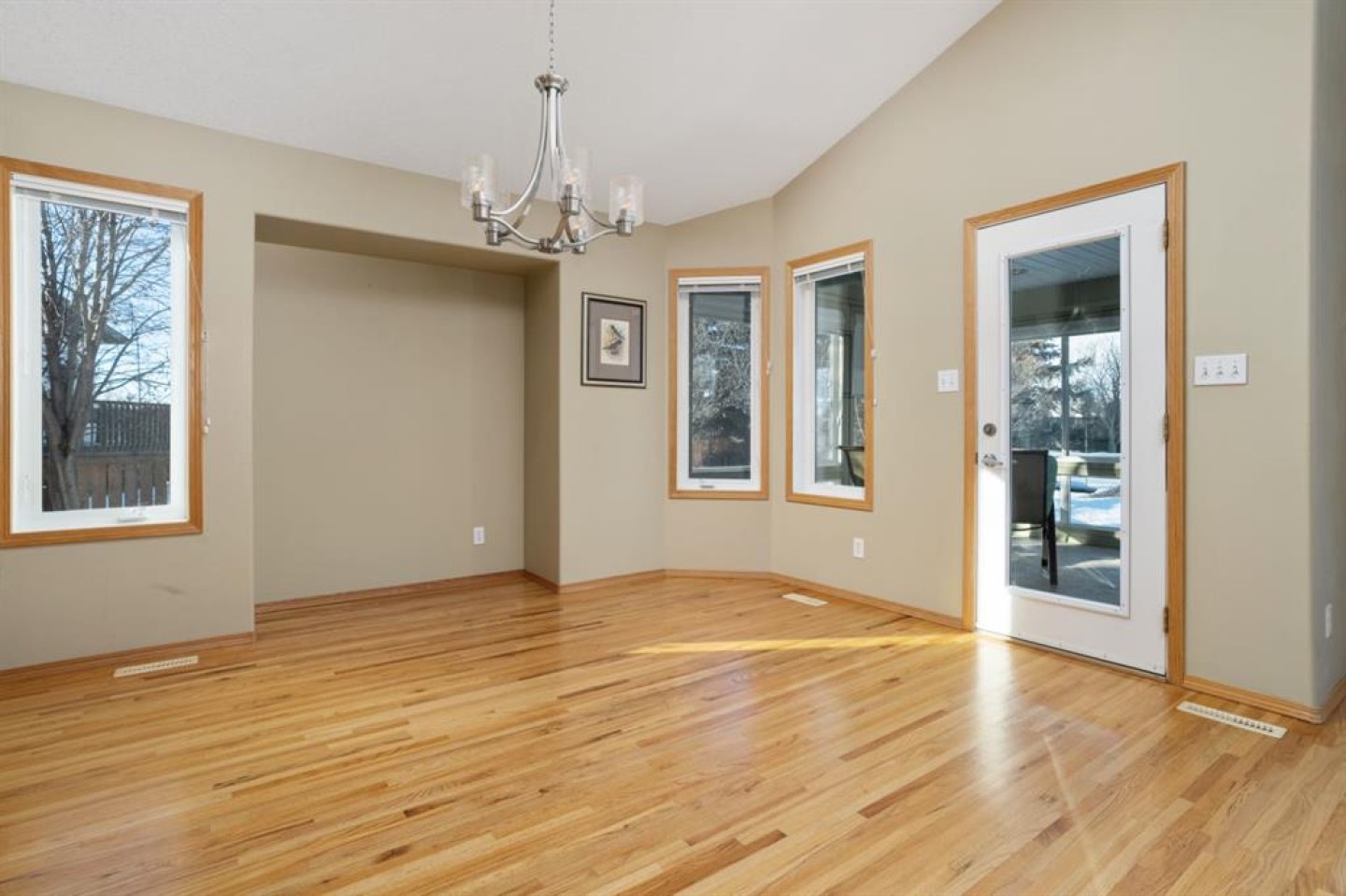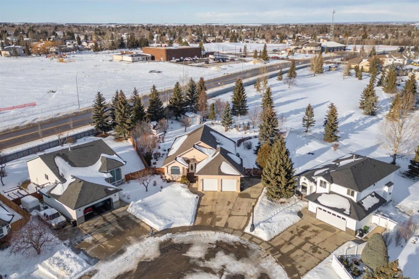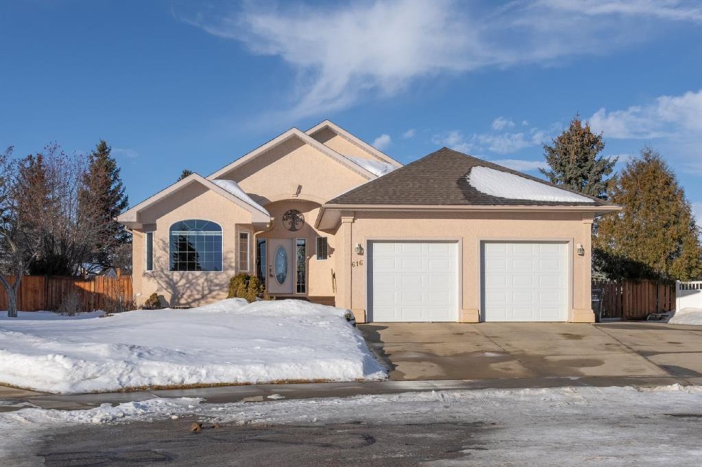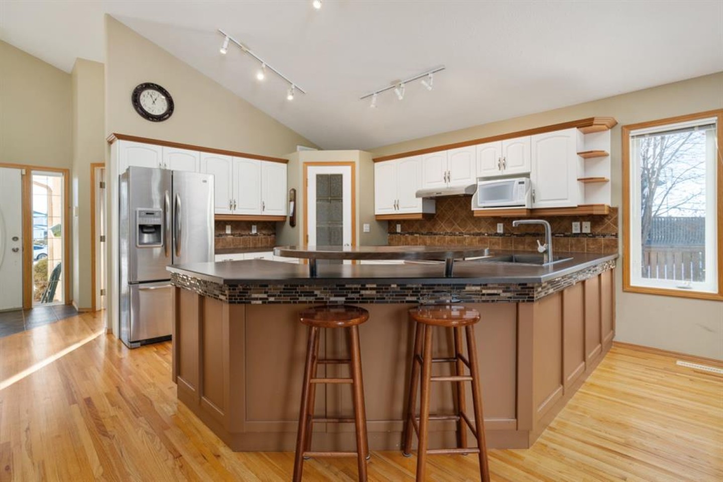 Parkridge is Calling! Have a look at this beautiful, fully finished Bungalow with a fantastic location. Situated on almost half an acre at the end of a cul de sac AND backing a green space! Over 1600 sqft plus a cozy sunroom that gives view across your private, maturely landscaped backyard - makes for the perfect backdrop for you and your family. Vaulted ceilings, hardwood/tile floors, open concept design, main floor laundry and more. This great floor plan sees 2 dedicated main floor bedrooms and a room at the front with closet that can easily act as a 3rd or use as a home office. Excellent entertaining space anchored by a huge kitchen with white cabinetry, corner pantry and eating bar plus a nice dining area that you can expand for family occasions. Retire to the spacious living room with vaulted ceilings and a tall window with a soaring view to the yard. Conveniently located off this space is the primary bedroom with the same views, a walk in closet, private 4pc bath with large tub and walk-in tile shower - as an added bonus the laundry room is right outside the door. Heading downstairs you'll enjoy the fully finished space with 2 bedrooms, a 3pc bath, 2 family room areas and a flex space with a bank of cabinets, Fridge and sink plus lots of dedicated storage. Comes with a nice double garage with epoxy flooring and RV space that could be expanded into the yard for larger units. The yard... incredible... mature landscaping with a mix of trees and shrubs, fully fenced and no neighbours behind you; there's even a cute 8x10 play shed and a newer 12x16 Shed with Overhead door and power - a great workshop or seasonal storage. There is so much to love about this place and with quick possession available it is ready and waiting for you to call it home.