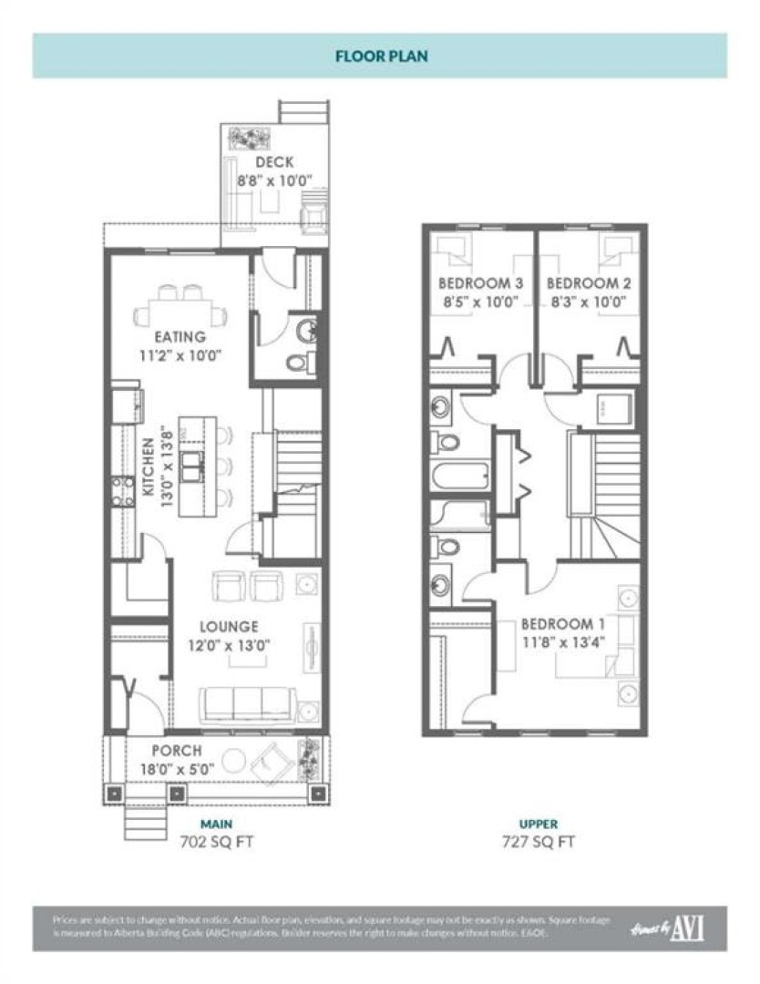 At 1,429 sq ft, the plan is efficient in the ways that actually matter. The main floor is anchored by a well-resolved kitchen with a CENTRAL ISLAND and flush eating counter that keeps daily life social without sacrificing prep space. A PROPER PANTRY and thoughtful cabinet placement keep clutter in check, while the dining area is intentionally defined — not squeezed into a corner. The living room is scaled for real furniture and real evenings, not just staging photos. Front and rear outdoor spaces extend the living area in both directions, giving flexibility throughout the day.