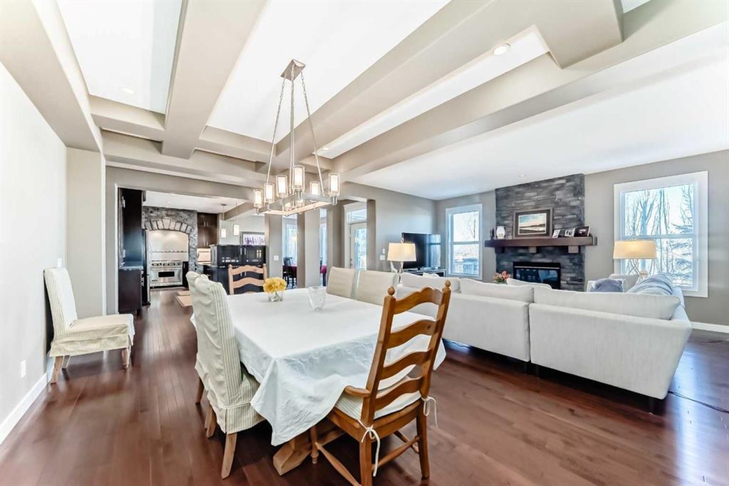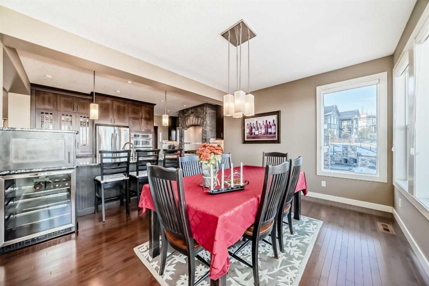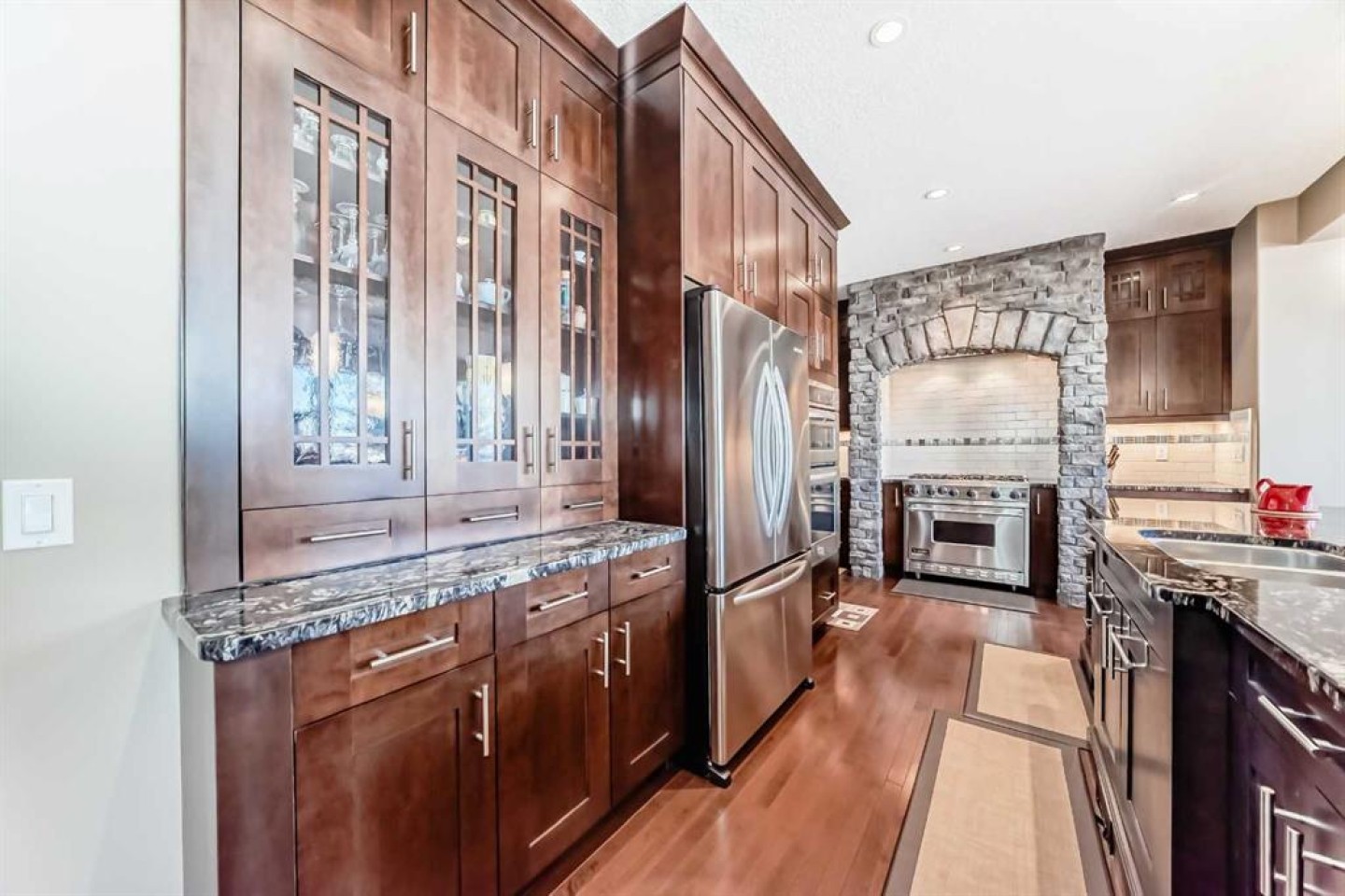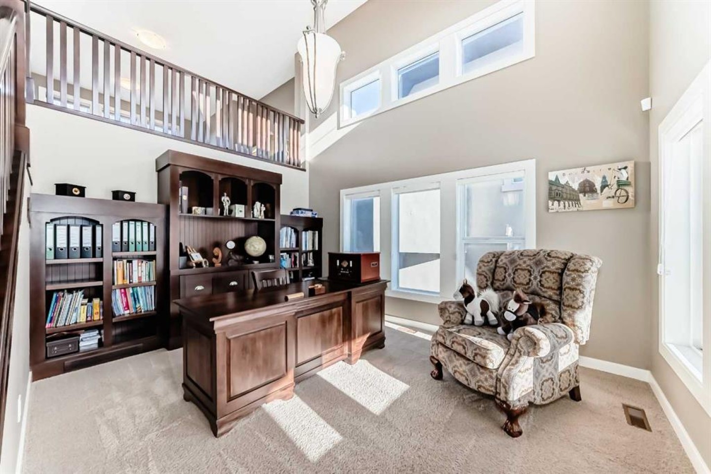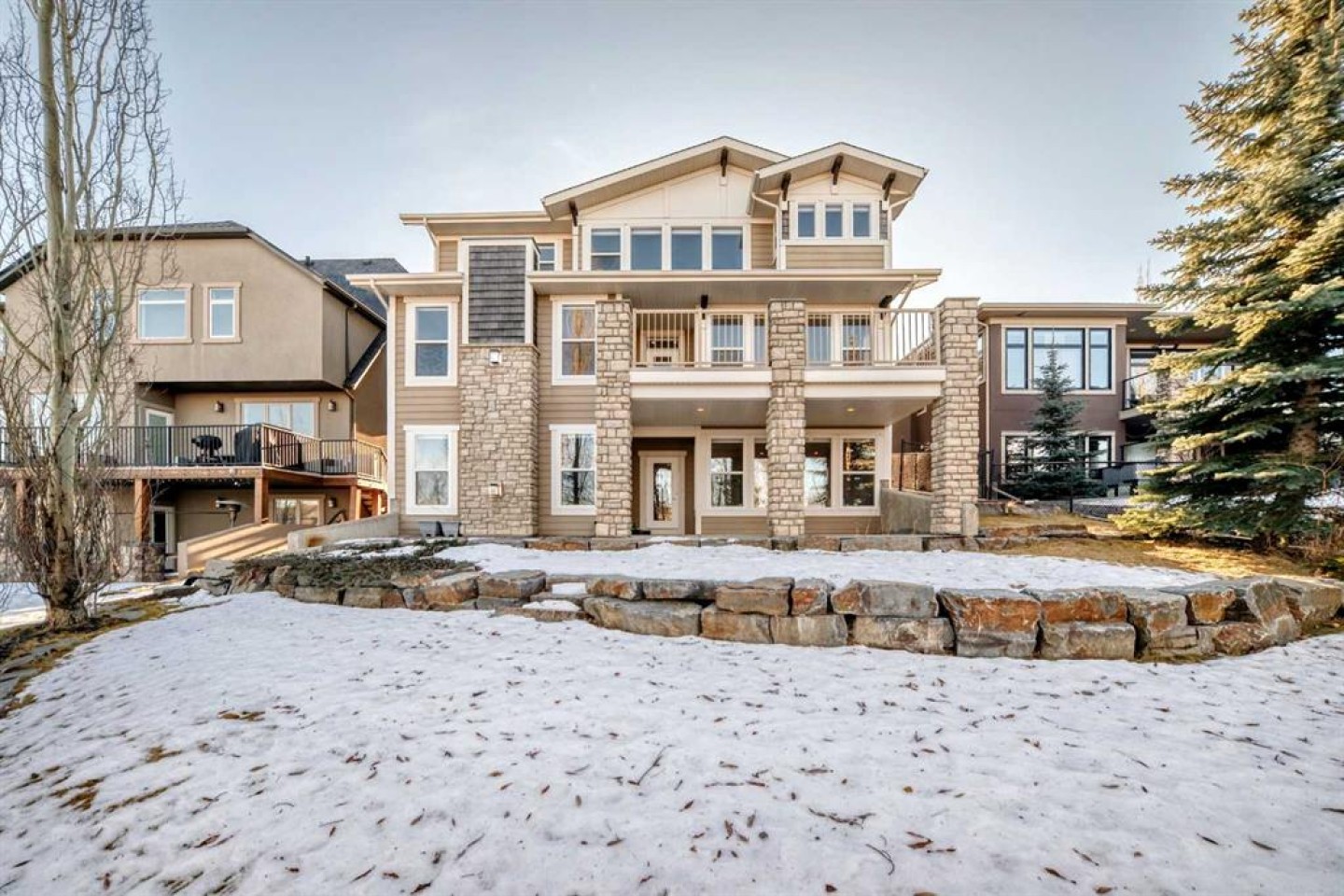 This spectacular home in Crestmont is set on a beautifully landscaped lot with sweeping views and offers an impressive sense of arrival with a grand entrance, soaring ceilings, and dramatic staircase. The gourmet kitchen features abundant counter and cabinet space, a large island, wine fridge, walk-in pantry, and a butler’s pantry or coffee station with prep sink—perfect for both daily living and entertaining. The dining and living areas are anchored by a striking stone-faced gas fireplace, creating a warm and inviting atmosphere. A main-floor study with custom built-ins adds versatility and function. Upstairs, the primary retreat enjoys stunning views, dual walk-in closets, and a spa-inspired ensuite. Two additional bedrooms with walk-in closets, a 5-piece bath, loft area, and upper laundry complete this level. The finished walkout lower level offers exceptional space with a games/rec room, family room with gas fireplace, wet bar, 3-piece bath, media room, and a workout area that can easily convert to a fourth bedroom. Outside, relax in the professionally landscaped yard. An oversized triple garage provides exceptional parking and storage. An outstanding home in the scenic community of Crestmont—must be seen to be appreciated.