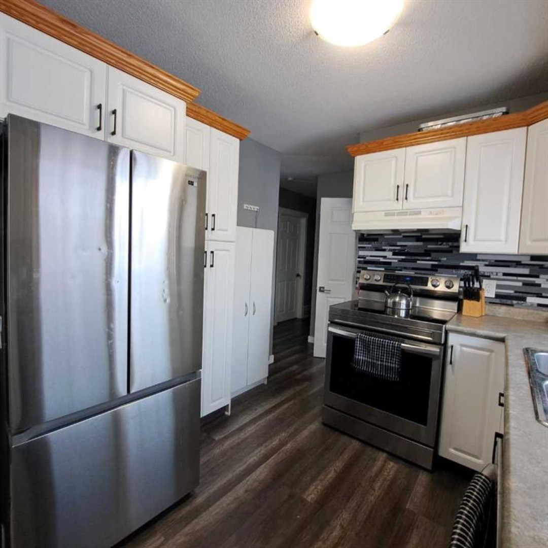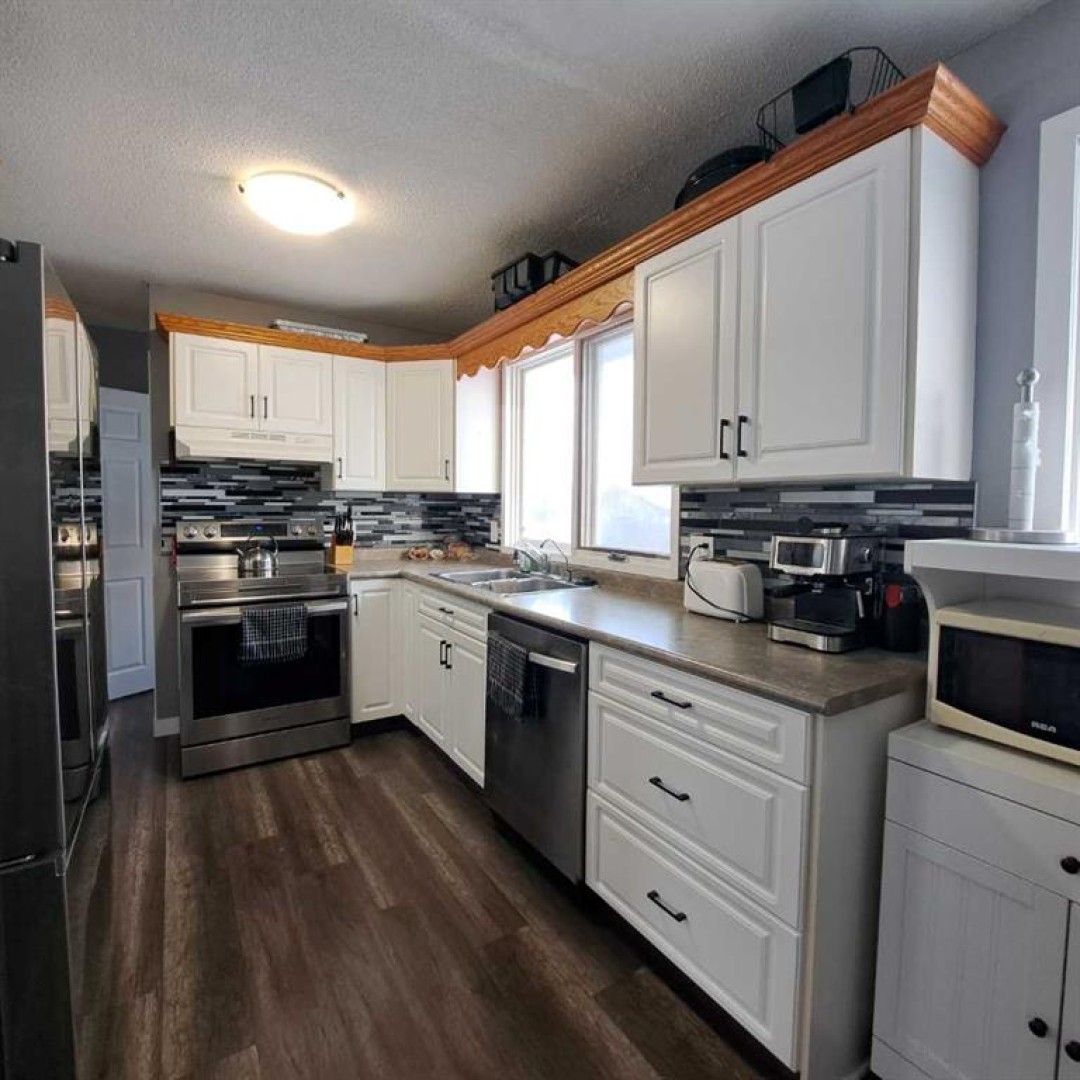 Updated 3 bedroom bungalow located in Marwayne, AB. You'll love the quiet location, large yard and the single detached (insulated) garage with additional rear alley access parking. Updates include Main level flooring ( carpet free), white kitchen cabinetry, paint in modern grey tones, full bathroom renovation, doors, fixtures and more! The basement is waiting for your personal finish! Room to add a large family room and bedroom! The basement also has a RI bathroom, furnace/utility area and laundry. Concrete basement walls. All appliances are included.