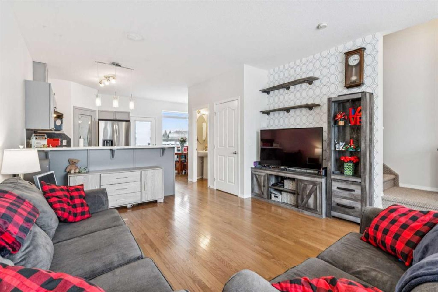 Nicely upgraded 3 bedroom townhome backing on green space with playground across the street! Upgrades include hardwood floors throughout the main, beautiful quartz counters with newer S/S appliances and fresh paint on the main floor and stairwell. The main floor also has 9ft ceilings and large bay windows front and back and a full size walkin pantry in the beautiful kitchen. There is a sunny breakfast nook at the rear and a 2pce powder room off to the side. Upstairs features 3 bedrooms with the huge primary having a walkin closet and a shared 4pce ensuite. The unfinished basement is great for storage, has the laundry area, and roughed in plumbing for future development. This unit also has a nice deck off the rear with extra storage below.
