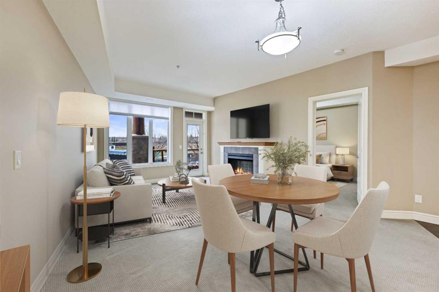 The spacious kitchen features granite countertops, a corner pantry, and ample cabinet space. Open to a cozy great room with an electric fireplace and direct access to the covered south-facing balcony, complete with a gas line for BBQs. Enjoy central air conditioning indoors or soak up the sun outside. The large primary bedroom is complemented by a 4-piece bathroom, a spacious flexible den space, in-suite laundry, and extra storage.