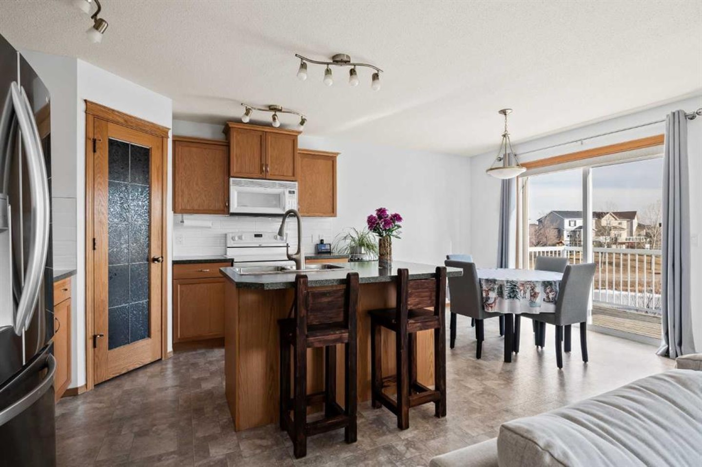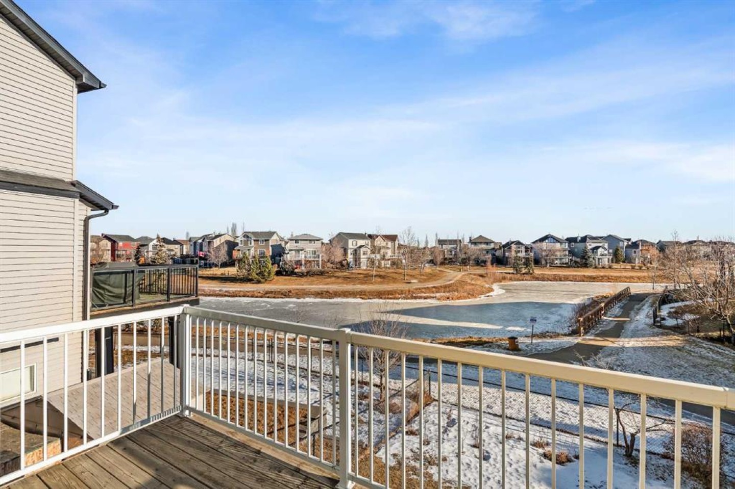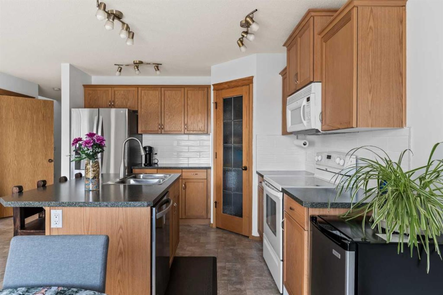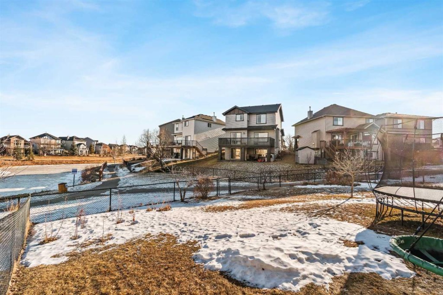 Welcome to 170 Sagewood Landing SW! This fully developed WALKOUT offers nearly 2,300 sq. ft. of living space on an impressive 5,124 sq. ft. pie lot at the end of a quiet cul-de-sac. With a sunny SE-facing backyard backing onto the pond and pathway system, there are no rear neighbours — just space, views, and direct access to the outdoors. As you enter, an open-to-above foyer sets the tone for the bright and open main floor. Large picture windows along the back of the home flood the space with natural light and frame tranquil views of the pond. The kitchen features newer S/S fridge and dishwasher, updated tile backsplash, great cabinet storage, a generous pantry, and an island that comfortably seats three — perfect for busy school mornings and weekend baking. Adjacent to the kitchen is a cozy dining nook, and a spacious living room. A main floor office adds versatility for working from home or can easily serve as a playroom or an additional bedroom. A convenient 2-pc bath completes the level. Upstairs, new luxury vinyl plank flooring leads you to a grand primary bedroom with a walk-in closet and a 3-piece ensuite with a large soaker tub. Two additional bedrooms and a full 4-pc bath finish out the upper level. The fully developed walkout basement level has 9' ceilings with large windows that offer great views of the expansive backyard and pond. The recreation/games room comes with a gas fireplace to keep you cozy during those winter months! You will also find an additional 3-piece bath, laundry room, and storage. Outside, the backyard is truly an extension of your living space. With room to run and play, plant a garden, add a hot tub, or simply soak in the views, the opportunities are endless! The double attached garage is fully insulated, drywalled, and painted with built-in shelving, and the additional storage shed is perfect for keeping your seasonal items stored. Families will love this location — tucked away on a private street yet close to multiple schools, playgrounds, athletic parks, golf, shops, and restaurants. Notable updates include roof (approx. 12 years old), hot water tank (Dec 2023), water softener (Mar 2023), cabinet hardware, lighting, and custom wooden closet shelving/organizers. A home that gives you space, lifestyle, and room to grow — welcome home!