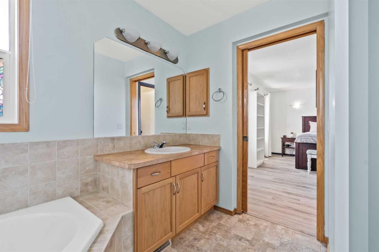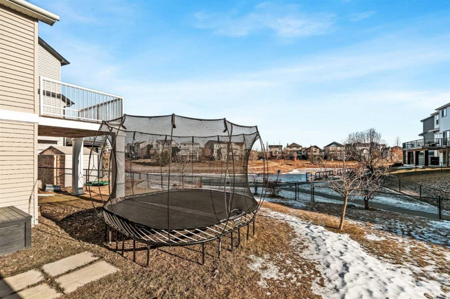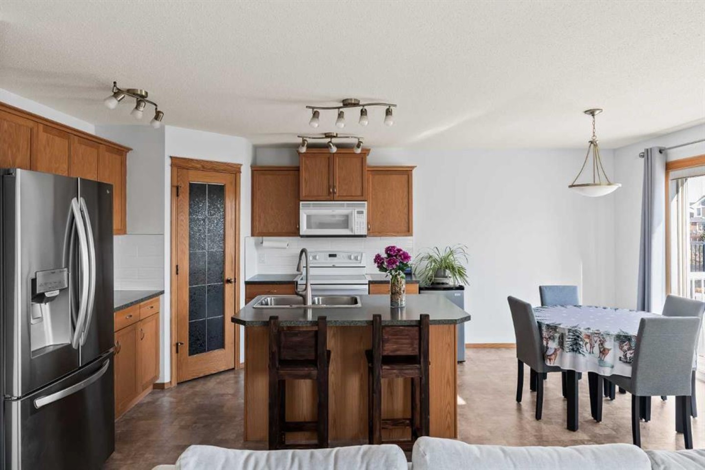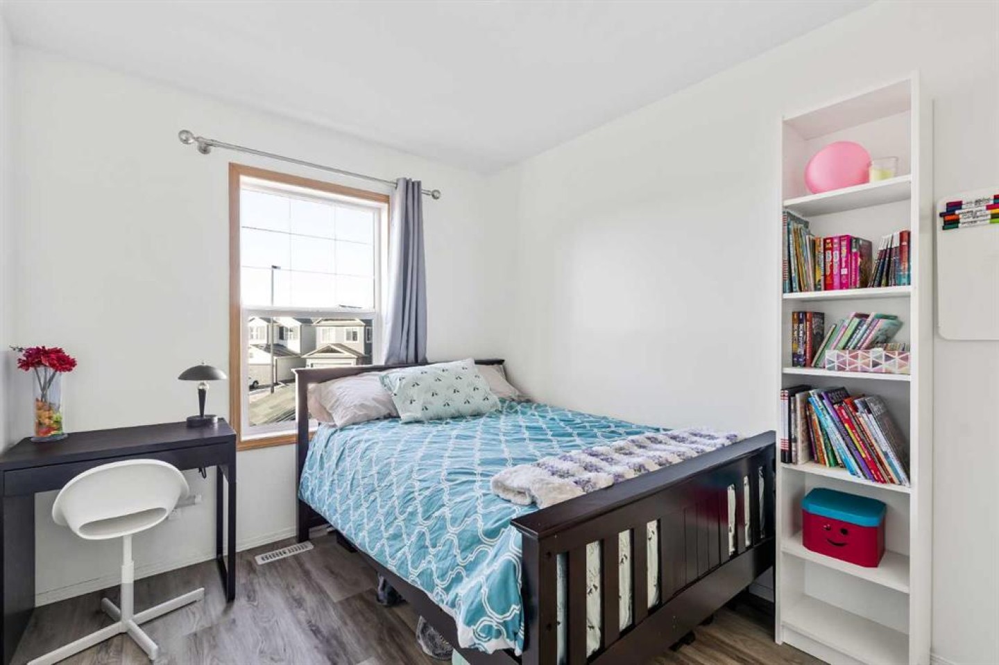 Welcome to 170 Sagewood Landing SW! This fully developed WALKOUT offers nearly 2,300 sq. ft. of living space on an impressive 5,124 sq. ft. pie lot at the end of a quiet cul-de-sac. With a sunny SE-facing backyard backing onto the pond and pathway system, there are no rear neighbours — just space, views, and direct access to the outdoors. As you enter, an open-to-above foyer sets the tone for the bright and open main floor. Large picture windows along the back of the home flood the space with natural light and frame tranquil views of the pond. The kitchen features newer S/S fridge and dishwasher, updated tile backsplash, great cabinet storage, a generous pantry, and an island that comfortably seats three — perfect for busy school mornings and weekend baking. Adjacent to the kitchen is a cozy dining nook, and a spacious living room. A main floor office adds versatility for working from home or can easily serve as a playroom or an additional bedroom. A convenient 2-pc bath completes the level. Upstairs, new luxury vinyl plank flooring leads you to a grand primary bedroom with a walk-in closet and a 3-piece ensuite with a large soaker tub. Two additional bedrooms and a full 4-pc bath finish out the upper level. The fully developed walkout basement level has 9' ceilings with large windows that offer great views of the expansive backyard and pond. The recreation/games room comes with a gas fireplace to keep you cozy during those winter months! You will also find an additional 3-piece bath, laundry room, and storage. Outside, the backyard is truly an extension of your living space. With room to run and play, plant a garden, add a hot tub, or simply soak in the views, the opportunities are endless! The double attached garage is fully insulated, drywalled, and painted with built-in shelving, and the additional storage shed is perfect for keeping your seasonal items stored. Families will love this location — tucked away on a private street yet close to multiple schools, playgrounds, athletic parks, golf, shops, and restaurants. Notable updates include roof (approx. 12 years old), hot water tank (Dec 2023), water softener (Mar 2023), cabinet hardware, lighting, and custom wooden closet shelving/organizers. A home that gives you space, lifestyle, and room to grow — welcome home!