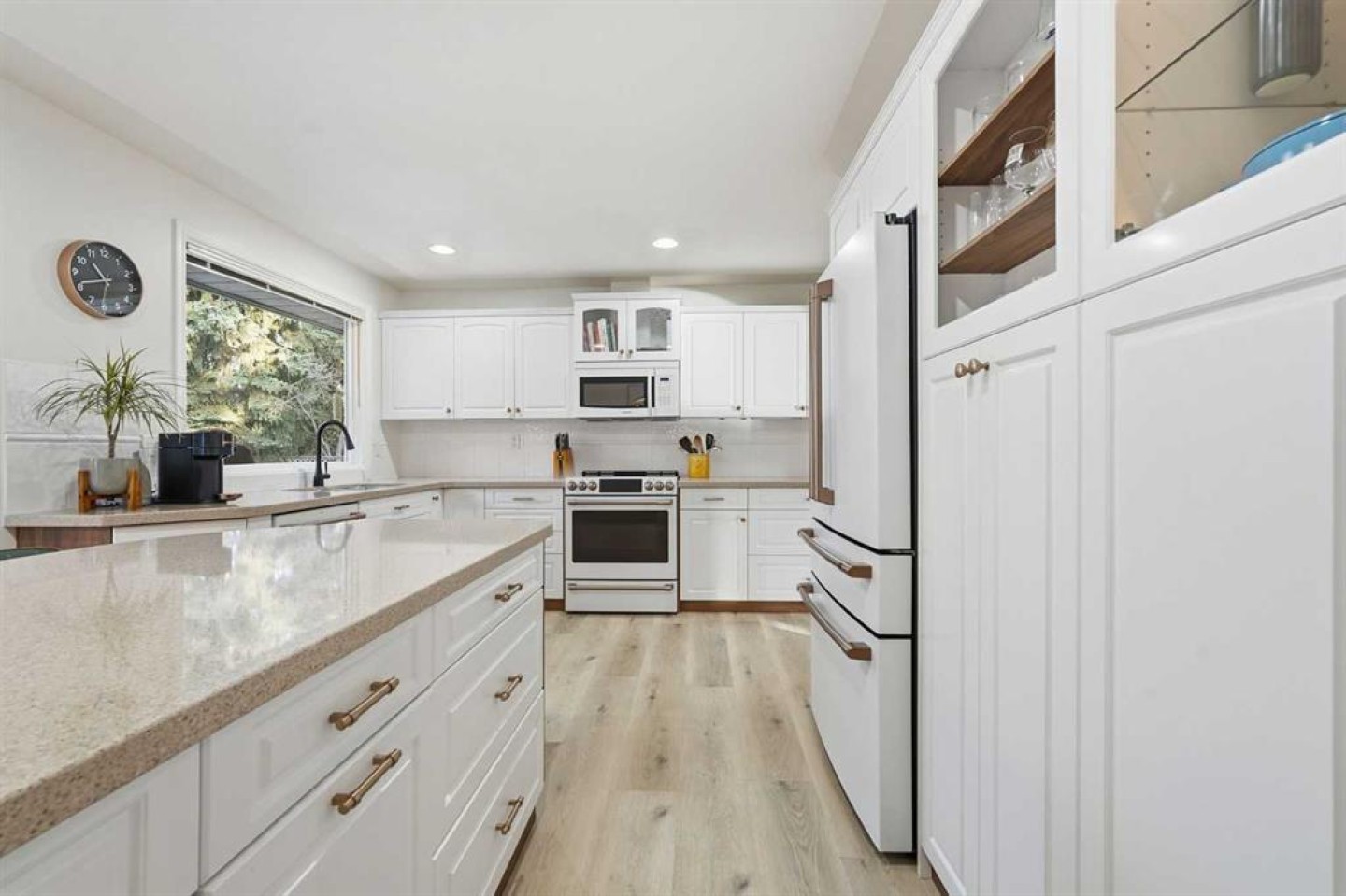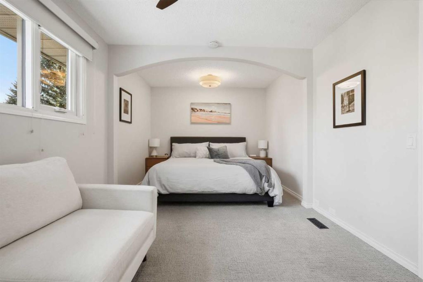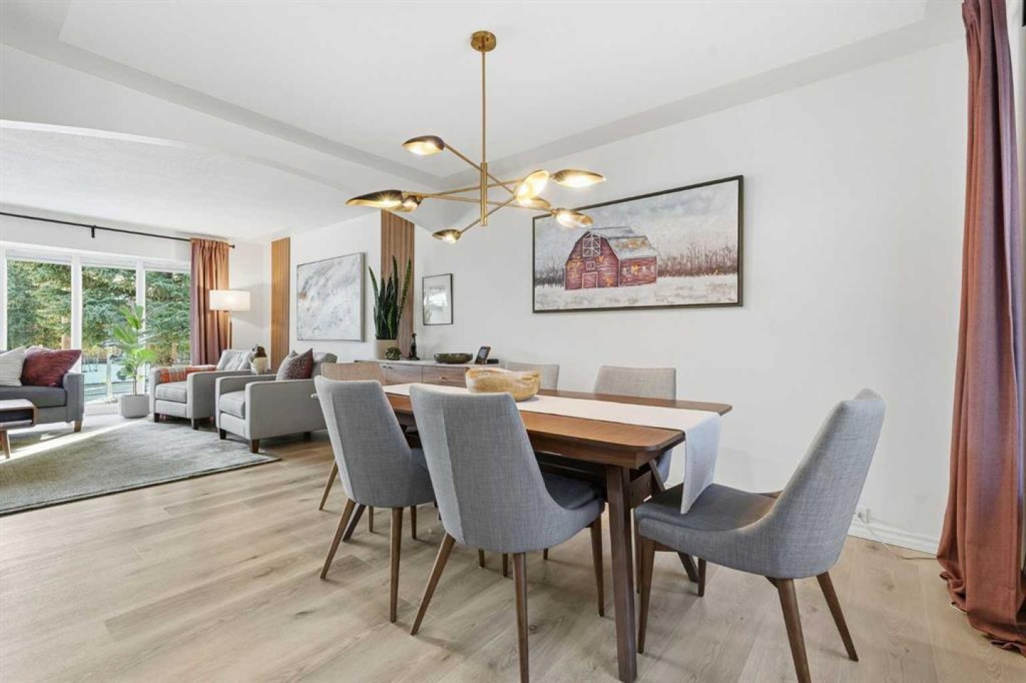 Beautifully updated and ideally situated on a quiet street in the established community of Canyon Meadows, this welcoming family home offers more than 2,800 sq ft of developed living space. The main level features new luxury vinyl plank flooring and elegant curved archways, leading into a generous living room filled with natural light. The adjoining dining area provides ample room for hosting family and friends, while the well-appointed kitchen is finished with granite countertops, a central island with eating bar, abundant cabinetry, and all-new Café Series appliances (excluding microwave). The upper level, complete with new carpeting, hosts two bedrooms and a 4 piece main bath. The spacious primary bedroom includes a comfortable sitting area, walk in closet, and private 3 piece ensuite. The lower level extends the home’s versatility with a cozy family room anchored by a gas fireplace, an additional bedroom with a full wall of built in shelving, and a 3 piece bath. The fully finished basement adds even more functional space, including an exercise room, office, and generous storage. Significant recent upgrades enhance peace of mind and comfort, including two new furnaces, a new electrical panel with surge protection, newer roof, all new flooring, fresh paint throughout, updated hardware, faucets, and lighting. Car enthusiasts will appreciate the oversized triple attached garage, complete with in-floor heating, workbenches, and a sink. Outdoors, the large, fenced backyard offers both a deck and patio—an ideal setting for outdoor entertaining. This exceptional location provides quick access to Canyon Meadows Golf & Country Club, the pathways and natural beauty of Fish Creek Provincial Park, excellent schools, shopping, public transit, and major routes including Elbow Drive, Anderson Road, and Canyon Meadows Drive.