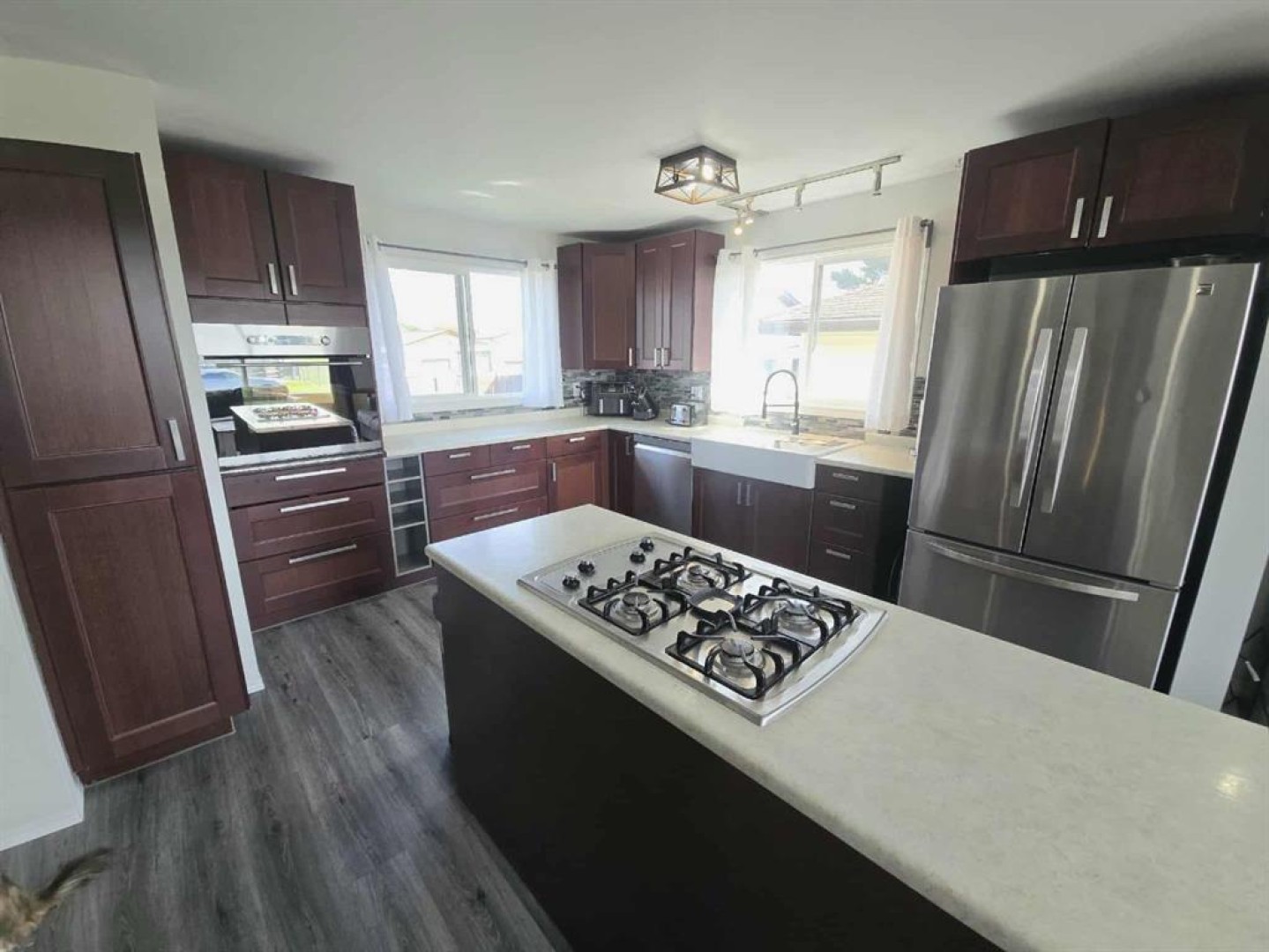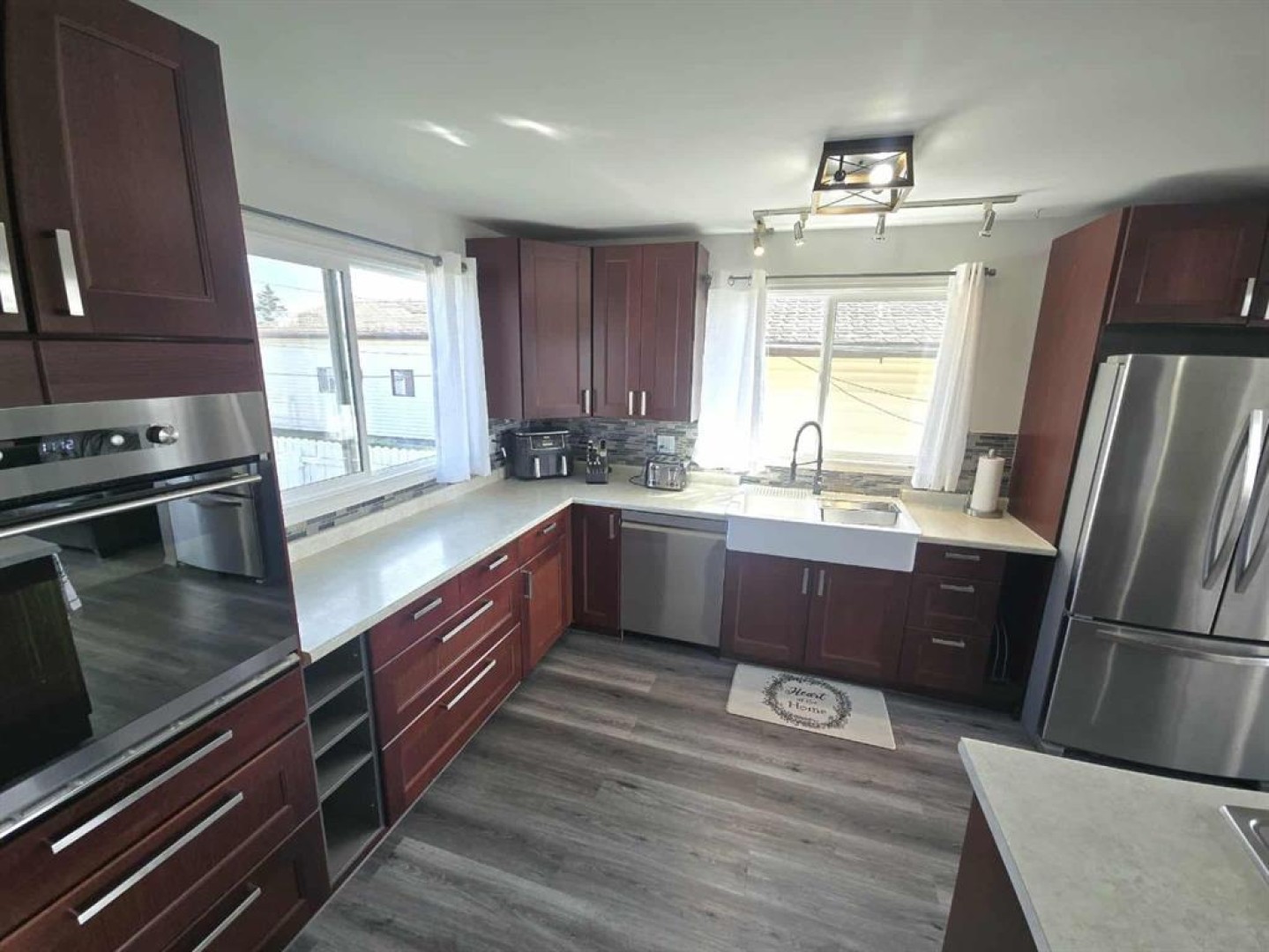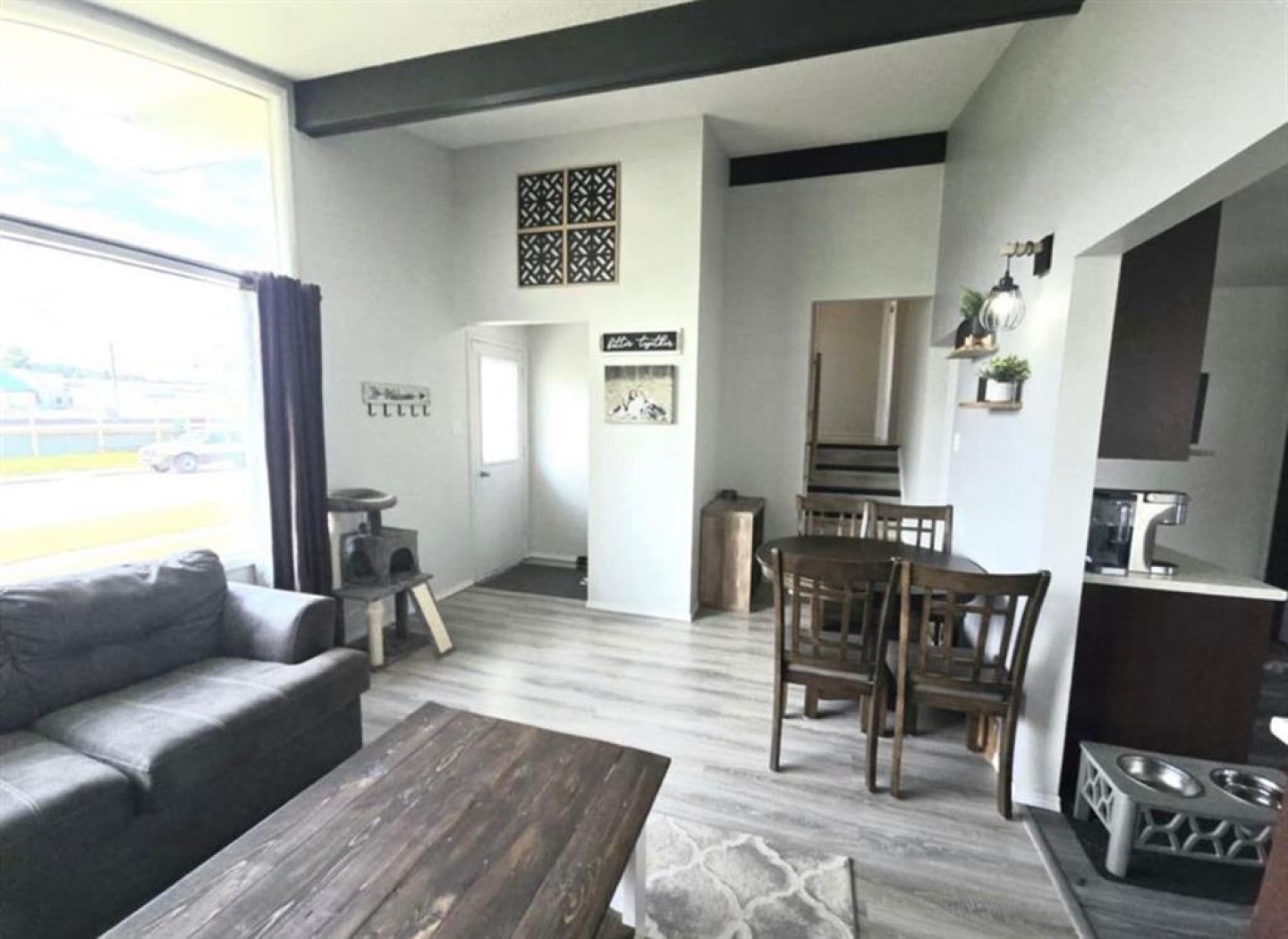 The heart of the home is the stunning kitchen, featuring upgraded stainless steel appliances, modern finishes, and ample cabinet space—perfect for family meals or entertaining guests. The open-concept living and dining areas are bright and inviting, with large windows that fill the space with natural light.