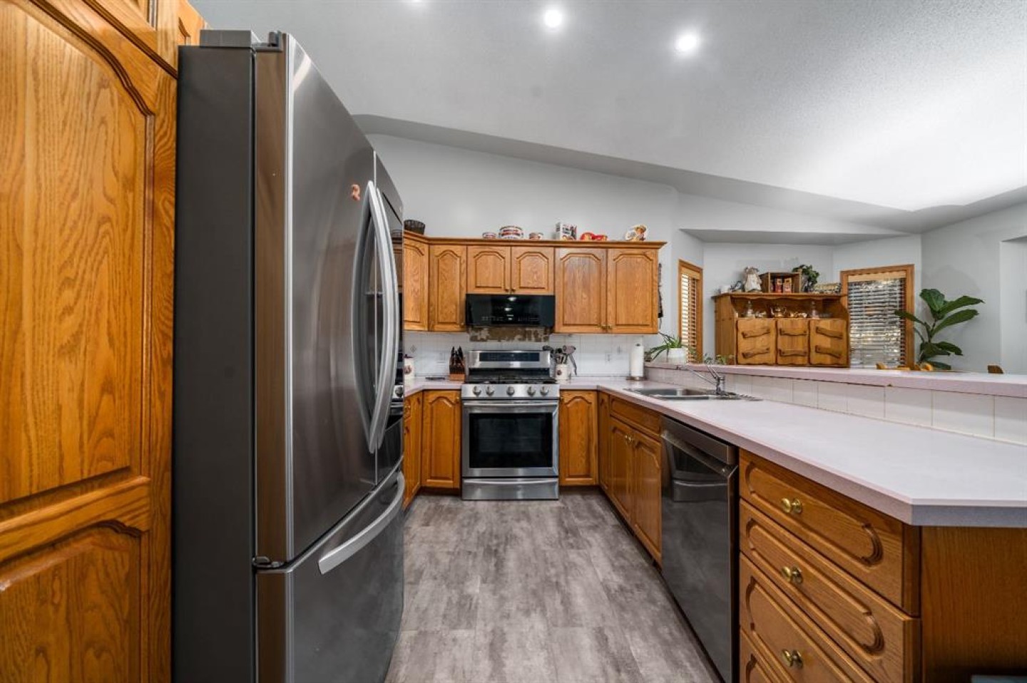 Welcome to this spacious 5 bedroom, 1,572 sqft bi-level located in the highly desirable Parkview neighbourhood. Known for its peaceful atmosphere and easy access to nature, this is a location that’s hard to beat. Just minutes from the Medicine Hat Golf Course, the scenic walking paths of Police Point Park, and with a park and playground just around the corner, endless opportunities to enjoy the outdoors is right out your front door. From the spacious entryway, you’re welcomed into a sunken front living room with vaulted ceilings that add to the sense of openness and light. The open dining and kitchen area features ample cabinet and counter space, as well as newer appliances, making this layout ideal for both everyday living and entertaining. The main floor offers a generous primary bedroom complete with an ensuite, along with two additional bedrooms and a full 4 pc bathroom. Downstairs, the basement is equally impressive with brand new carpet, two large bedrooms, a spacious family room, a huge laundry room, and an extra-large storage room currently used as an awesome craft space. Outside, enjoy a private, fully landscaped tiered backyard. Underground sprinklers make maintenance easy, while the partially covered deck just off the kitchen is perfect for BBQing in any weather, with plenty of shade for those hot summer days. The double attached garage adds everyday convenience, and is heated with the home's upgraded hot water on demand. This is a fantastic family home offering space, updates, and an amazing location in one of Medicine Hat’s most sought-after neighbourhoods.