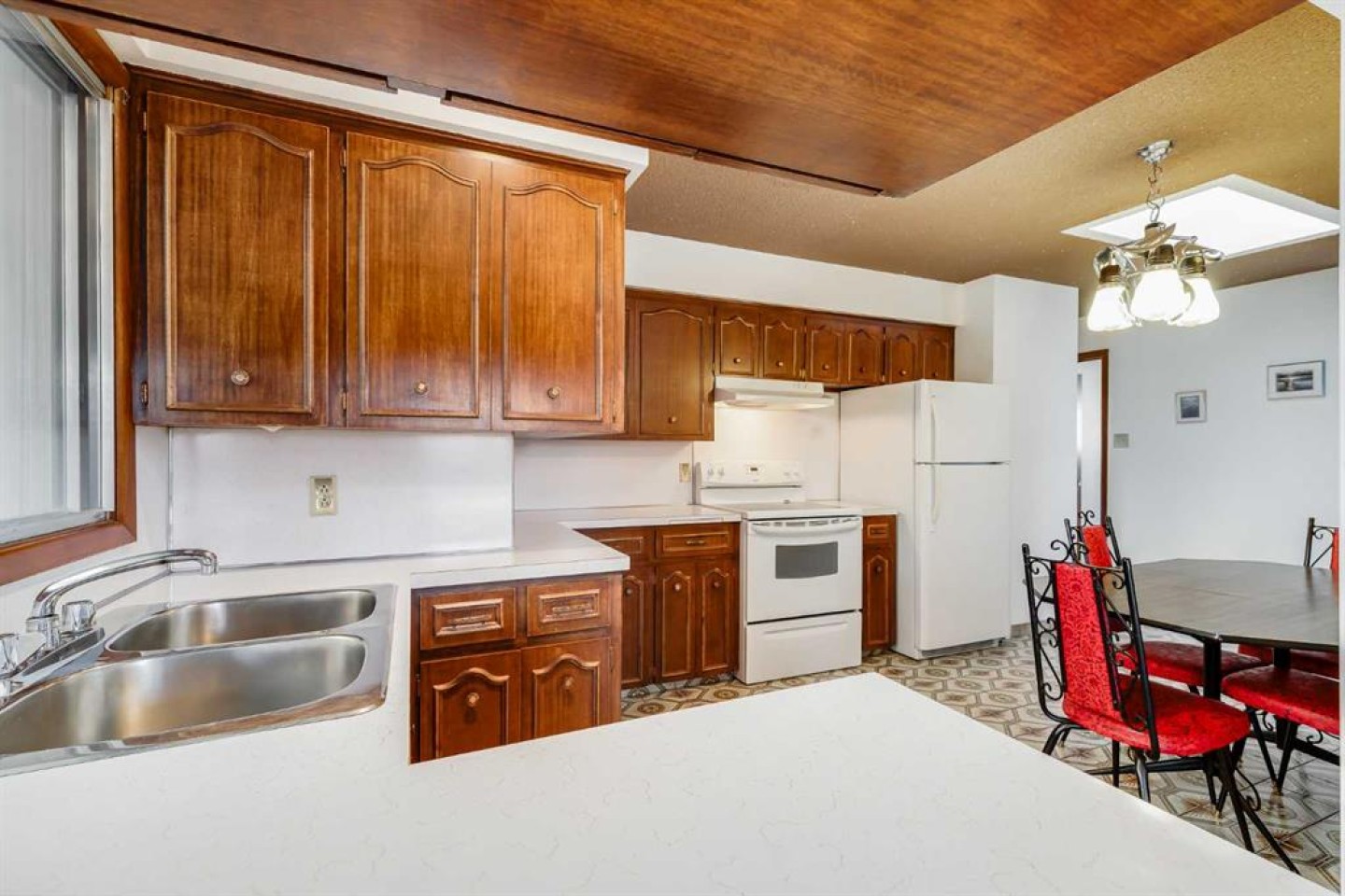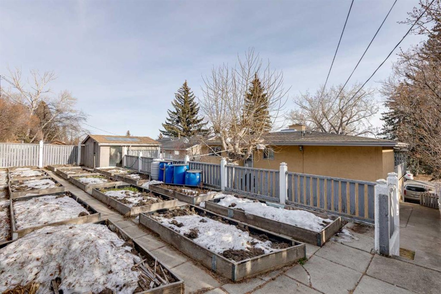 Welcome to this charming, lovingly cared for home in the sought after NW community of Huntington Hills. Offering 4 bedrooms, 2 full bathrooms, and approximately 2500 square feet of developed living space, this is an outstanding opportunity for investors, renovators, or buyers looking for a solid home with incredible potential on a huge lot. Much of the home retains its original vintage décor, highlighting the care it has received over the years and providing an excellent opportunity to renovate and add value. The main level features a bright and spacious living room, a full kitchen with a separate eating area, 3 good sized bedrooms, and a full bathroom. Step out from the kitchen onto the massive wraparound deck, perfect for morning coffee, summer BBQs, and relaxing. Downstairs you will find a second kitchen, a large living room with a wood burning fireplace, a full bedroom, and two cold storage rooms, ideal for extra pantry space, preserves, or wine making. The former single garage was converted into cold storage and can be easily converted back if desired. With two separate entrances, the layout lends itself extremely well to creating a suited home. Outside, the multi level backyard is truly special. Enjoy a large greenspace, plus an impressive array of raised garden boxes complete with an irrigation system using rain barrels. Two concrete storage sheds provide even more room for hobbies, storage, and projects. Add in the massive driveway with parking for multiple vehicles and an RV, and you have a property that checks a lot of boxes. Ideally located close to parks, playgrounds, schools, restaurants, grocery stores, and major traffic arteries. This is a rare chance to buy a home that has been cared for over the years, with the space and layout to renovate, rent, or create something truly incredible. Book your showing today.