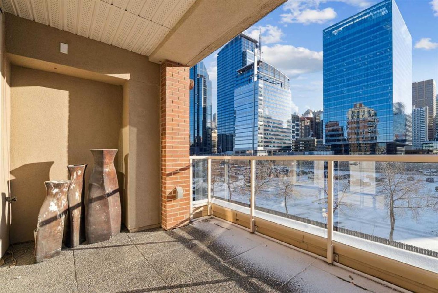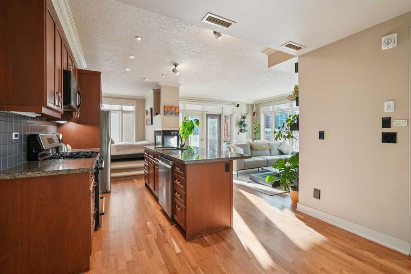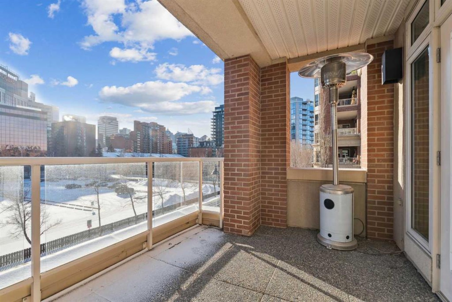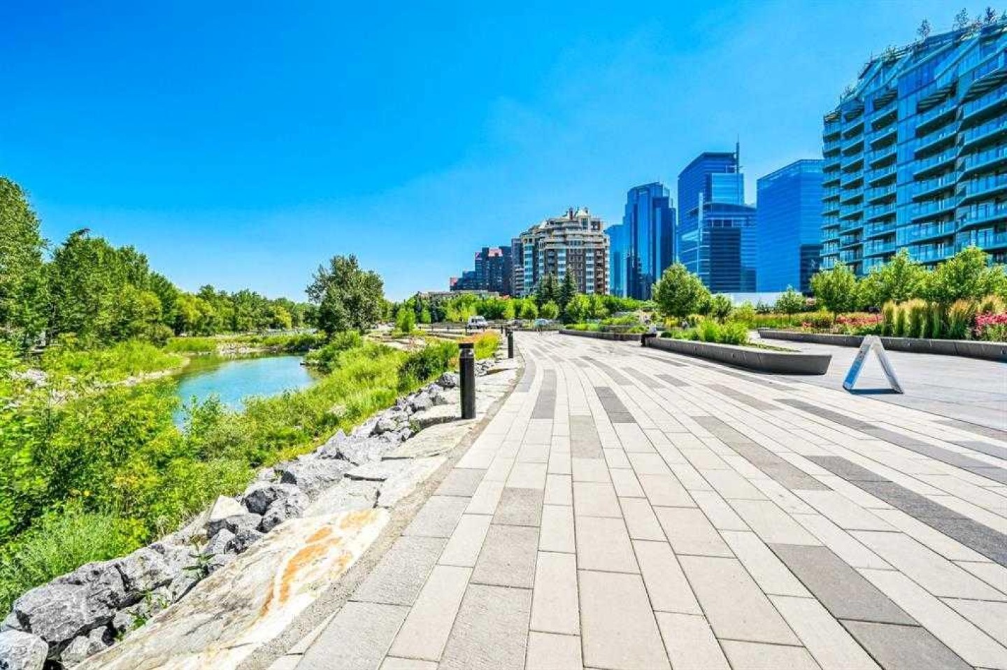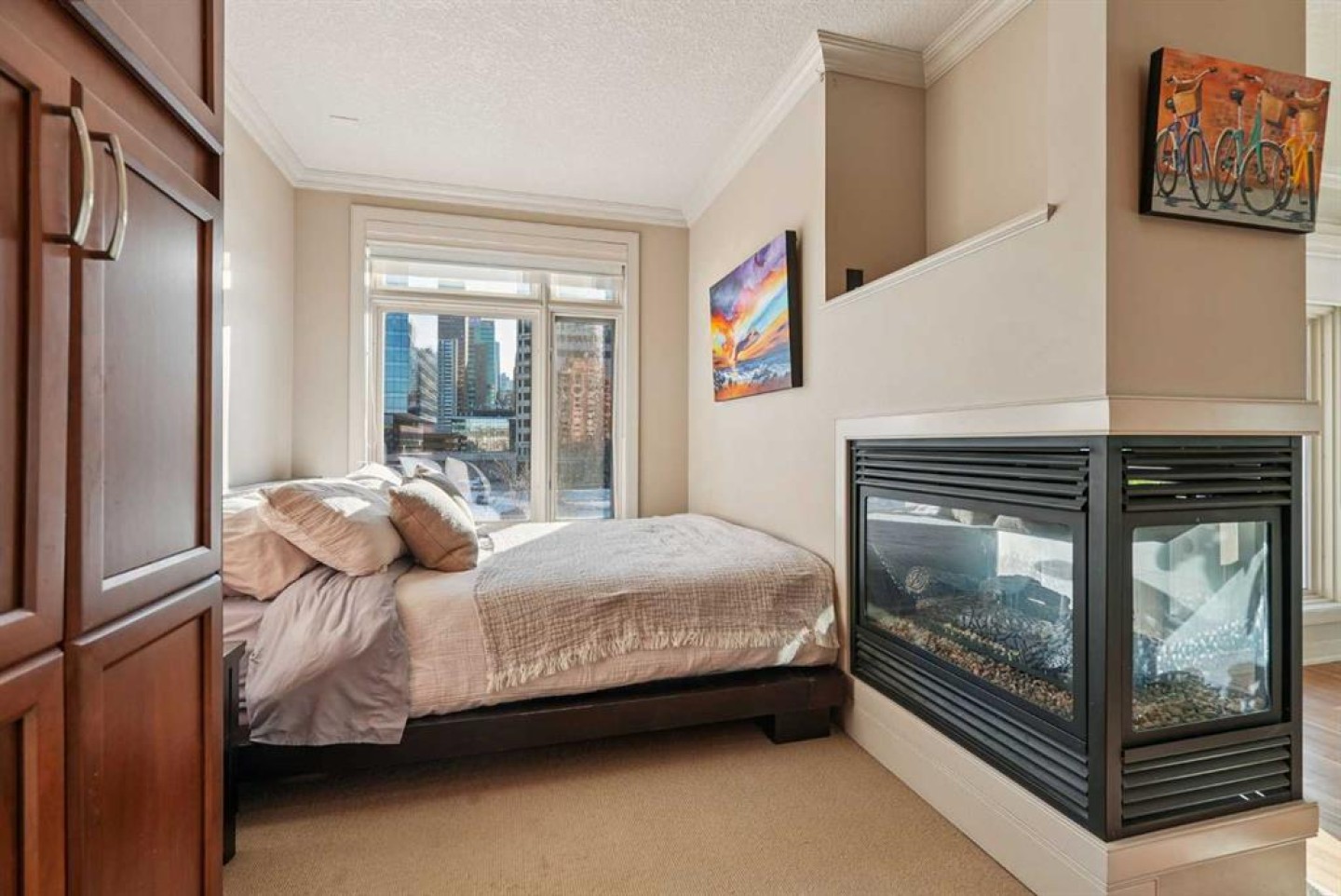 Luxurious upscale studio apartment condo in the prestigious Princeton Cityscape! Exceptional bright southwest corner location with large south and west windows providing plenty of natural light while enhancing the city views. Open concept with high ceilings, hardwood floors, granite counter tops, stainless steel appliances, gas stove, new fridge & dishwasher, built-in vacuum system, 3 sided gas fireplace, 5 built-in speakers, subwoofer and components, large south-facing covered balcony, balcony has rough-in for speakers, spacious 3 pce bathroom with large shower stall, in-suite laundry with stacked washer/dryer and large closet with built-in organizers. Comes with central air conditioning, in-floor heating, secure underground titled parking and storage locker, inner courtyard, visitor parking, underground carwash bay and recently renovated common areas. Extraordinary Heart of Eau Claire location nestled along the south bank of the Bow River next to beautiful Prince's Island Park and the World-Class Pathway System! Close to great restaurants and Cafe's, fine dining, plus 15 skywalk system, transportation & LRT, Peace Bridge and just a short walk to Kensington Shops, Safeway and Calgary's vibrant City Center. Amazing opportunity to call this prestigious building your home while living the ultimate downtown urban lifestyle!