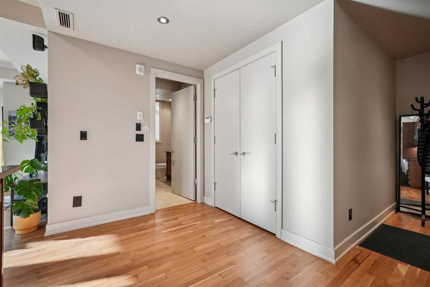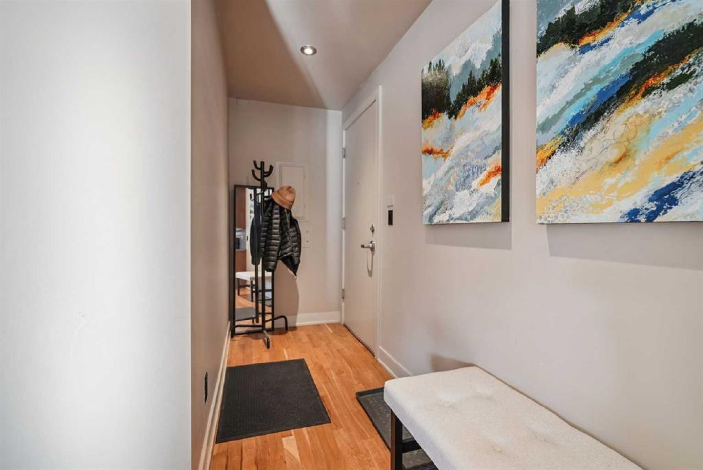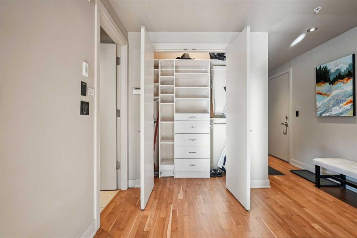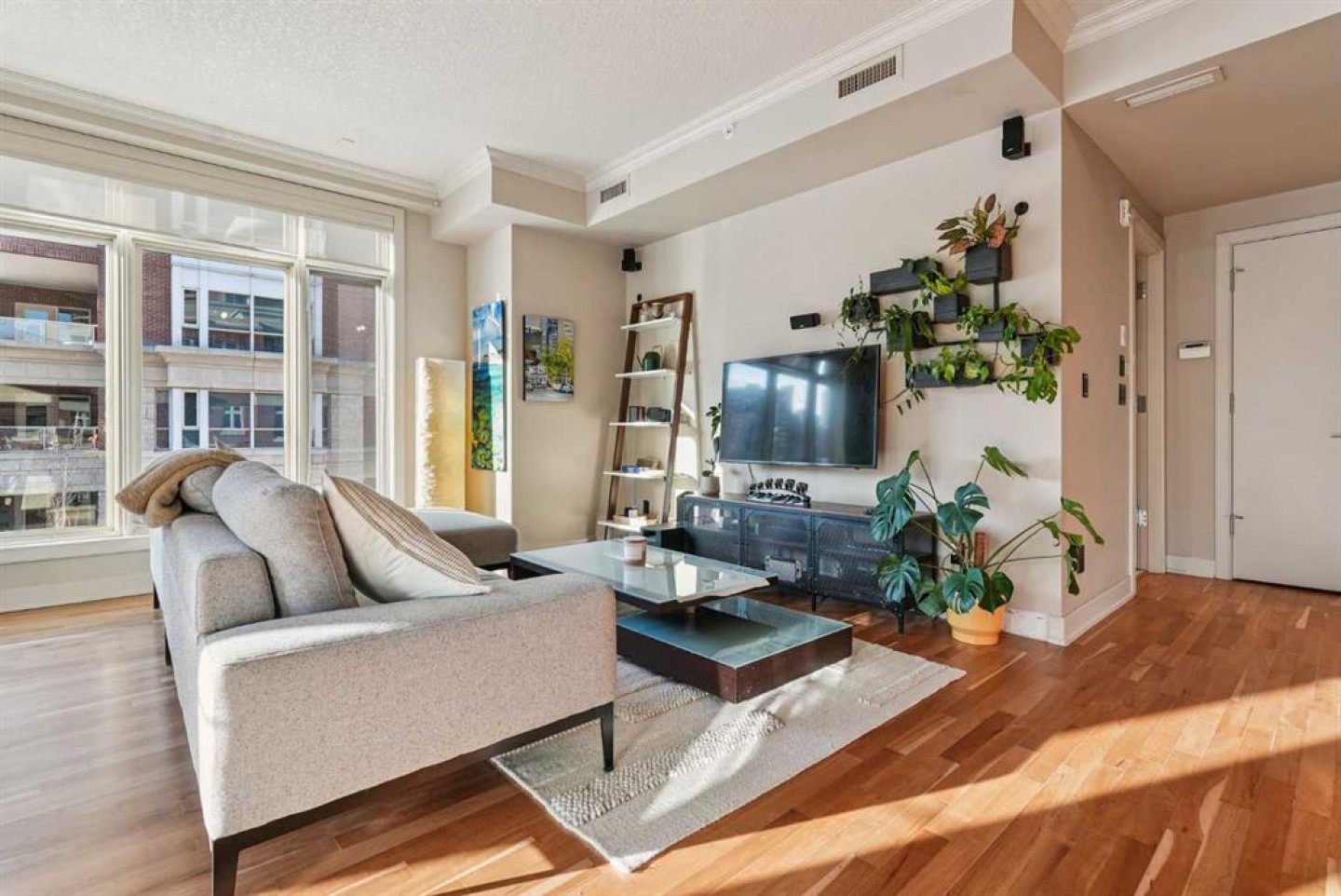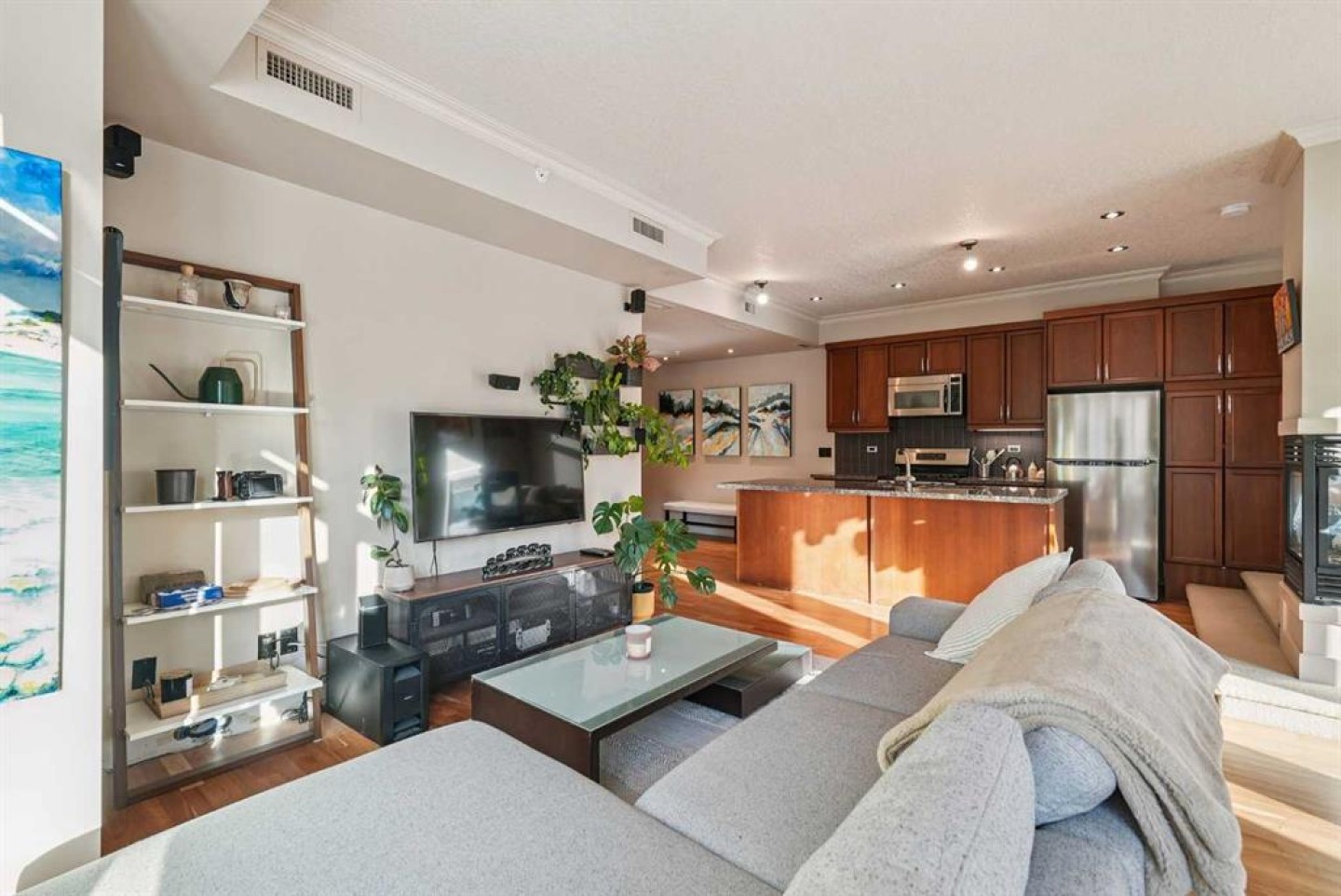 Luxurious upscale studio apartment condo in the prestigious Princeton Cityscape! Exceptional bright southwest corner location with large south and west windows providing plenty of natural light while enhancing the city views. Open concept with high ceilings, hardwood floors, granite counter tops, stainless steel appliances, gas stove, new fridge & dishwasher, built-in vacuum system, 3 sided gas fireplace, 5 built-in speakers, subwoofer and components, large south-facing covered balcony, balcony has rough-in for speakers, spacious 3 pce bathroom with large shower stall, in-suite laundry with stacked washer/dryer and large closet with built-in organizers. Comes with central air conditioning, in-floor heating, secure underground titled parking and storage locker, inner courtyard, visitor parking, underground carwash bay and recently renovated common areas. Extraordinary Heart of Eau Claire location nestled along the south bank of the Bow River next to beautiful Prince's Island Park and the World-Class Pathway System! Close to great restaurants and Cafe's, fine dining, plus 15 skywalk system, transportation & LRT, Peace Bridge and just a short walk to Kensington Shops, Safeway and Calgary's vibrant City Center. Amazing opportunity to call this prestigious building your home while living the ultimate downtown urban lifestyle!
