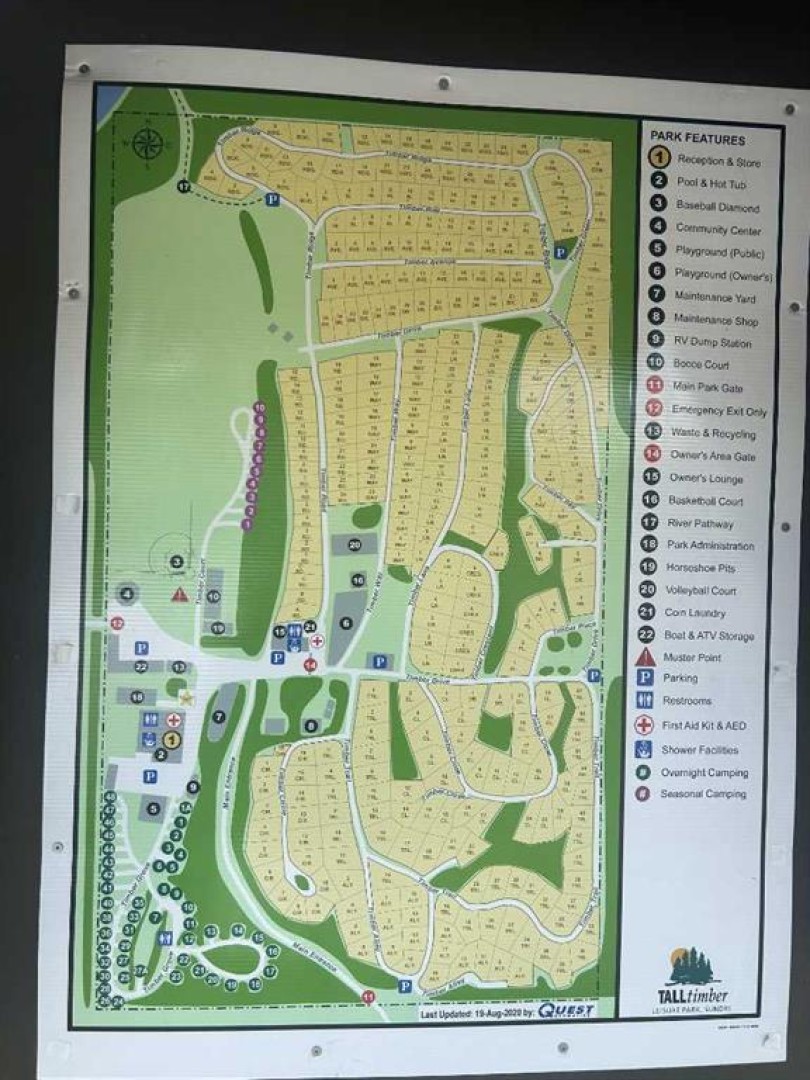 Tall Timber is a well-managed, amenity-rich community featuring gated access, an indoor pool, hot tub, community centre, two playgrounds, volleyball court, basketball and pickleball courts, horseshoe pits, ball diamond, bocce ball lanes, disc golf, and more. Coin laundry and shower facilities are available on site, along with boat and ATV storage.