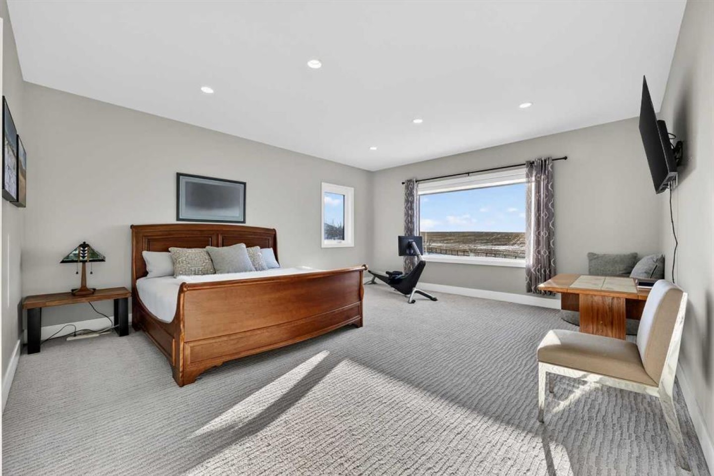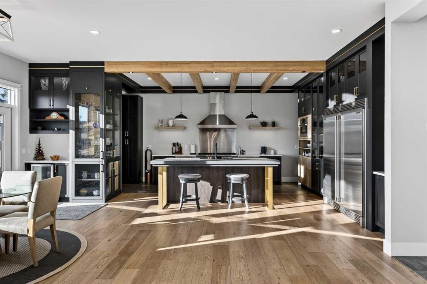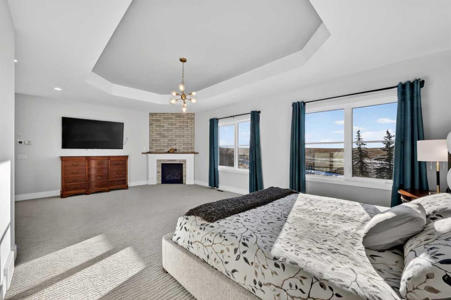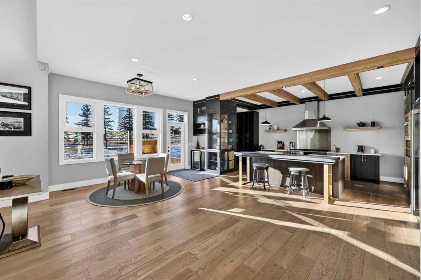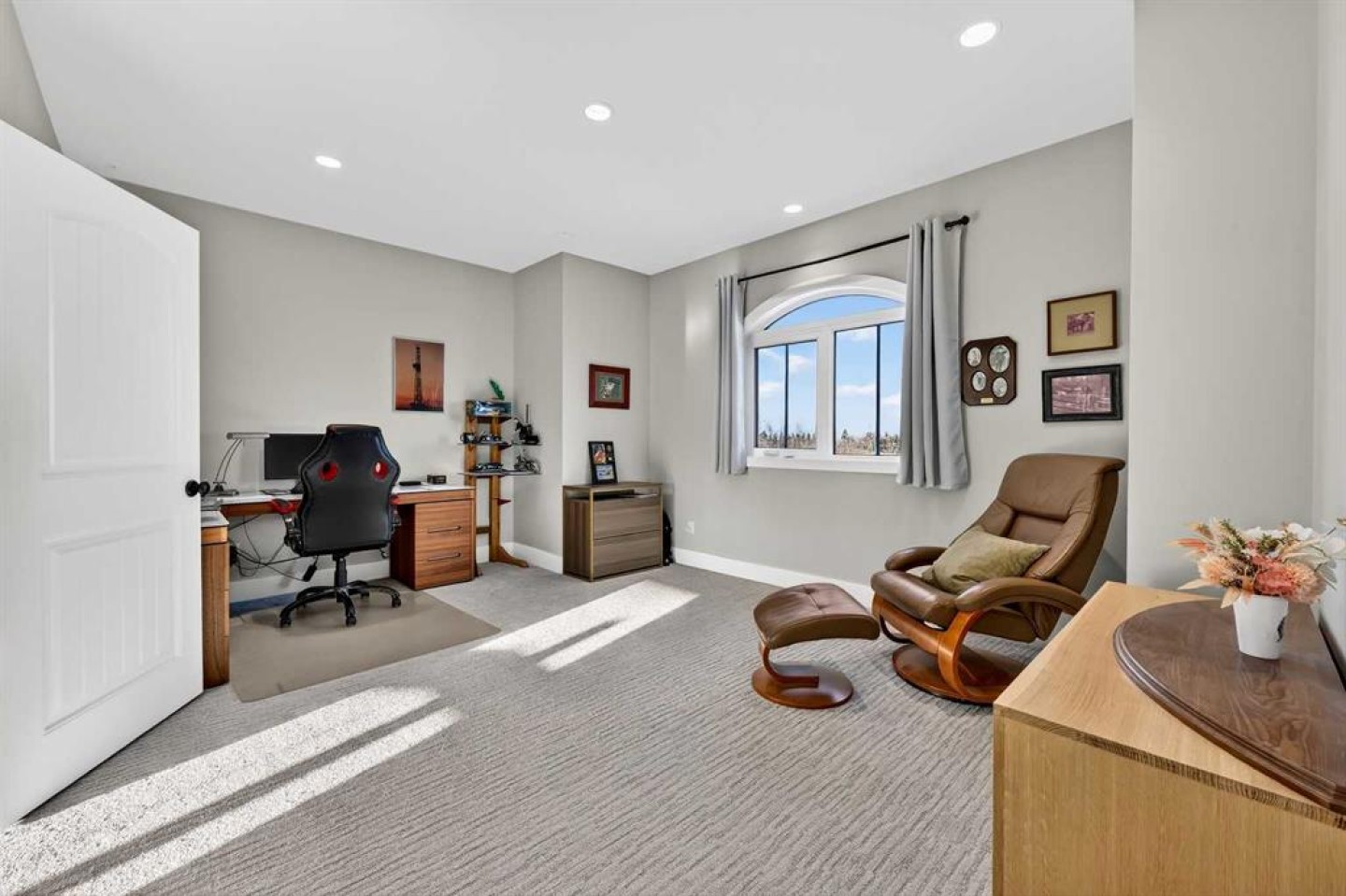 Step inside to soaring 20-foot ceilings, oversized windows, and sun-filled living spaces anchored by a modern fireplace. The main floor is thoughtfully laid out with a private home office, a grand living room, and a refined dining area with a statement feature wall and fireplace. The chef’s kitchen is fully outfitted with newer high-end appliances including a brand new chef's dream gas stove and dual ovens, quartz countertops, a large island, modern cabinetry and a walk-in pantry, perfectly blending function and style. A generous recreational flex space offers endless possibilities. An ideal games room, home gym, theatre, man cave, or easily converted into a main-floor bedroom with exterior access to the massive deck.