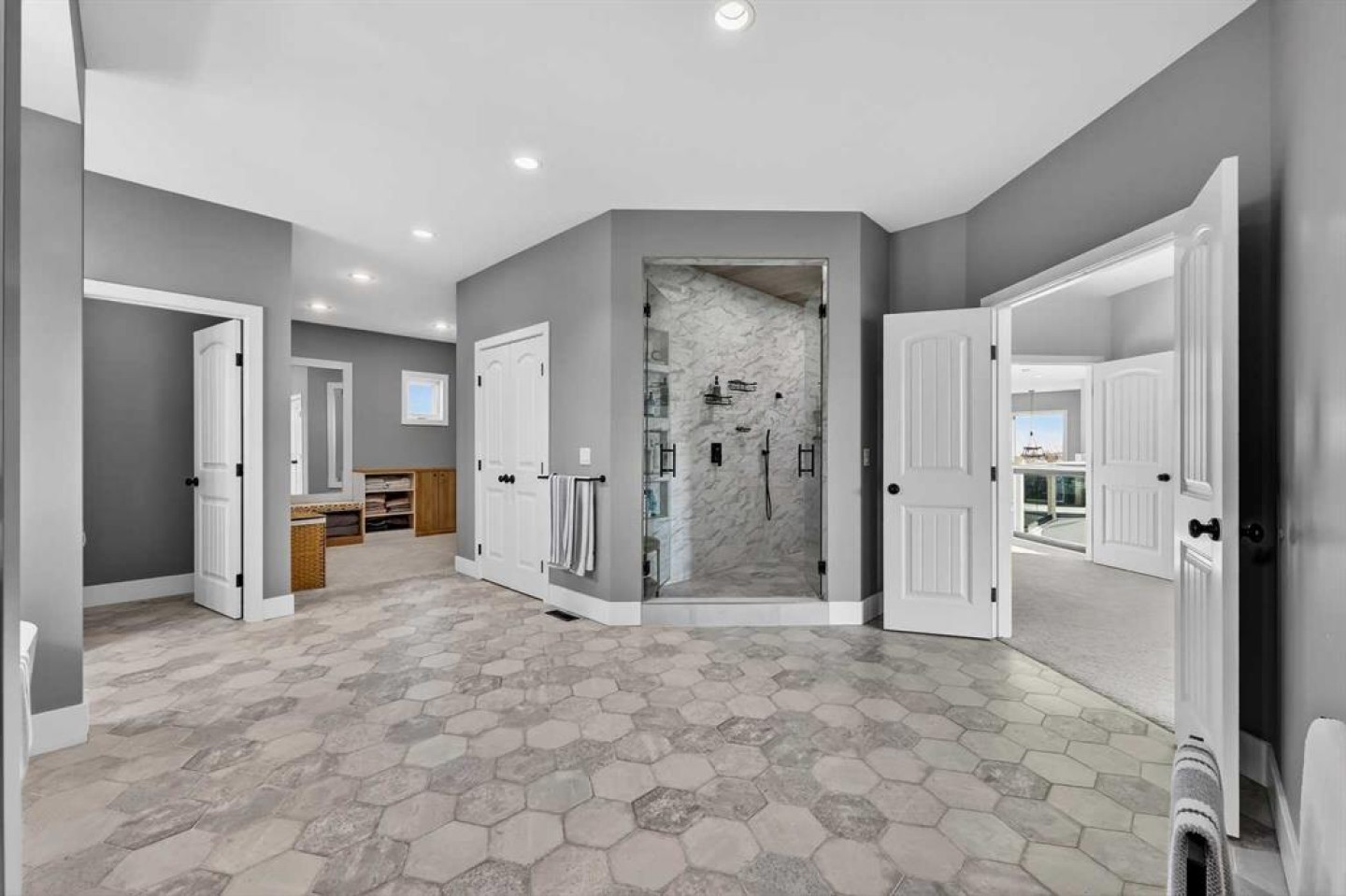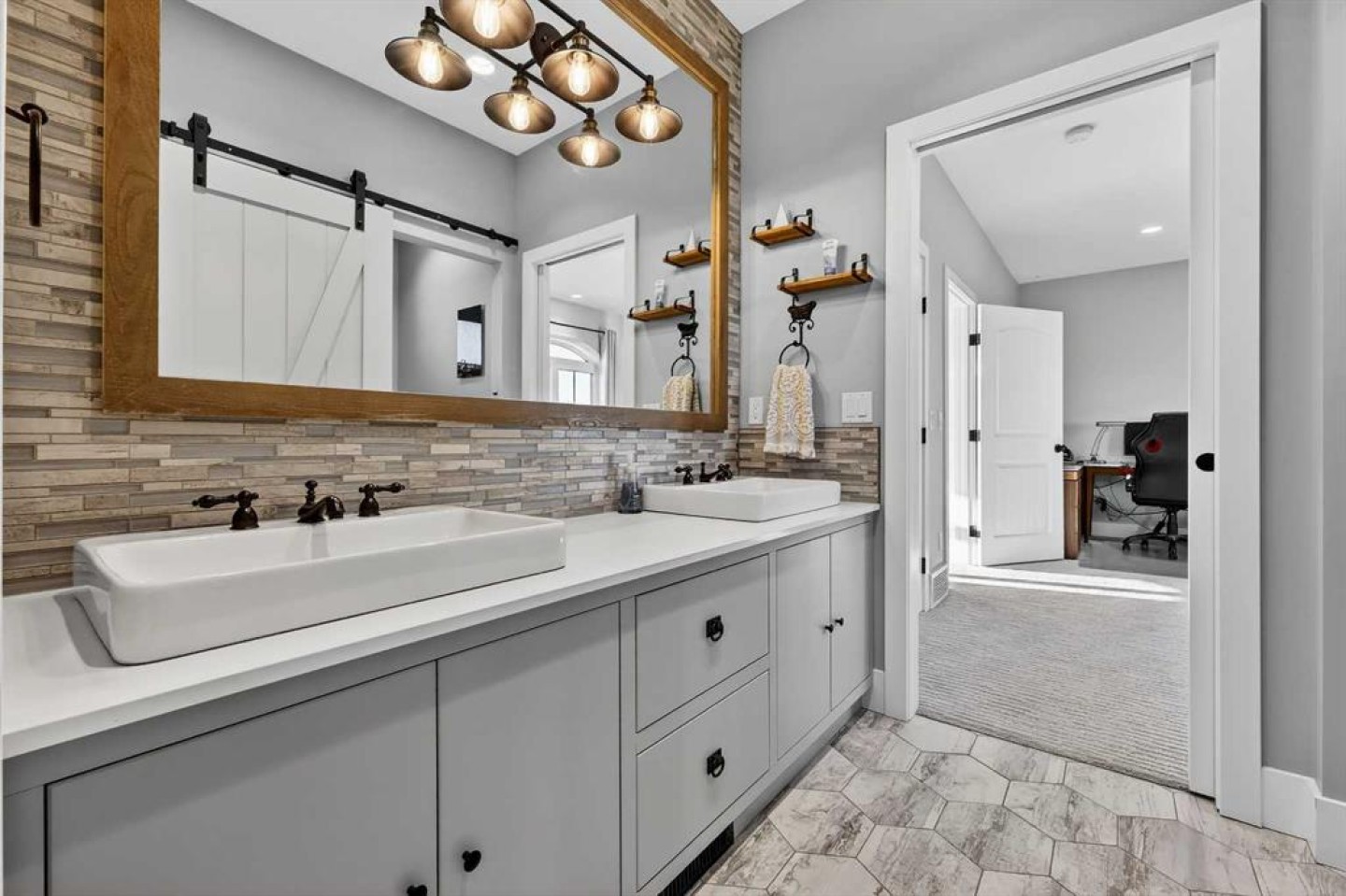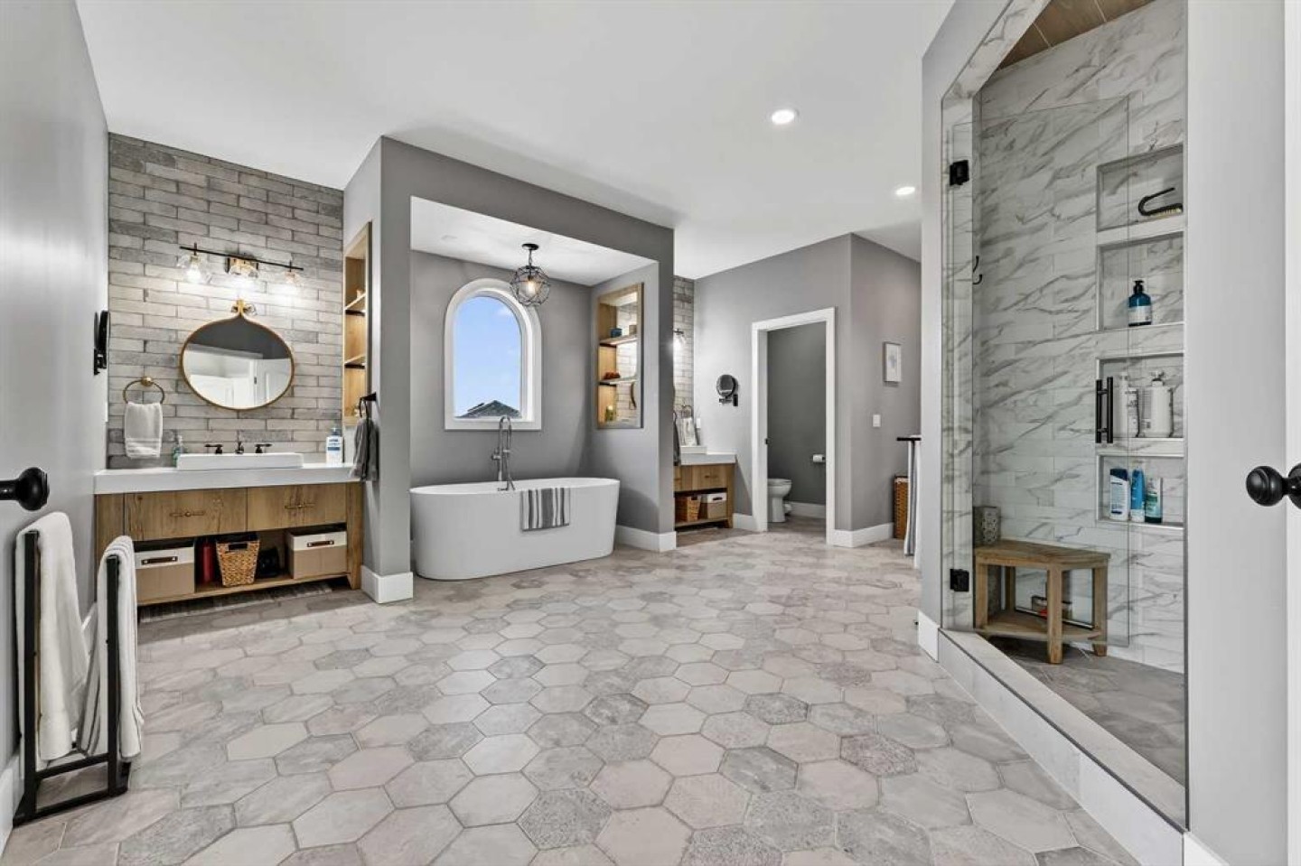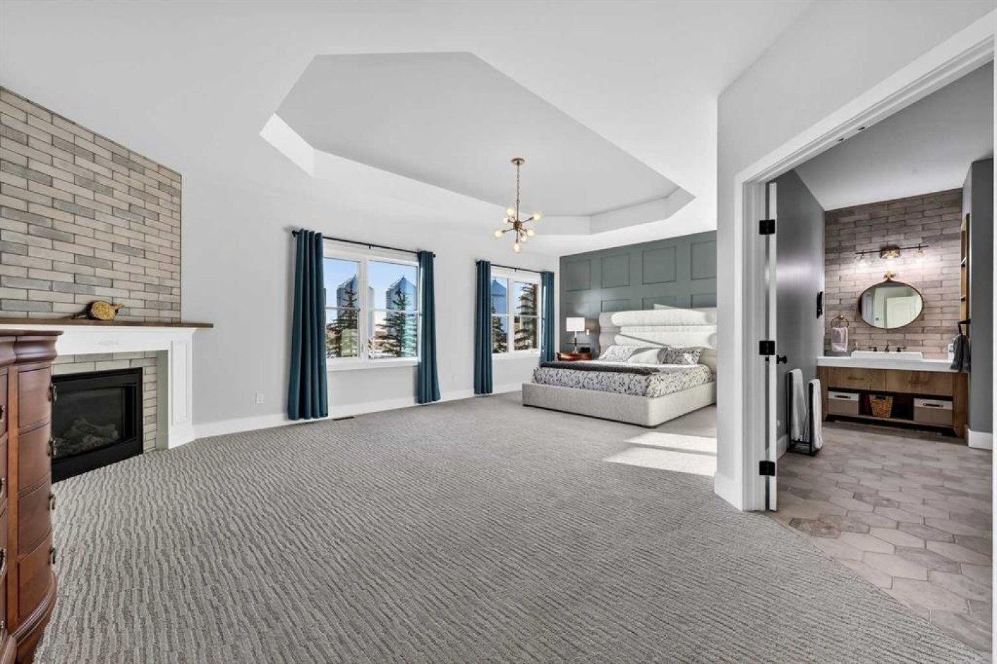 Upstairs, retreat to a large bonus room with mountain views, the perfect place to relax and unwind. Two spacious bedrooms are connected by a beautifully finished Jack & Jill bathroom, while a designer laundry room adds everyday convenience. Further down the open hallway you’ll find the primary suite that is nothing short of spectacular!! Featuring west-facing mountain views, its own fireplace, and the showstopping en-suite bathroom with top tier luxury, complete with a deep soaker tub, his and hers sinks and vanities, massive walk-in shower, designated water closet, and an expansive walk-in that truly has the WOW Factor.