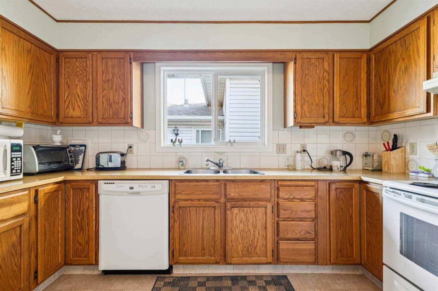 Beautifully maintained 3 + 2 bedroom, 1.5 bath, 1284 sqft bungalow with finished basement & a separate side entrance with an oversized double car garage situated on a great crescent in the heart of Temple close to schools & transit. The main floor has been upgraded over the years with newer paint, flooring & windows. Spacious “L” shaped living room/dining room with a cozy gas fireplace & a sunny bay window, easily accommodating a good-sized family gathering. The kitchen has plenty of storage including a pantry & a convenient seating area. There are 3 spacious bedrooms on the main floor including a king-sized master with double closets + a 2-piece ensuite. The 4-piece main bath has some updating. There is a separate side entrance to the lower level which has been professionally developed & includes 2 bedrooms, a roughed-in bathroom, & a large family room with a built-in wet bar. The backyard has 19’5” x 22’3” detached garage, is fully fenced with a paved back lane, convenient raised garden beds +Saskatoon bushes. Lovingly kept family home available for quick possession. Easy access to new ring road system, shopping+ restaurants.