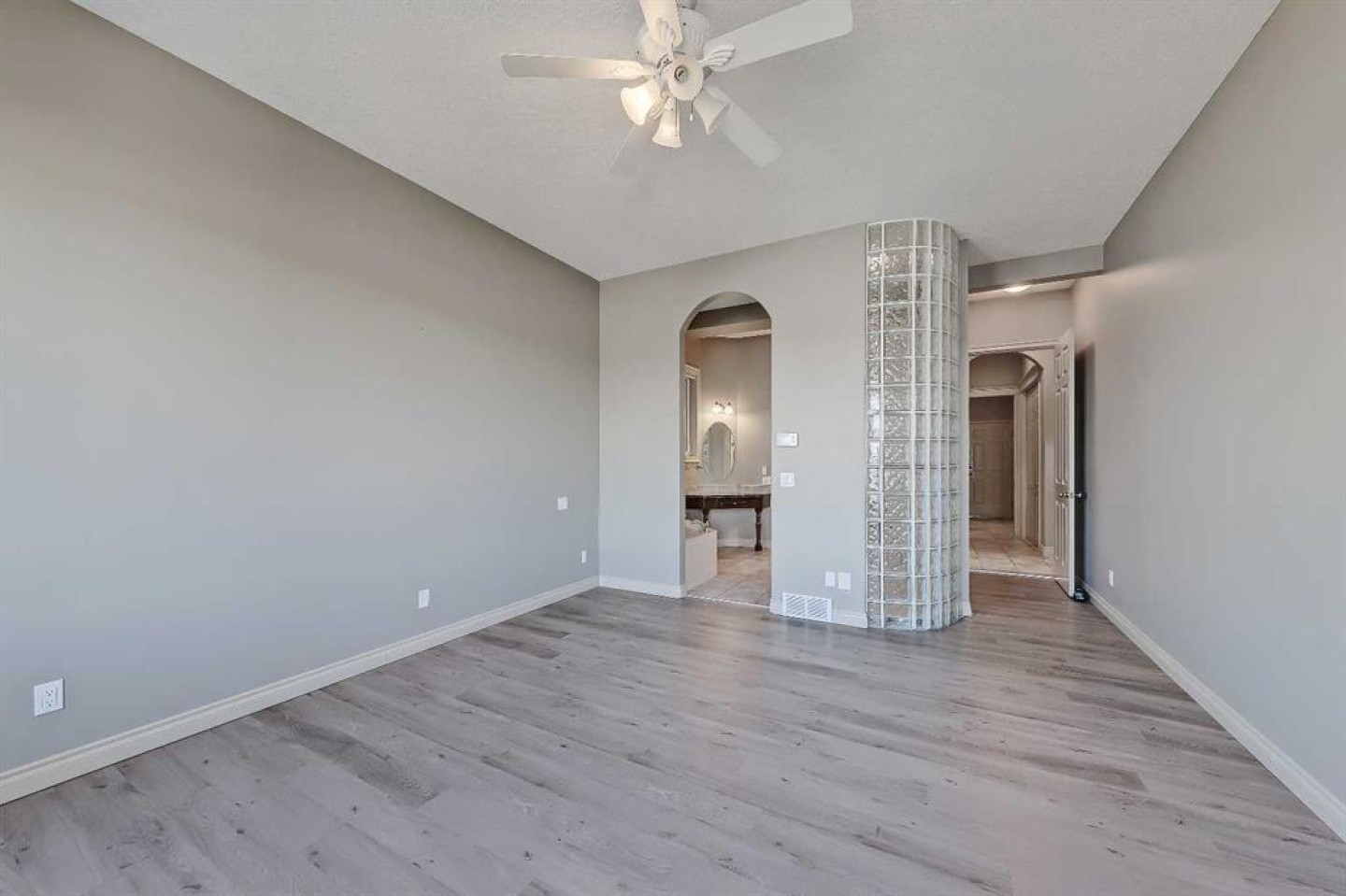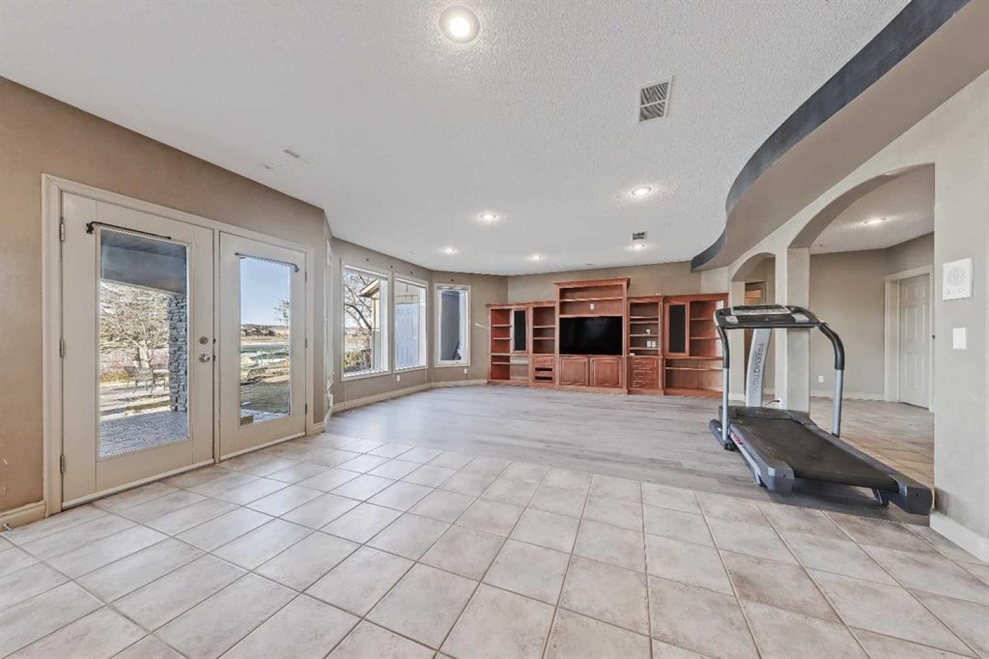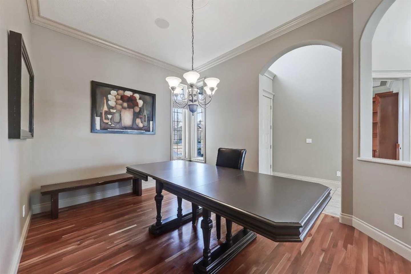 LAKEFRONT LIVING IN THE COVE, one of Chestermere’s most desirable communities! This fully finished, executive walk-out bungalow-style home sits on a massive 1/3+ acre lot backing directly onto Chestermere Lake! Offering over 4,900 sq. ft in total (with over 3,000 sq. ft. above grade), this property features a total of 5 bedrooms, 3.5 bathrooms, a fully developed walkout basement, an attached triple-car garage, and a private dock with a private boat lift. A bright, open-to-above foyer welcomes you into the main level, highlighted by 10-ft ceilings, crown moulding, built-in speakers, and expansive windows overlooking the lake. The oversized kitchen is designed for both cooking and entertaining, complete with stainless steel appliances, including a French door fridge, a wall oven and microwave, a 5-burner gas cooktop, an undercounter beverage fridge, a walk-in pantry, granite countertops, a triple-basin sink, a prep counter with a second sink, and a casual dining area overlooking the water. The adjacent 2-storey living room features a gas fireplace with a stone surround and double patio doors that open to a large stamped concrete deck with incredible lake views. The main-floor primary suite offers direct water views through multiple bay windows, a walk-in closet with built-ins, and a spa-inspired 5-piece ensuite with soaker tub, glass shower, and dual vanity sinks. A mudroom, powder room, laundry, and interior direct access to the heated, epoxy-finished triple garage complete this level. Upstairs, a spacious bonus room with a private balcony overlooks the lake, accompanied by two additional bedrooms with walk-in closets and a well-appointed main bath with dual sinks and separate tub/shower areas. The fully-developed walk-out basement features hydronic in-floor heating, a large recreation space with media built-ins, a wet bar, wine storage, two additional bedrooms, a full bath, and extensive storage. Outside, the enormous, sunny West-facing landscaped backyard enjoys incredible lake views, stamped concrete pathways and multiple patio areas, plus a private dock with a boat lift. and storage shed. Additional highlights include cement shingle roofing, soffit lighting, dual A/C units, and 200-amp service. Located near schools, shopping, parks, and recreation, this is a rare opportunity to own a true lakefront property in one of Chestermere’s most desirable communities.