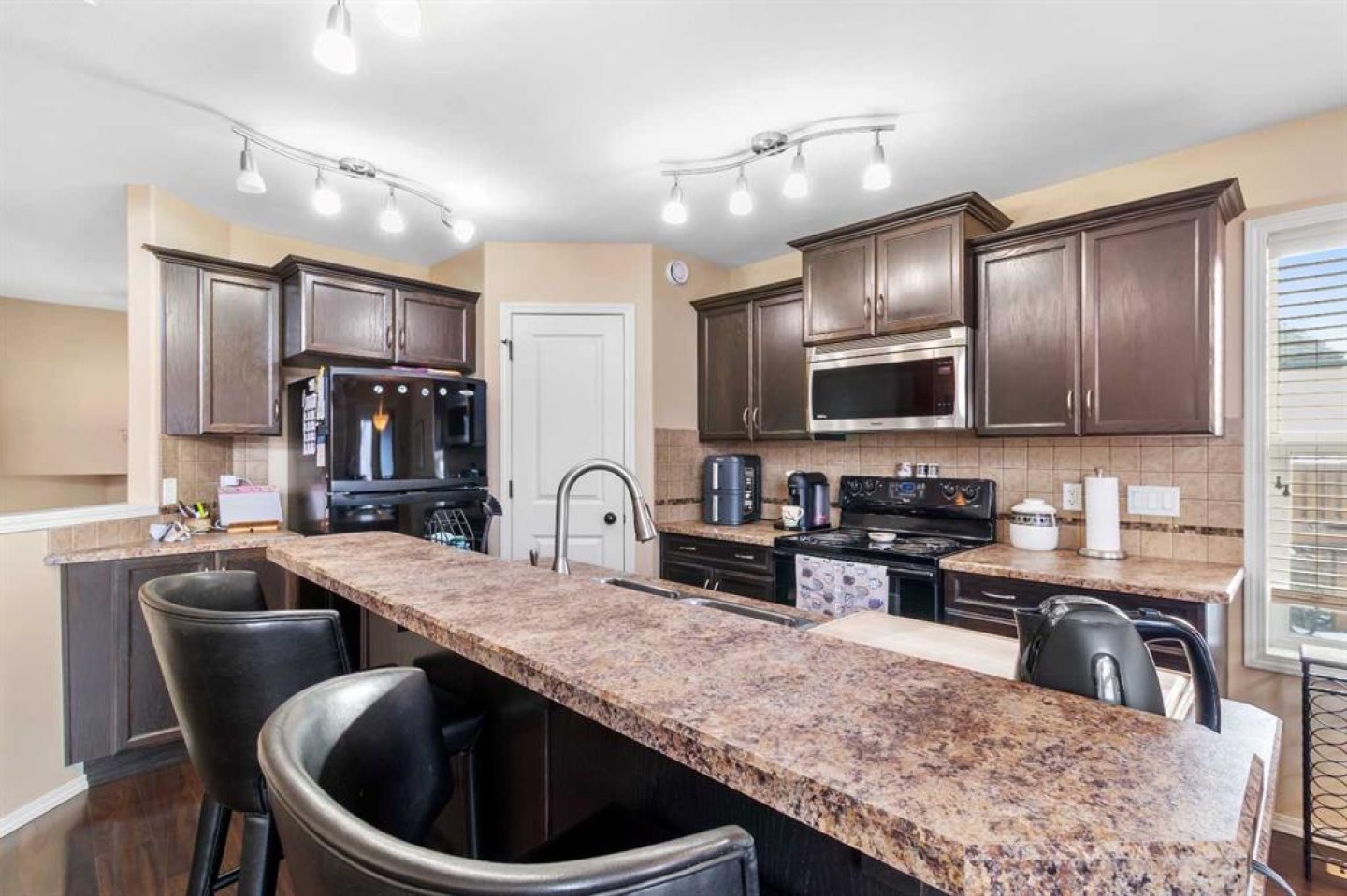 Pride of ownership shines throughout this immaculate, original-owner bi-level in Penhold. This 3 bedroom, 3 bathroom home is completely move-in ready and located close to walking paths, playgrounds, and local amenities. The open-concept main level features vaulted ceilings and a bright kitchen, dining, and living area. The primary bedroom offers a walk-in closet and 3-piece ensuite, with a second bedroom and full bathroom completing the level. The fully finished lower level provides space to entertain, along with an office, third bedroom, and another full bathroom. Outside, the beautifully landscaped yard is designed to be enjoyed. A paved sidewalk wraps around the home to the backyard, connecting to the lower patio. The backyard becomes a true oasis in the warmer months, with afternoon and evening sun on the deck and manicured lawn making it ideal for relaxing or hosting friends and family.