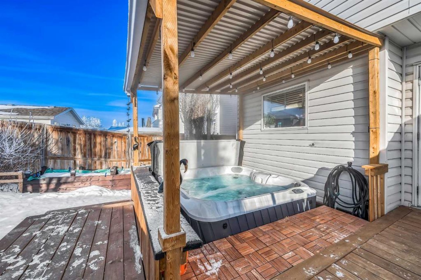 Welcome to this beautifully renovated, light-filled semi-detached home in the highly sought-after community of Evergreen. Thoughtfully updated from top to bottom, this three-bedroom half duplex perfectly blends modern finishes with warmth, comfort, and everyday functionality—truly a home you can move into and enjoy from day one. From the moment you arrive, the charming curb appeal and tasteful exterior set the tone. Step inside and you’re immediately greeted by a bright, welcoming foyer that opens into a sun-drenched living room, where large windows allow natural light to pour in throughout the day. Fresh paint, new luxury vinyl flooring, updated lighting, modern door hardware, and stylish finishes create a clean, contemporary aesthetic while still feeling inviting and warm. The refreshed kitchen is both beautiful and functional, featuring a new backsplash, updated faucet, a brand-new refrigerator, ample cabinetry and counter space, and a large step-in butler’s pantry—a rare and highly desirable feature. With room for a kitchen table, this space is ideal for casual family meals, morning coffee or evenings spent entertaining. Convenient main-floor laundry room comes with a new stacked LG washer/dryer which adds to everyday ease, with additional hookups available in the basement. Upstairs, natural light continues to shine through three generously sized bedrooms. The oversized primary retreat offers a peaceful escape complete with a walk-in closet, while two additional well-proportioned bedrooms, a full bathroom, and a linen closet complete the upper level—perfect for families, guests, or a dedicated home office. The partially finished basement expands your living space with new flooring, a spacious recreation area, and a cleverly designed hidden office or workshop tucked behind a built-in bookshelf—a truly unique and functional touch. The basement is insulated and ready for further development if desired. Major mechanical upgrades provide peace of mind, including a new furnace, hot water tank, and roof, all replaced within the last six years or less. Step outside to your west-facing backyard oasis, where sunshine fills your afternoons and evenings. The stunning 16-foot deck with pergola is perfect for entertaining, relaxing, or enjoying quiet moments outdoors. And yes—you are reading this right—the Jacuzzi J-245 seven-seater hot tub, only two years old, is included with the home! Completing this exceptional package is a newly built 22’ x 22’ oversized garage, offering abundant space for vehicles, storage, or a workshop. Ideally located close to parks, playgrounds, schools, and everyday amenities, this Evergreen gem truly checks every box. This is more than a home—it’s a lifestyle filled with light, comfort, and thoughtful design. Book your private showing today and come on Buy!