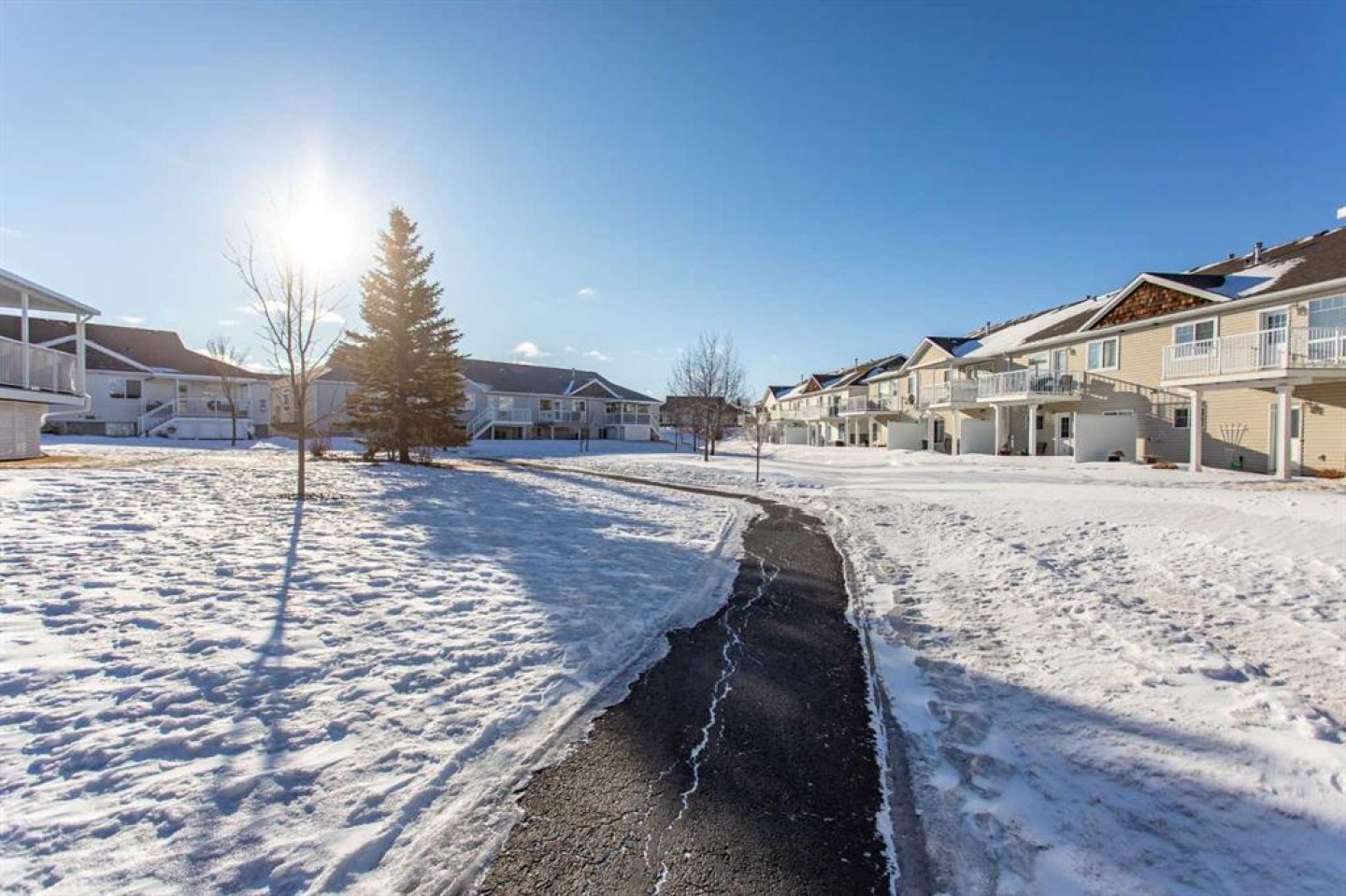 Get ready to enjoy this lovely fully finished duplex in Springfield Crossing - say goodbye to snow shovelling and grass cutting - sit back and enjoy the benefits of living in a bare land condominium project! From the moment you walk through the door you will appreciate the beautiful updates in this home - new kitchen cabinetry, granite countertops, new flooring on the main level along with a tiled walk in shower with glass doors! Main floor has an open concept kitchen, dining and living room with a corner gas fireplace - great for those chilly winter days! Primary bedroom, main floor laundry plus a den completes the main level. The walk out basement is fully finished with second bedroom, family room, four piece bathroom and a large storage room. Step outside and you will have quick access to the walking trails around Springfield Crossing. This unit is equipped with air conditioning for the hot summer days that are ahead! This home is move in ready and is awaiting its new owners!