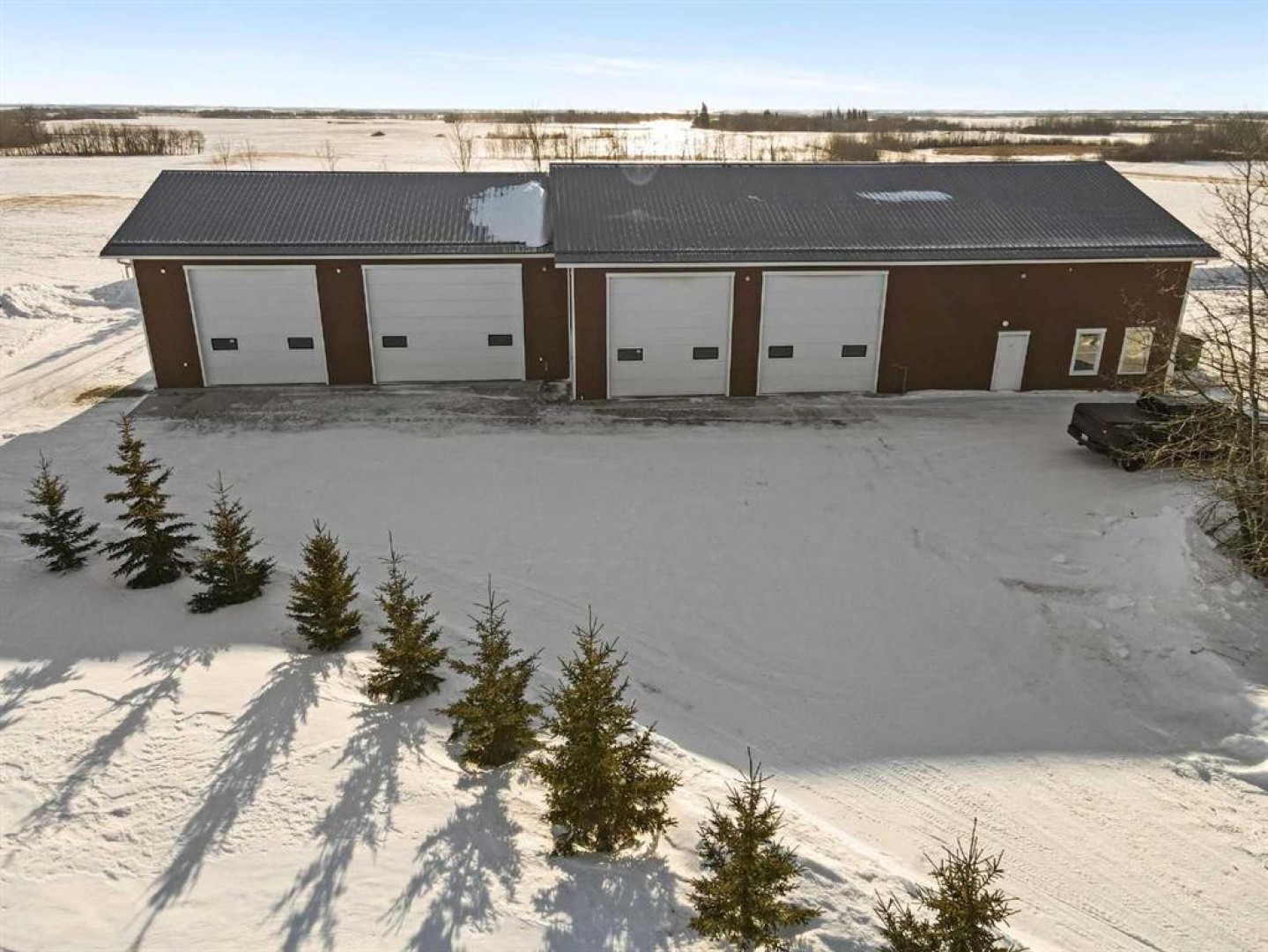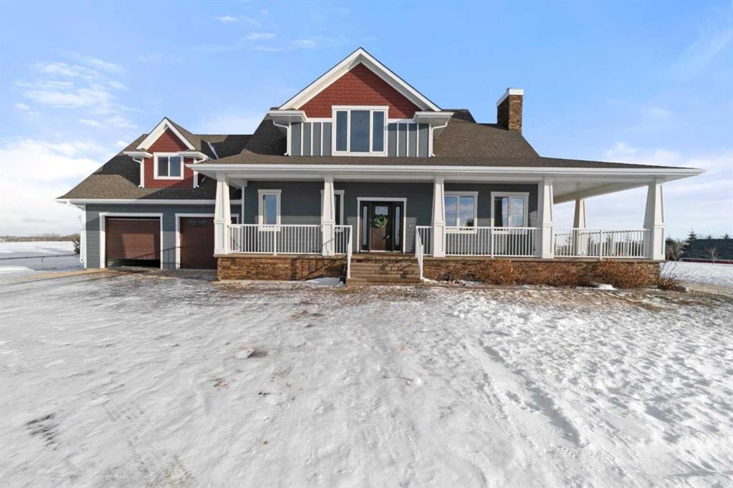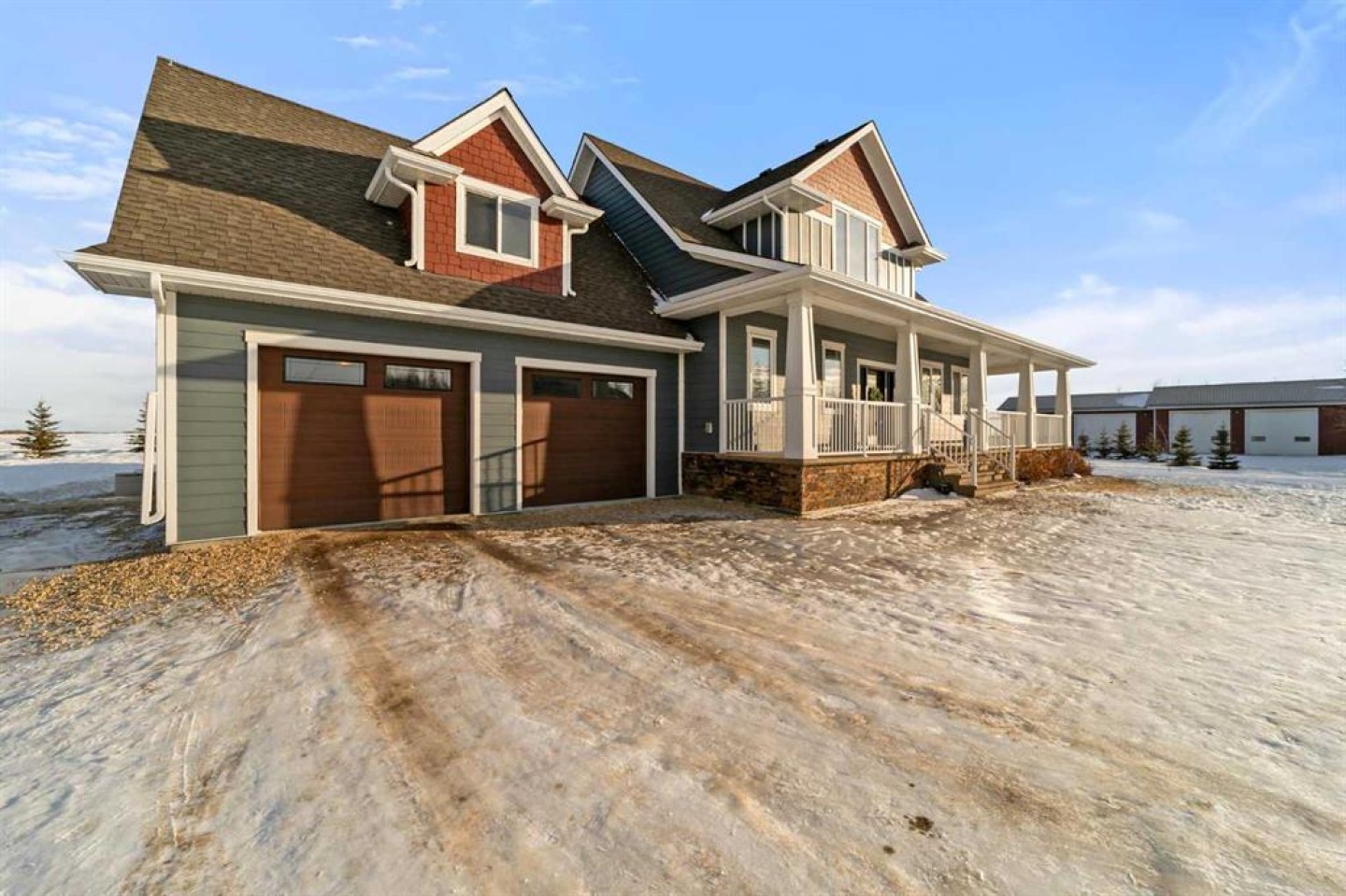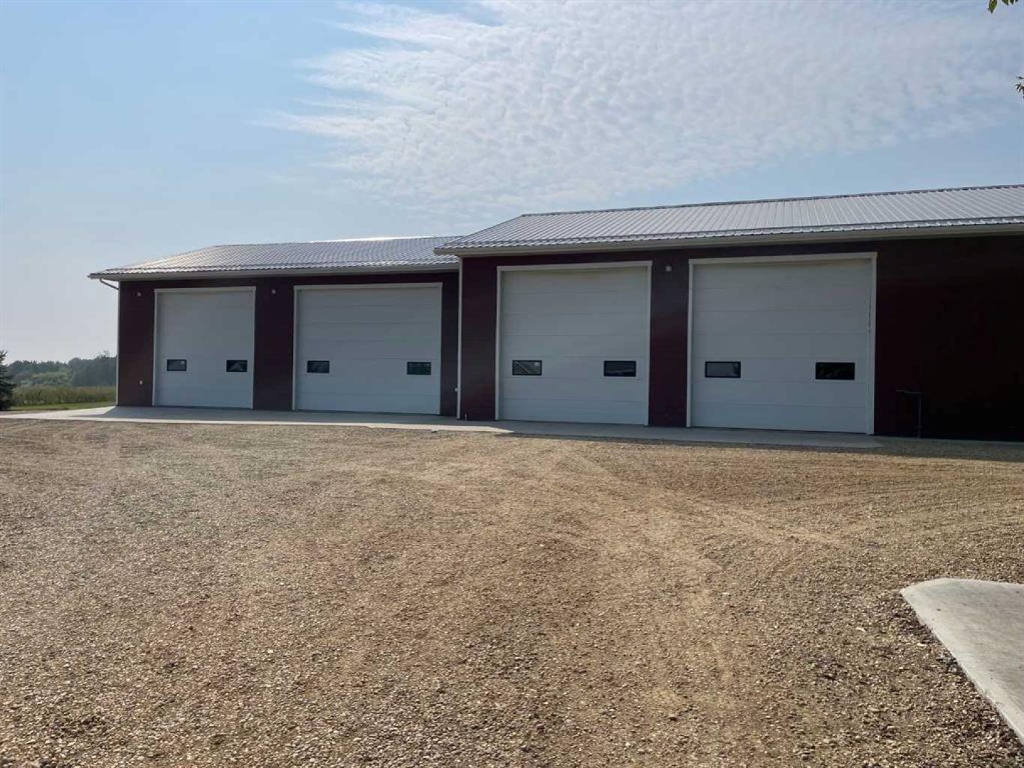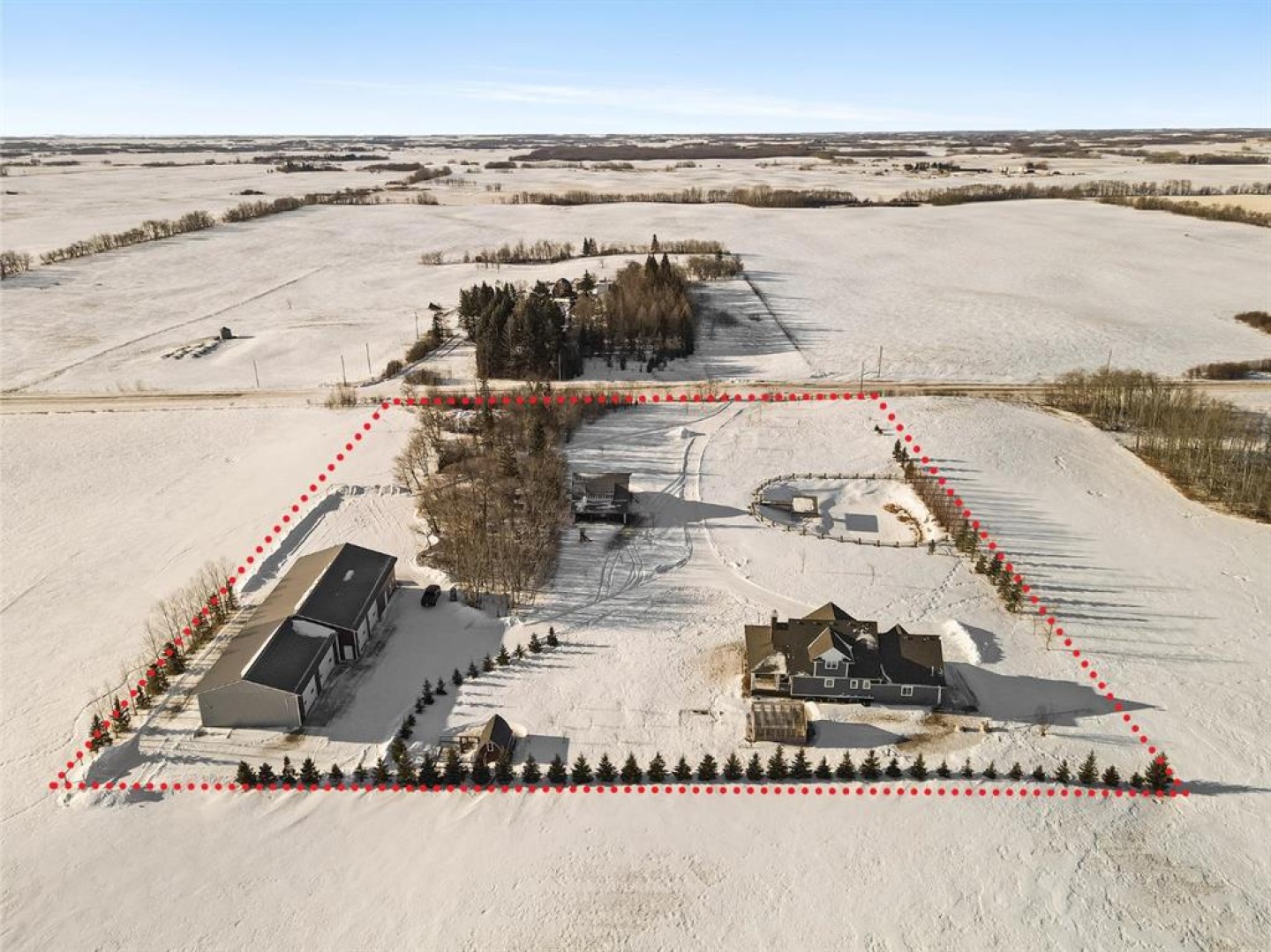 Stunning 2014-built 5-acre parcel featuring an immaculate two-storey home with 6 bedrooms and 3 baths, attached 2-car garage and an incredible heated shop. The property is fully equipped for country living with a barn, greenhouse, chicken coop, dugout with dock, landscaped yard, fencing, firepit area, a graveled drive, lush lawn and maturing trees. The house is wrapped with a covered porch, craftsman detailing and quality finishes. Every detail of the home has been looked after and designed with care. The main floor has a beautiful hardwood stair central to the open living space, vaulted ceilings, large efficient windows, clean and bright kitchen with island, engineered wood floors, featured wood burning stove (not connected), full bath, bedroom, main floor laundry, and a mud room area connected to the fully finished & heated garage. The second floor overlooks the first with an open landing, a second bedroom, and the impressive primary suite with cathedral ceilings, lush carpet, walk in closet, and ensuite with double sinks, soaker tub, and glass enclosed shower. The basement is set up perfectly for family entertainment with a large central recreation area, 3 additional bedrooms and another full bath with double sinks. The mechanical space houses a 300 ga cistern, tankless water heater, sump pump, high efficiency furnace with A/C, and rough-in plumbing for in-floor heat. The home is serviced with a well drilled in 2014, and 2, 1450 ga septic tanks with open discharge. The massive 5456 sq.ft. shop is cladded in both composite and metal siding and the yard surrounding it is generously graveled with concrete aprons outside the doors. The shop is fully insulated and finished with wood sheathing, concrete slab, plumbed with a bathroom, serviced with a rainwater cistern and jet pump, and has a dedicated septic holding tank. There is a mezzanine at one end for additional storage or living space. The property also has a new barn, ready for animals, with lean-tos on both sides for shelter or storage. This is a one-of-a-kind acreage - truly a rare opportunity for those seeking space, privacy, and versatility.