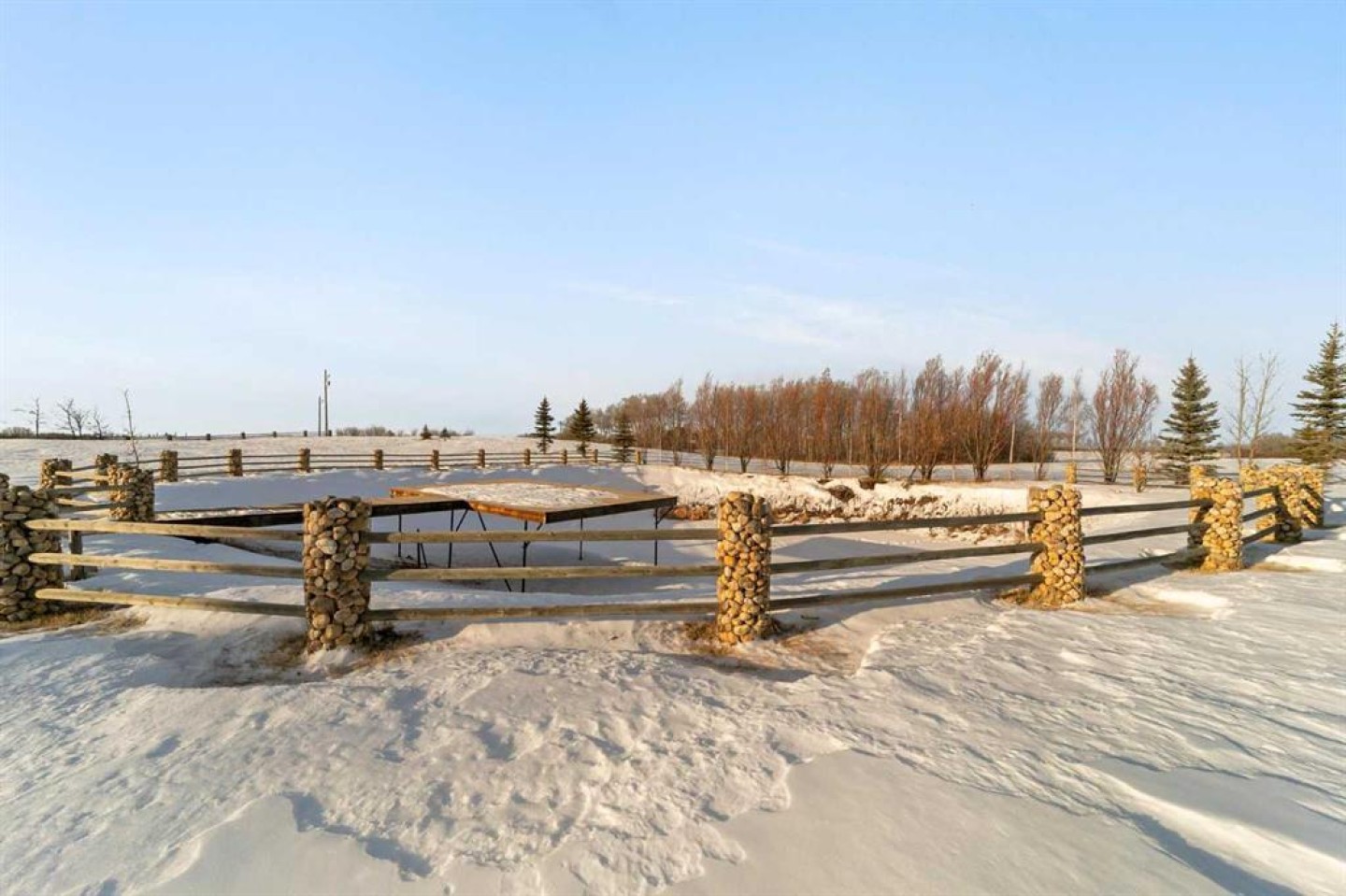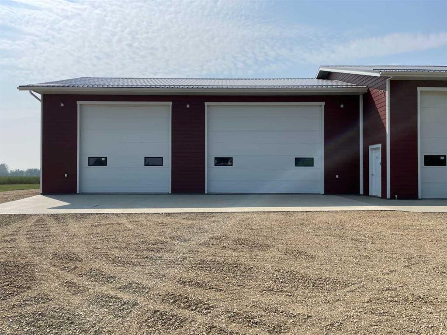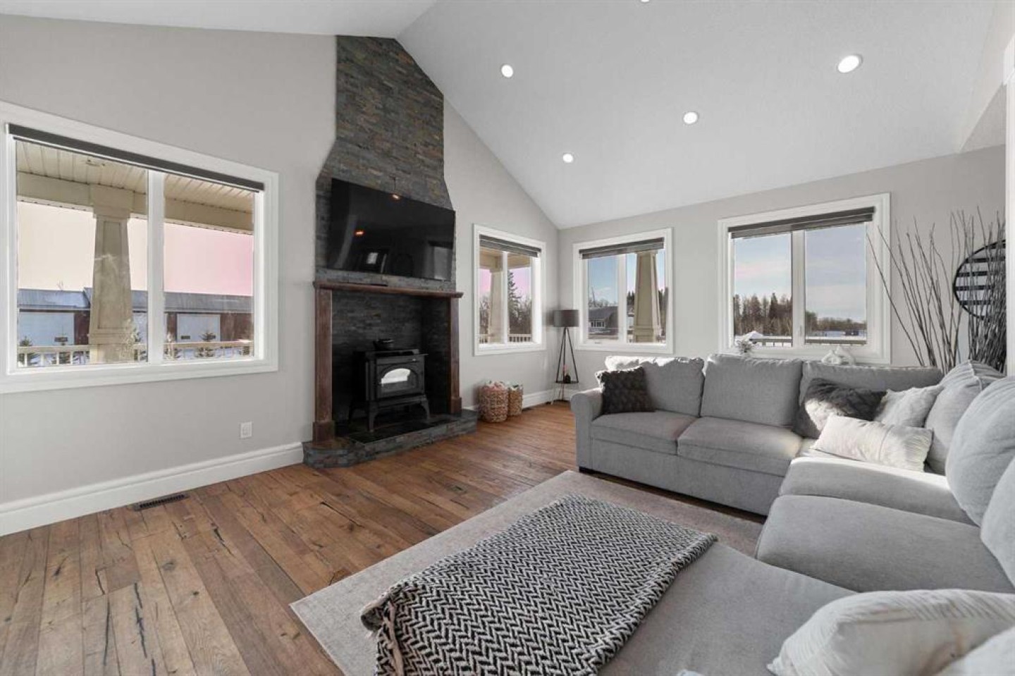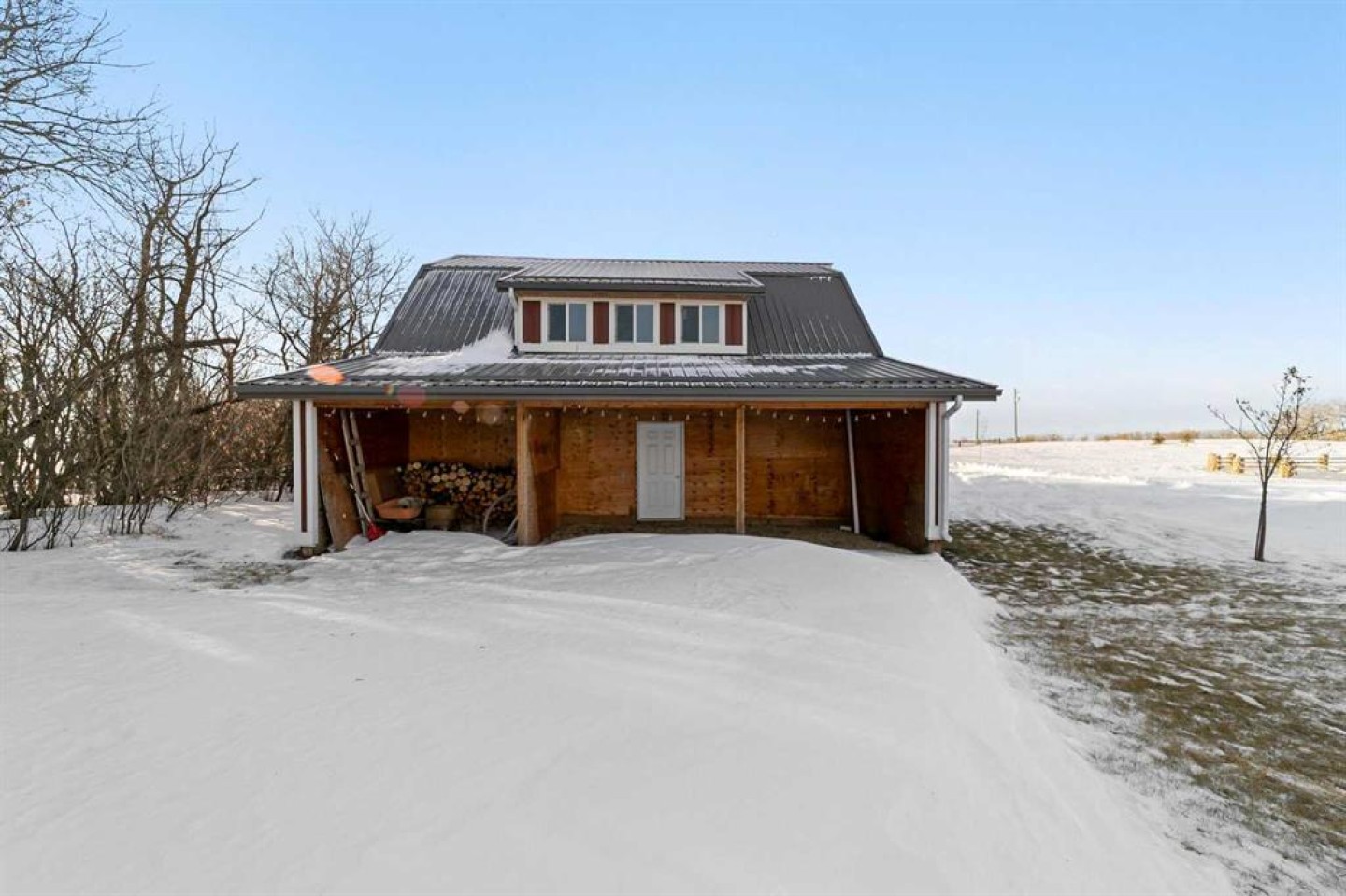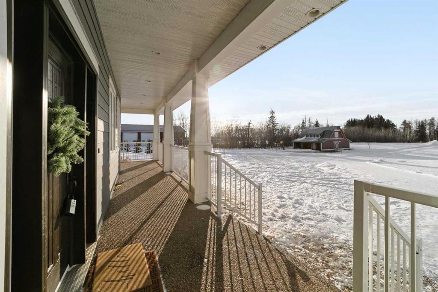 Stunning 2014-built 5-acre parcel featuring an immaculate two-storey home with 6 bedrooms and 3 baths, attached 2-car garage and an incredible heated shop. The property is fully equipped for country living with a barn, greenhouse, chicken coop, dugout with dock, landscaped yard, fencing, firepit area, a graveled drive, lush lawn and maturing trees. The house is wrapped with a covered porch, craftsman detailing and quality finishes. Every detail of the home has been looked after and designed with care. The main floor has a beautiful hardwood stair central to the open living space, vaulted ceilings, large efficient windows, clean and bright kitchen with island, engineered wood floors, featured wood burning stove (not connected), full bath, bedroom, main floor laundry, and a mud room area connected to the fully finished & heated garage. The second floor overlooks the first with an open landing, a second bedroom, and the impressive primary suite with cathedral ceilings, lush carpet, walk in closet, and ensuite with double sinks, soaker tub, and glass enclosed shower. The basement is set up perfectly for family entertainment with a large central recreation area, 3 additional bedrooms and another full bath with double sinks. The mechanical space houses a 300 ga cistern, tankless water heater, sump pump, high efficiency furnace with A/C, and rough-in plumbing for in-floor heat. The home is serviced with a well drilled in 2014, and 2, 1450 ga septic tanks with open discharge. The massive 5456 sq.ft. shop is cladded in both composite and metal siding and the yard surrounding it is generously graveled with concrete aprons outside the doors. The shop is fully insulated and finished with wood sheathing, concrete slab, plumbed with a bathroom, serviced with a rainwater cistern and jet pump, and has a dedicated septic holding tank. There is a mezzanine at one end for additional storage or living space. The property also has a new barn, ready for animals, with lean-tos on both sides for shelter or storage. This is a one-of-a-kind acreage - truly a rare opportunity for those seeking space, privacy, and versatility.