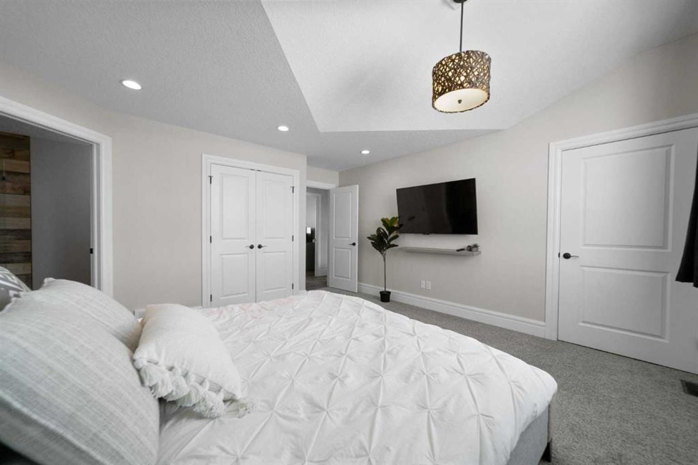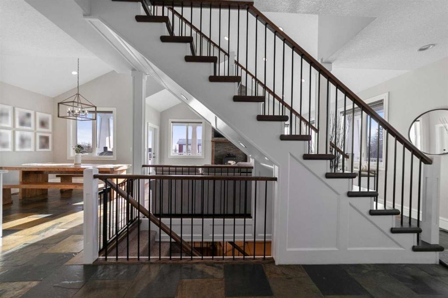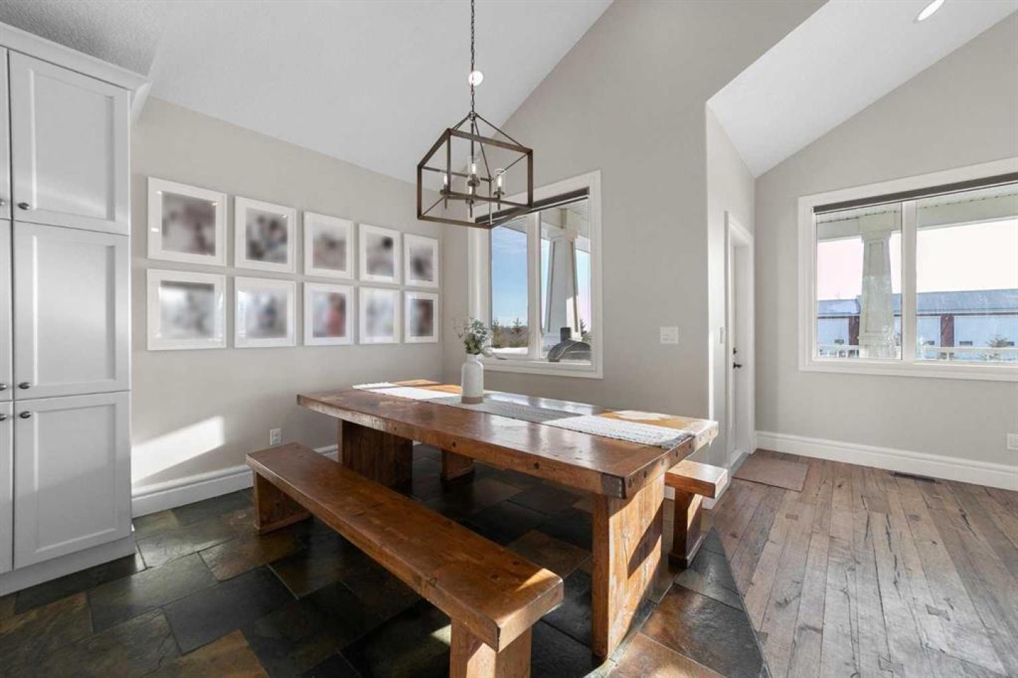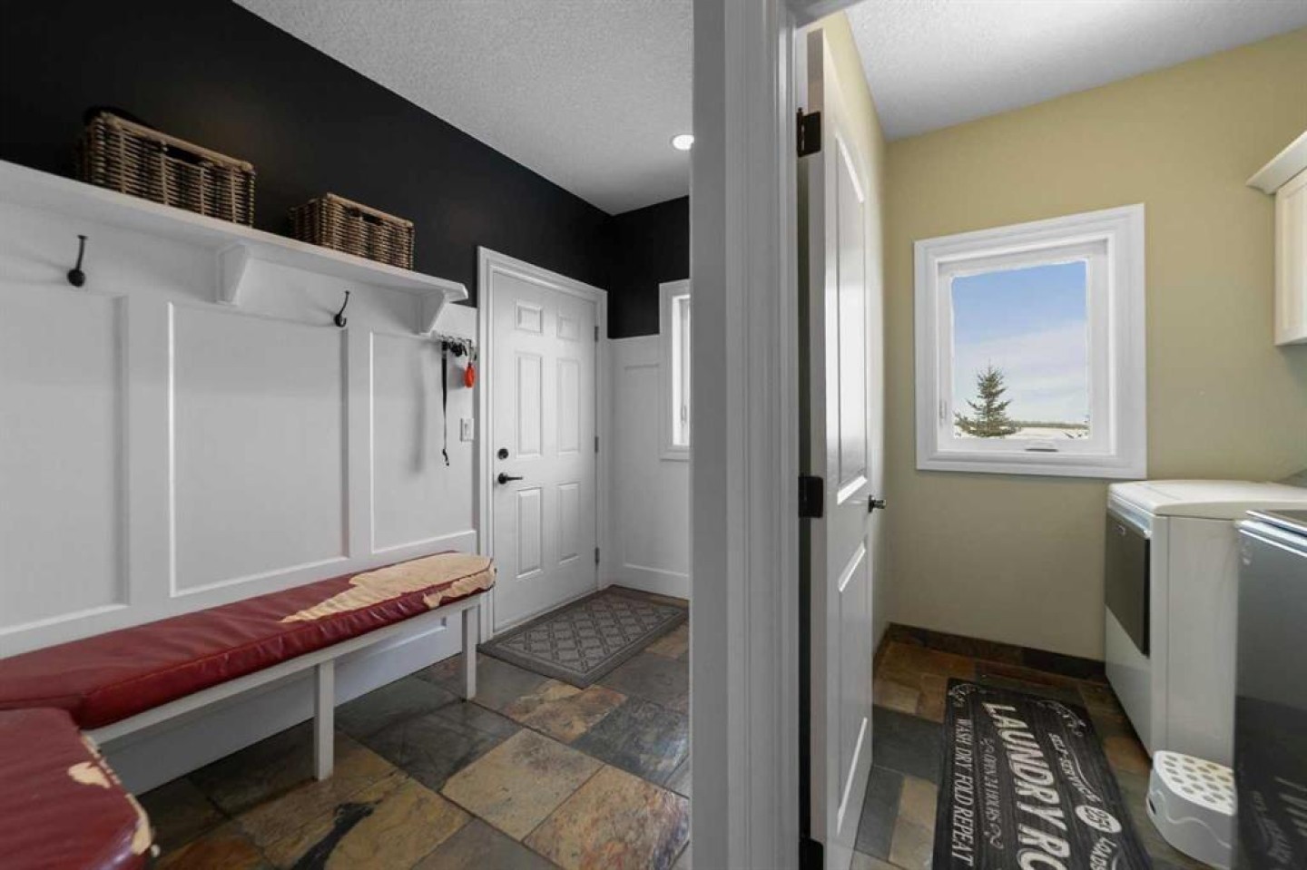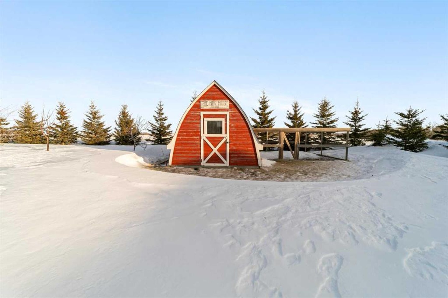 Stunning 2014-built 5-acre parcel featuring an immaculate two-storey home with 6 bedrooms and 3 baths, attached 2-car garage and an incredible heated shop. The property is fully equipped for country living with a barn, greenhouse, chicken coop, dugout with dock, landscaped yard, fencing, firepit area, a graveled drive, lush lawn and maturing trees. The house is wrapped with a covered porch, craftsman detailing and quality finishes. Every detail of the home has been looked after and designed with care. The main floor has a beautiful hardwood stair central to the open living space, vaulted ceilings, large efficient windows, clean and bright kitchen with island, engineered wood floors, featured wood burning stove (not connected), full bath, bedroom, main floor laundry, and a mud room area connected to the fully finished & heated garage. The second floor overlooks the first with an open landing, a second bedroom, and the impressive primary suite with cathedral ceilings, lush carpet, walk in closet, and ensuite with double sinks, soaker tub, and glass enclosed shower. The basement is set up perfectly for family entertainment with a large central recreation area, 3 additional bedrooms and another full bath with double sinks. The mechanical space houses a 300 ga cistern, tankless water heater, sump pump, high efficiency furnace with A/C, and rough-in plumbing for in-floor heat. The home is serviced with a well drilled in 2014, and 2, 1450 ga septic tanks with open discharge. The massive 5456 sq.ft. shop is cladded in both composite and metal siding and the yard surrounding it is generously graveled with concrete aprons outside the doors. The shop is fully insulated and finished with wood sheathing, concrete slab, plumbed with a bathroom, serviced with a rainwater cistern and jet pump, and has a dedicated septic holding tank. There is a mezzanine at one end for additional storage or living space. The property also has a new barn, ready for animals, with lean-tos on both sides for shelter or storage. This is a one-of-a-kind acreage - truly a rare opportunity for those seeking space, privacy, and versatility.