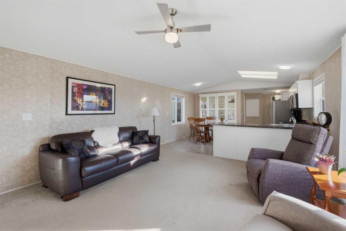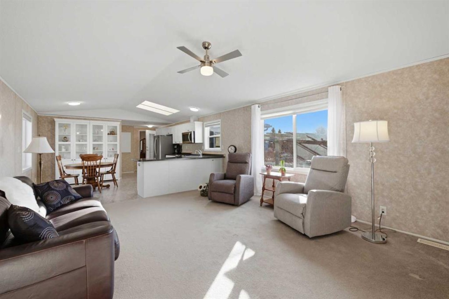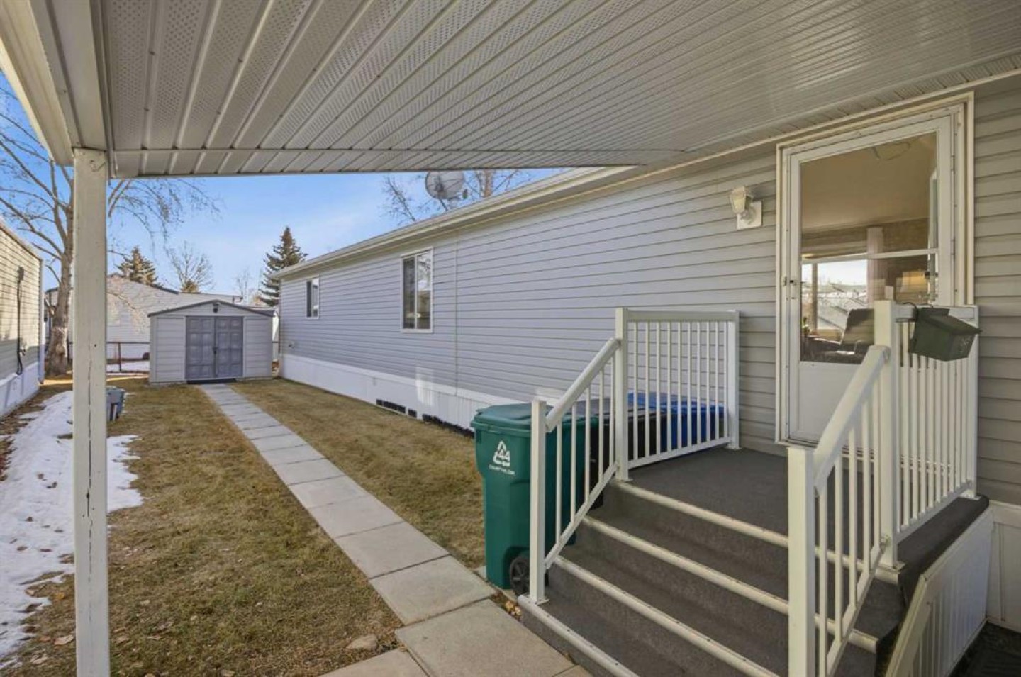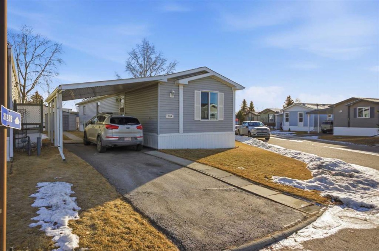 Welcome to this beautifully maintained, move-in-ready 3-bedroom, 2-bathroom home with a covered carport and thoughtfully designed addition. Inside, you’ll appreciate the bright, open floor plan centered around a spacious kitchen featuring a large island, walk-in pantry, and an abundance of warm wood cabinetry. The inviting layout flows seamlessly into a generous dining area and a cozy living room—ideal for both entertaining and everyday comfort. The expansive primary suite includes a walk-in closet and a large ensuite with a relaxing corner soaker tub. Located on the opposite side of the home, the second bedroom and main bathroom offer privacy and flexible space for guests or hobbies. The addition provides a versatile bonus room/3rd bedroom, with direct access to a private back patio and a well-built storage shed. The monthly lot fee includes water, sewer, recycling, garbage pickup, and full access to all clubhouse amenities. Ideally located just steps from Crowfoot Crossing, you’ll enjoy convenient access to shopping, medical services, restaurants, banks, and a movie theatre, with the Crowfoot LRT station nearby for easy commuting. This is a welcoming and active 45+ community. Pets are allowed with board approval and height restrictions. Residency requires an approved application. Book your private showing today and experience the comfort and convenience this home has to offer.