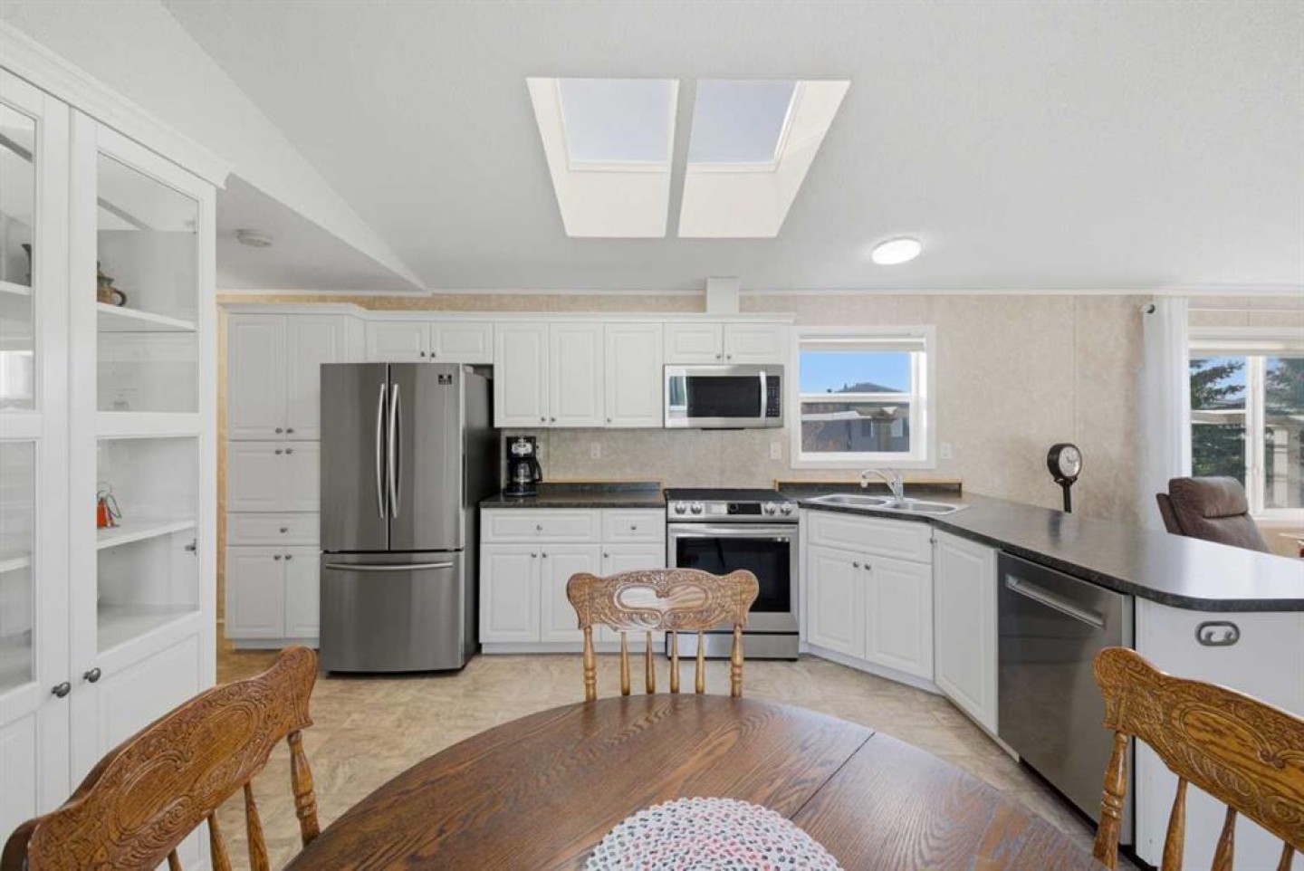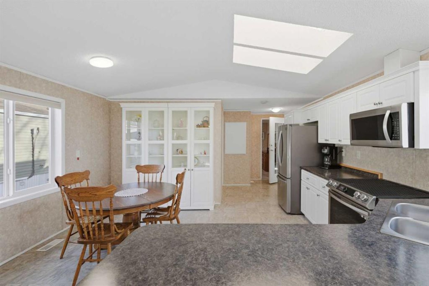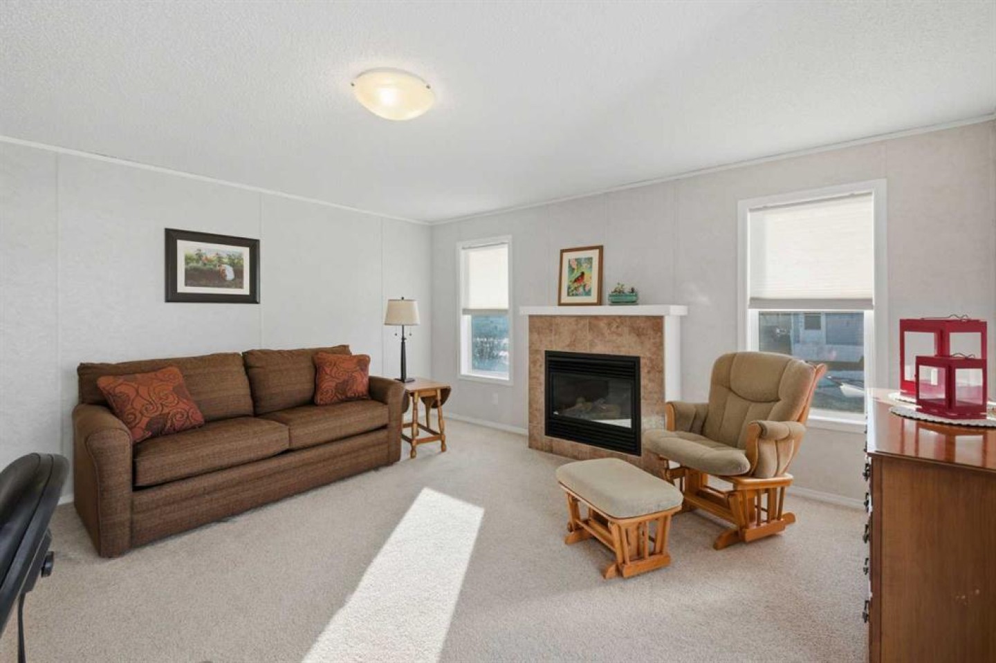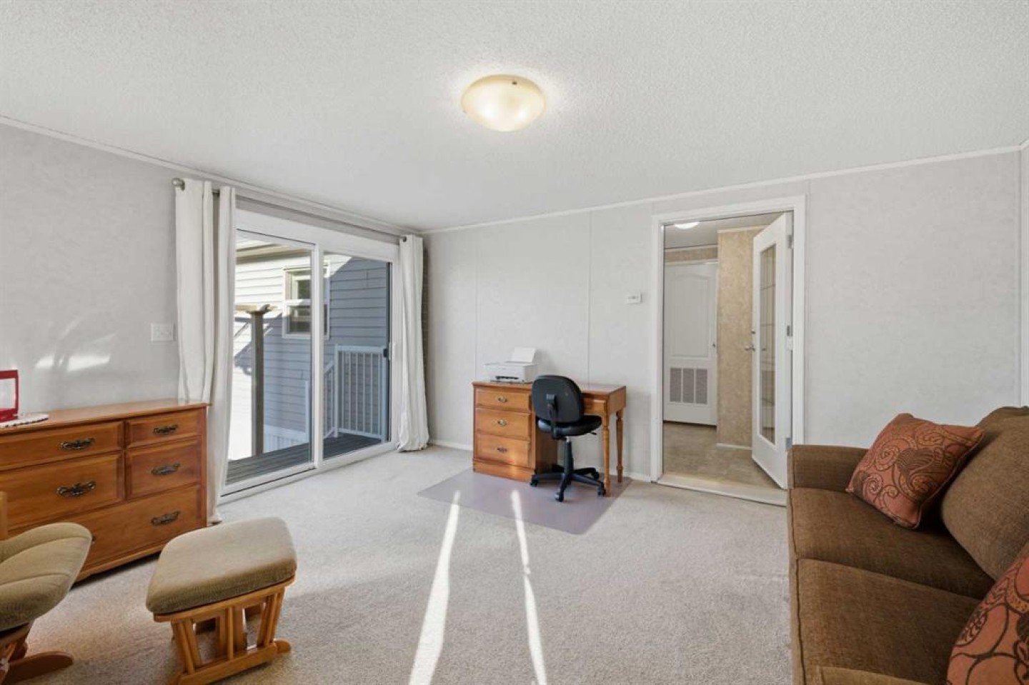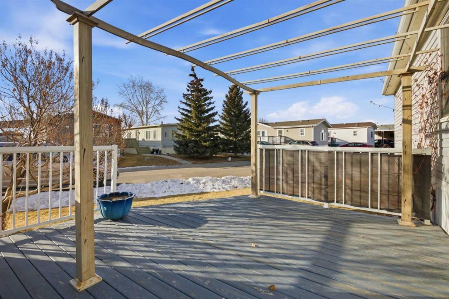 Welcome to this beautifully maintained, move-in-ready 3-bedroom, 2-bathroom home with a covered carport and thoughtfully designed addition. Inside, you’ll appreciate the bright, open floor plan centered around a spacious kitchen featuring a large island, walk-in pantry, and an abundance of warm wood cabinetry. The inviting layout flows seamlessly into a generous dining area and a cozy living room—ideal for both entertaining and everyday comfort. The expansive primary suite includes a walk-in closet and a large ensuite with a relaxing corner soaker tub. Located on the opposite side of the home, the second bedroom and main bathroom offer privacy and flexible space for guests or hobbies. The addition provides a versatile bonus room/3rd bedroom, with direct access to a private back patio and a well-built storage shed. The monthly lot fee includes water, sewer, recycling, garbage pickup, and full access to all clubhouse amenities. Ideally located just steps from Crowfoot Crossing, you’ll enjoy convenient access to shopping, medical services, restaurants, banks, and a movie theatre, with the Crowfoot LRT station nearby for easy commuting. This is a welcoming and active 45+ community. Pets are allowed with board approval and height restrictions. Residency requires an approved application. Book your private showing today and experience the comfort and convenience this home has to offer.