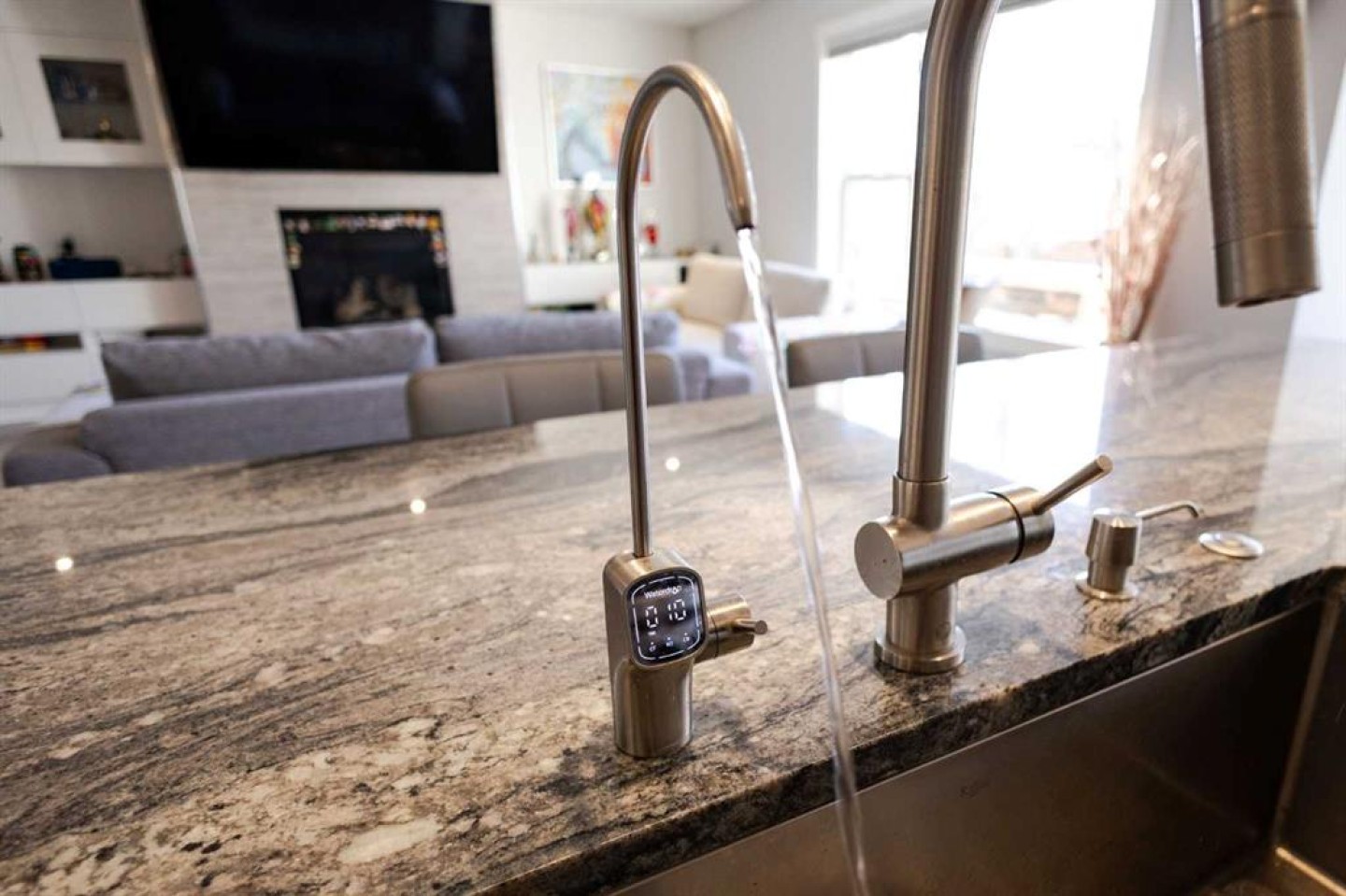 Step into a kitchen that truly elevates everyday living. Featuring illuminated glass-front cabinetry that beautifully showcases your collection, this space reflects the passion of the previous owner — a professional chef — with premium appliances including a multi-burner gas cooktop and high-end range hood with warming lights. Elegant glass display storage continues into adjacent built-ins, seamlessly combining function with refined design. A brand-new 800 GPD remineralization RO system with UV sterilization (approx. $1,000 value) paired with a whole-home water softener ensures pure, great-tasting water throughout the house — perfect for both everyday living and entertaining.