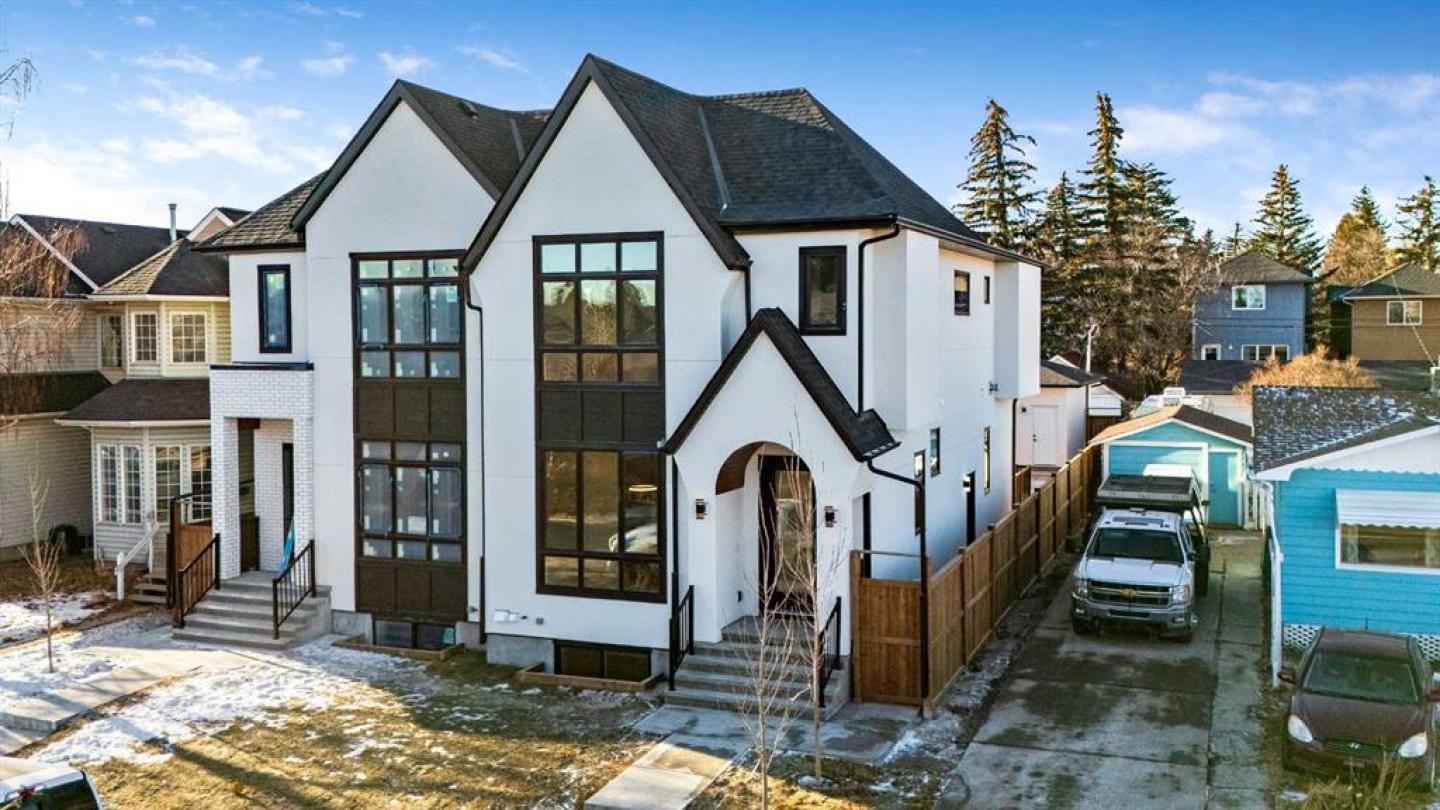 OPEN HOUSE SUNDAY February 25, 1 to 4pm!! Welcome to the lap of luxury in Rosscarrock. This beautifully appointed infill is within one kilometre walking distance to Westbrook C-train station, Westbrook mall, E-MART, Walmart, Starbucks, and many pubs/restuarants which makes it an ideal location with its 2 BEDROOM BASEMENT LEGAL SUITE. Have Kids with allergies? NO CARPETS THROUGHOUT. The Main floor has 10’ CEILINGS, wide front entrance, an enormous dining area to fit a harvest table, luxurious kitchen with quartz backsplash, 14' long island with a magnificent quartz countertop and dual waterfall feature and cabinet doors on both sides (plenty of storage space for all your small kitchen appliances), a show-stopping "COMMERCIAL STYLE" 36 INCH GAS RANGE, Impressive 48" FRIDGE and High-end BEVERAGE COOLER in the seamlessly situated coffee bar that is open-to-above. The Living room has an opulent 50' GAS FIREPLACE with built-ins and sliding patio doors that opens to a maintenance-free, composite plank party deck. The mud room has sitting bench and hangers, and will lead a conveniently located powder room. The highlight of the top floor is the Massive Primary bedroom with its Cathedral ceiling, spacious WALK-IN HIS & HER closets and a spa-like ensuite which will have a tiled STEAM SHOWER, double vanity, and a free-standing tub. The top floor is completed with a laundry room with sink, two bedrooms, one which has "cheater-ensuite" access to the common 4-piece bathroom. Every main and top floor bathroom has electric in-floor heating with their own thermostat, 200 AMP SERVICE TO HOUSE ensures there is enough power for house and a legal basement suite. The BASEMENT HAS A SEPARATE SIDE ENTRANCE, access to the furnace/mechanical room is in the common area so basement tenants do not need to be bothered/notified if you have to access the mechanicals. The basement ceiling has sound reduction features in the ceiling, hookups for a private laundry, kitchen and living room (with a gas fireplace), ITS OWN FURNACE and roughed-in in-floor heating. Did I mention TRIPLE PANE WINDOWS THROUGHOUT which are more energy efficient and improve sound insulation within the house? Other features include GFCI OUTLETS BEHIND EVERY TOILET (required for heated bidets), 200 AMP service in home, HEATED (also insulated, drywalled and painted) GARAGE WITH 200 AMP SERVICE with an EV CHARGING RECEPTACLE suitable to connect a Level 2 charging station. Taxes on completed home not yet assessed.