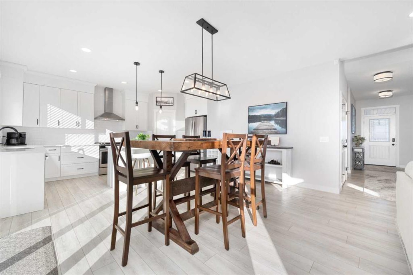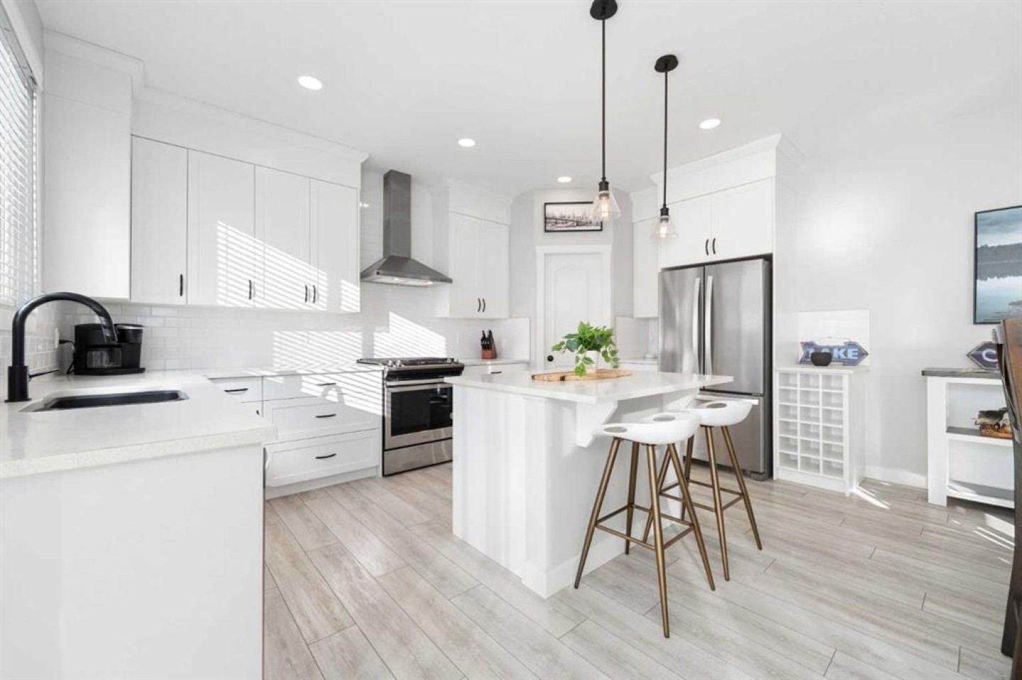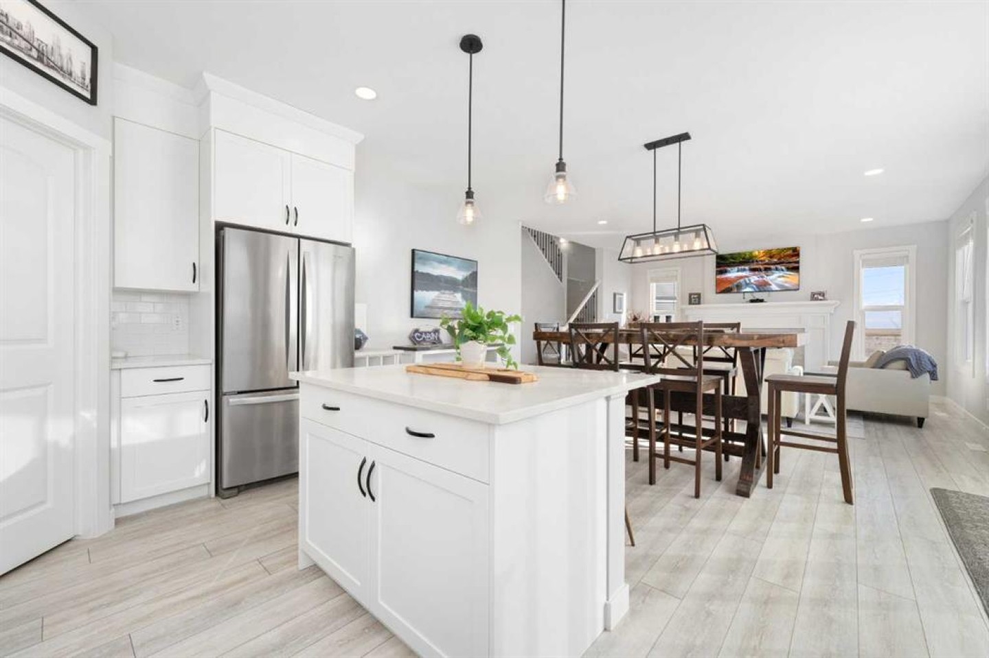 Tucked away on a quiet cul-de-sac and set on an exceptionally large pie-shaped lot, this beautifully maintained home delivers a rare combination of privacy, space, and unobstructed golf course views. This custom property offers over 2,250 square feet of thoughtfully designed living space above grade—ideal for families who value both functionality and style. From the moment you enter, the home impresses with its welcoming layout and refined finishes. Just off the front entrance is a versatile flex room that easily adapts to your lifestyle—perfect as a home office, playroom, or creative space. Moving through the foyer, the heart of the home opens up into a bright and airy open-concept design that seamlessly connects the living room, dining area, kitchen, and backyard, making it ideal for entertaining or everyday family life. The contemporary kitchen is both stylish and practical, featuring quartz countertops, an island with breakfast seating, stainless steel appliances, a gas range, and a spacious corner pantry. A charming farmhouse-style sink sits beneath a window overlooking the backyard, filling the space with natural light and offering peaceful views while you cook. From the kitchen, you can easily keep an eye on family and guests gathered by the fireplace or enjoying the expansive outdoor space. The main level is completed with a convenient powder room and a well-designed mudroom to keep daily life organized. Upstairs, you’ll find a generous bonus room flooded with light and overlooking the backyard—an ideal spot for movie nights or a kids’ retreat. The primary suite is a true sanctuary, featuring a striking custom feature wall, a spa-inspired ensuite, and a large walk-in closet. Two additional spacious bedrooms, a full four-piece bathroom, and a conveniently located upper-floor laundry room complete this level. Step outside and discover your own private backyard escape. The oversized pie lot backs directly onto the golf course and features a multi-tiered deck with gazebo, perfect for entertaining or unwinding. Relax in the hot tub while taking in the open views and tranquil surroundings—this outdoor space is truly something special.