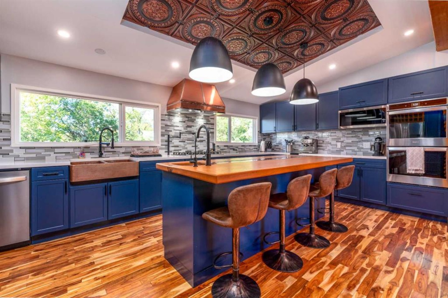 Inside, the heart of the home is a bold, custom-designed kitchen that’s equal parts functional and unforgettable. High-end finishes, quartz countertops, premium appliances, and eye-catching copper details create a space built for entertaining, gathering, and everyday living. Throughout the home, thoughtful updates — including new windows, electrical improvements, fresh paint, and a water softener — add comfort and confidence for years to come.