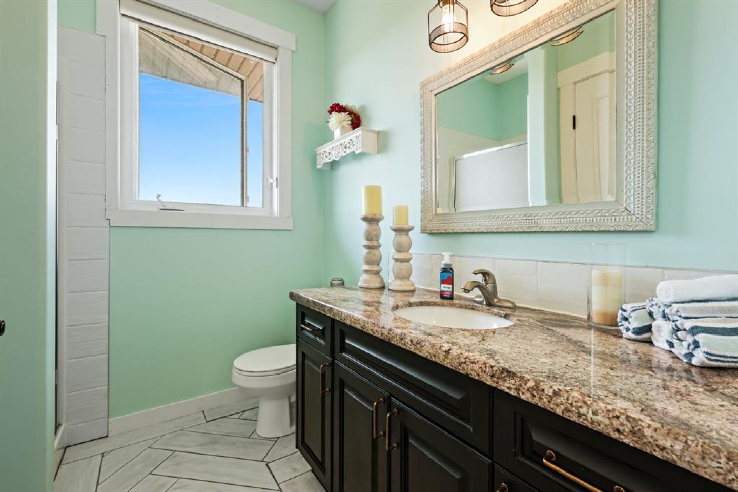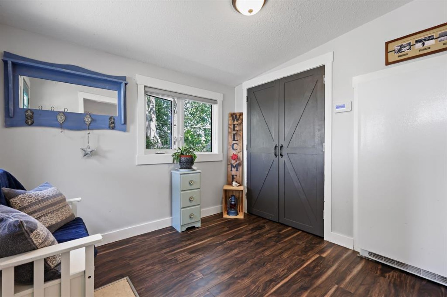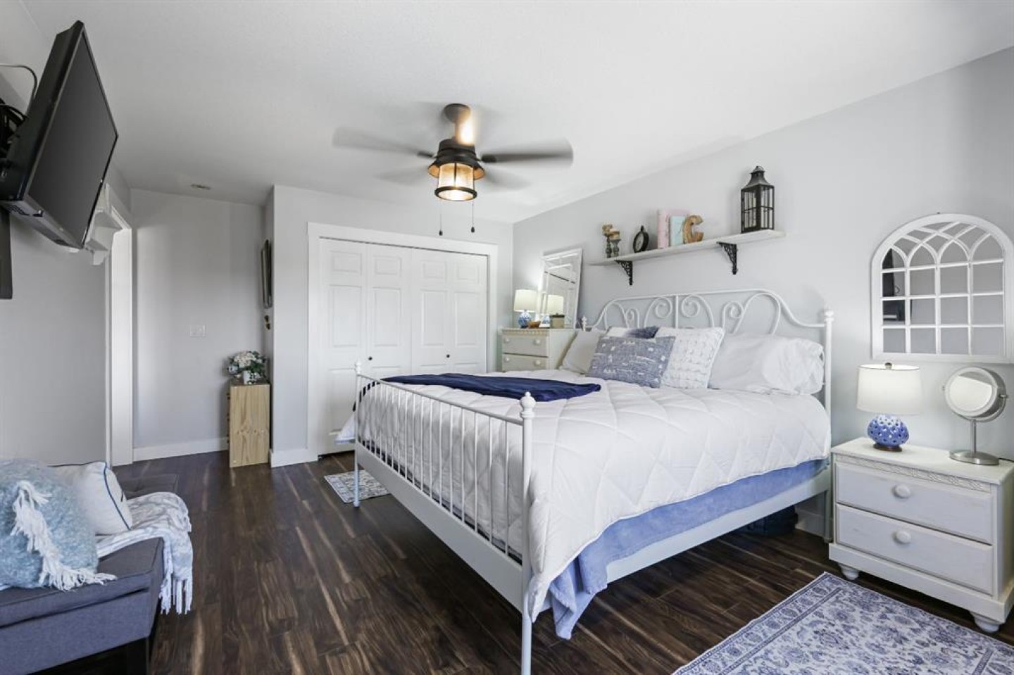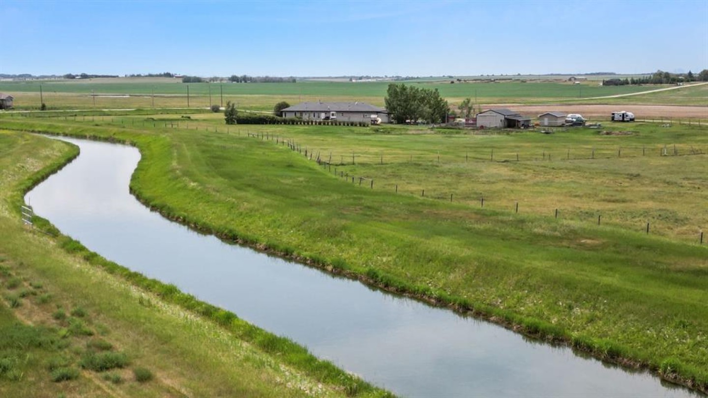 The main residence features a spacious primary bedroom filled with natural light from its south- and east-facing windows. The elegant ensuite includes a walk-in shower, soaker tub, and dual sinks, while the walk-in closet is equipped with built-in shelving and access to a massive 2,000 sq.ft. poured concrete crawl space—perfect for all your storage needs. Two additional bedrooms and a four-piece bathroom are located in the main wing. The open-concept living and dining room is centered around a stunning floor-to-ceiling, double-sided stone fireplace. With vaulted ceilings and a wood-burning insert with gas start, it adds warmth and charm to the space while creating a seamless flow between living and dining areas. The kitchen is bright and welcoming with plenty of cabinetry, a large walk-in pantry, Brazilian granite countertops, DuraCeramic tile flooring, and a breakfast bar. East-facing windows and patio doors lead to a cozy outdoor seating area—perfect for morning coffee, evening BBQs, or relaxed entertaining. Heading down the hallway to the in-law suite, you’ll pass a convenient three-piece bathroom and a den—perfect for a home office or quiet reading nook. The shared laundry room is both functional and stylish, offering a window for natural light, a utility sink, countertop for folding, and beautiful cabinetry for extra storage. The in-law suite was thoughtfully laid out with comfort in mind. The kitchen features a modern-country style with an apron sink overlooking a charming window, a gas stove for the home chef, and an island for additional prep space or casual dining. The open-concept living room is cozy and inviting, and a west-facing window captures breathtaking sunsets. The large bedroom offers a peaceful place to unwind at the end of the day, while the three-piece bathroom includes a walk-in shower, built-in shelving, and a mirrored cabinet for extra storage. Recent upgrades include new shingles and updated front siding, giving the home great curb appeal and long-term value. Outside, a 31'4 x 26'0 barn—including a separate storage room—offers versatile options for a workshop or animal shelter. A tranquil pond is fed by the adjacent canal, and the property is accented with mature deciduous trees and shrubs for added beauty and privacy. For evening enjoyment, gather around the cozy firepit area under the stars—perfect for roasting marshmallows and making lasting memories. This sought-after acreage combines space, privacy, and quick access to city amenities. Whether you're looking to escape the hustle of urban life or find a perfect place for your family to grow, this property is truly one of a kind.