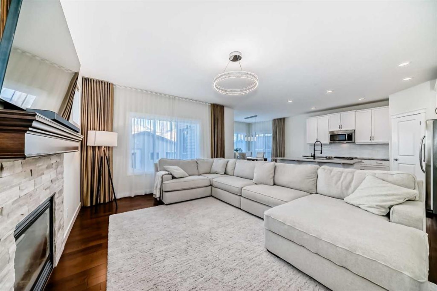 Welcome to 105 Elgin Meadows Circle, a Beautiful 3-bedroom, 2.5 bath home with over 2000-sq.f. of MOVE IN READY space, nicely landscaped lot, and a mountain of upgrades! Step inside the front door to the spacious open concept that is flooded with natural light. The large and bright flex room offers the perfect space for a family room or a sunny home office. Hardwood floors throughout the kitchen, dining and living room area showcasing the ideal layout for entertaining family and friends. The stylish updated kitchen (2023) comes with a custom Italian Quartz counter package, updated white cabinetry and backsplash, Corner pantry, new kitchen faucet and under-mount sink plus a quiet Bosh dishwasher (2023). The main floor ceiling has been upgraded to a knockdown finish and a Cartwright lighting package added throughout the home (2023). The living room features an oversized picture window and a retiled gas fireplace (2023). The dining space has large corner window and connects to the back mudroom with access to the private deck and fenced yard. A dedicated main floor laundry room and a separate 1/2 bathroom for convenience. New carpet /Underlay and fresh paint throughout the house (2025). New cedar front porch with natural stone wrap (2025). Furnace upgraded with a commercial grade Air filter and UV Light (2024). New High efficiency Hot Water Tank and Water Softener (2025) and for the hot summer days a new Lennox 4-ton Central Air Conditioner (2024). Upstairs you'll find three spacious bedrooms, full 4pc bath and a extra bonus room that can be used as a home office or TV flex room with a Juliet balcony. The large primary has an additional 4pc en-suite bath with a walk-in closet. Unfinished basement is awaiting your finishing touches; In the back you will find a double detached garage with an additional side trailer parking pad and gate, and a convenient BACK LANE. The back deck is ready for your BBQ hangouts or relaxing evenings in the backyard. Located in the highly sought -after Community of Mckenzie Towne, you have easy access to the splash park, winter skating rink, Playgrounds, Schools, and Transit. Mere steps away from the Environmental Reserve with walking/biking paths and ponds. Plus, you're just minutes from High Street with many Shops, grocery stores, Restaurants and all amenities. With tons fantastic features and new upgrades this home is truly MOVE IN READY with unbeatable location. Come take a look!!!