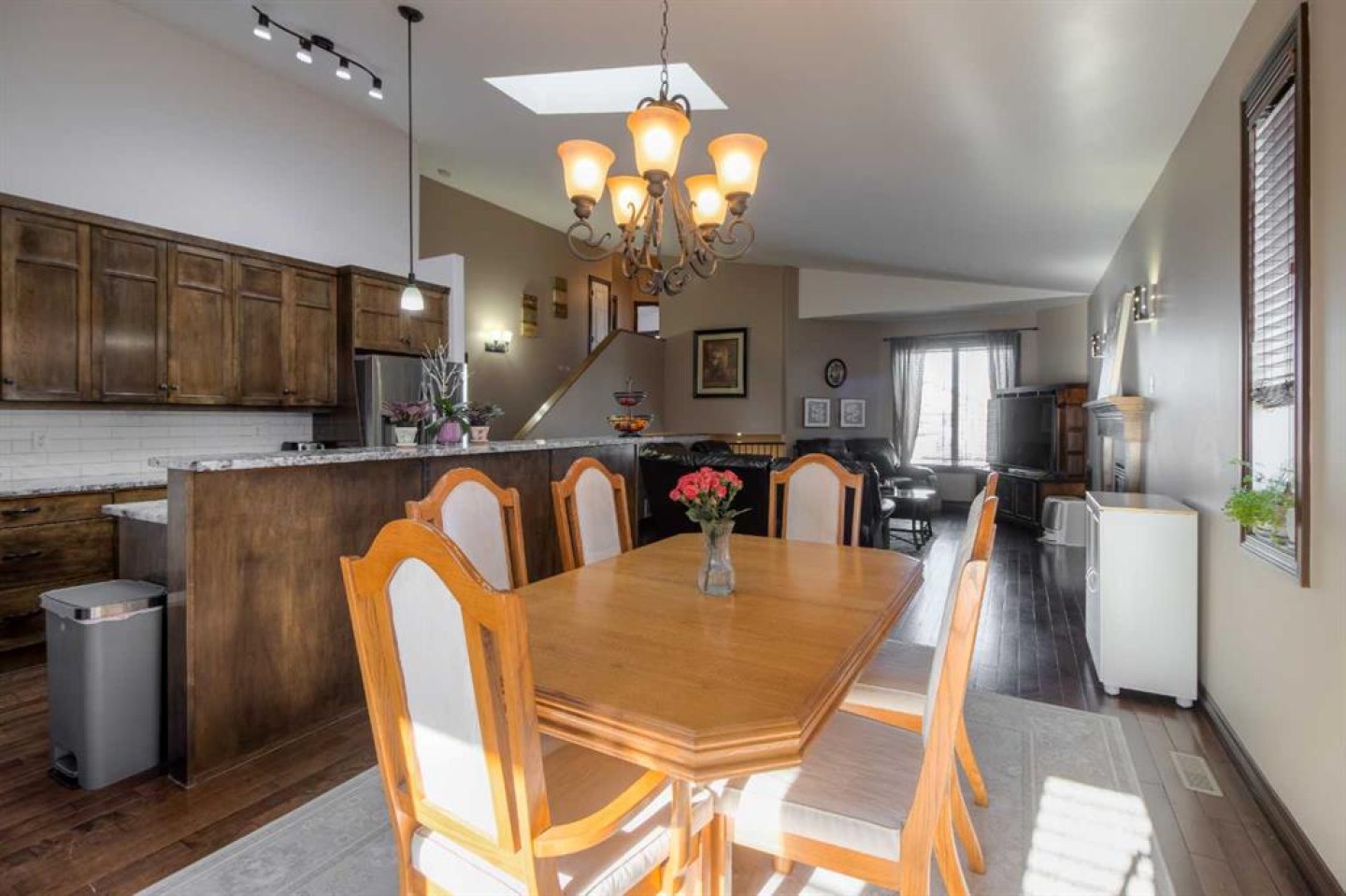 Welcome to this spacious and well-appointed 6 bedroom family home, perfectly designed for comfort and functionality. The open-concept main floor offers a bright and inviting living space, featuring a thoughtfully designed kitchen with granite countertops, corner pantry, and ample prep and counter space. The kitchen flows seamlessly into the dining area and living room, where a cozy gas fireplace creates the perfect gathering spot.