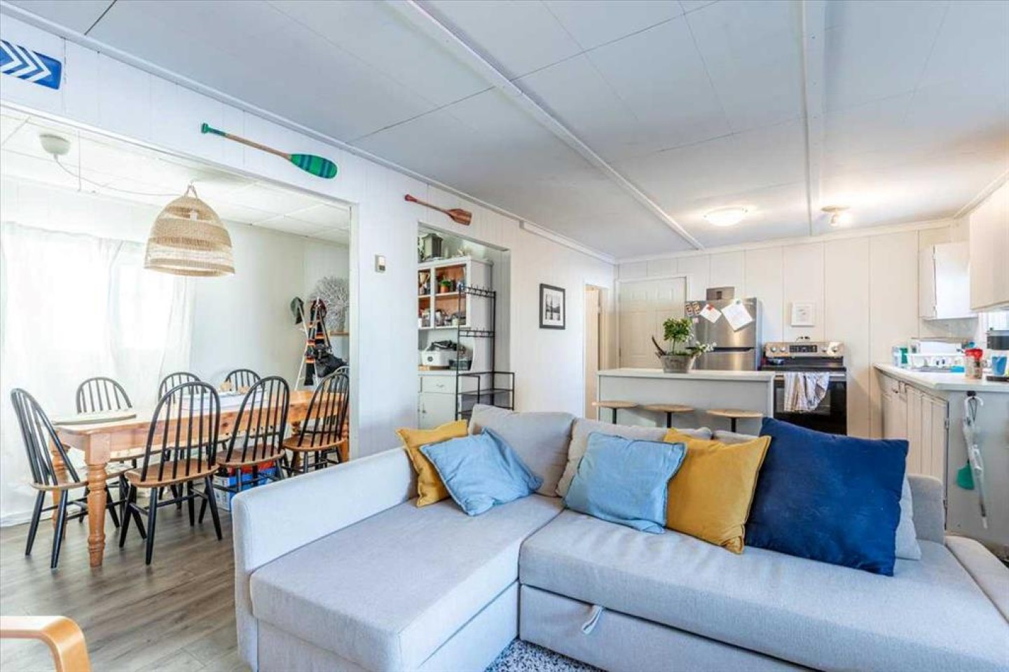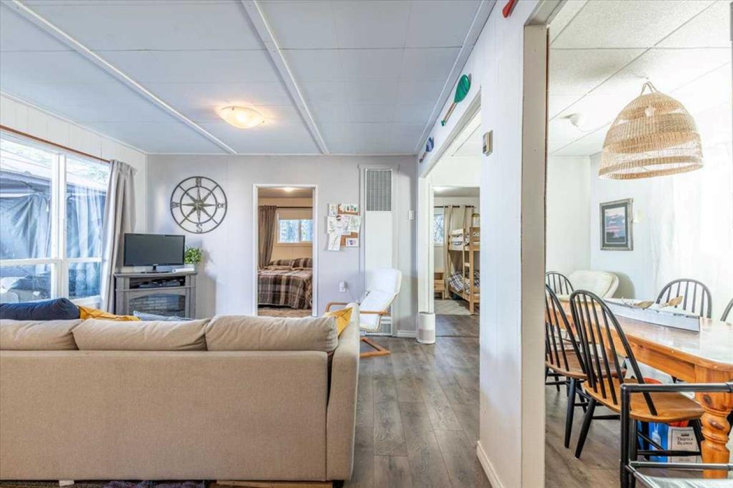 This 4 season Lake Front Property is renovated with new appliances, flooring, paint, and bathroom! Inside, the functional layout includes a Kitchen with an island that is open to the Dining area and Living room. Two bedrooms and a 3 piece bathroom with laundry complete the interior floor plan. A Large deck with a Gazebo provide a beautiful view of the beach and lake. A 24'x10' Single Garage with power, overhead door, and wood floor is perfect for storing all your lake toys! This property is ready for its new owners to start enjoying life at the lake year round!