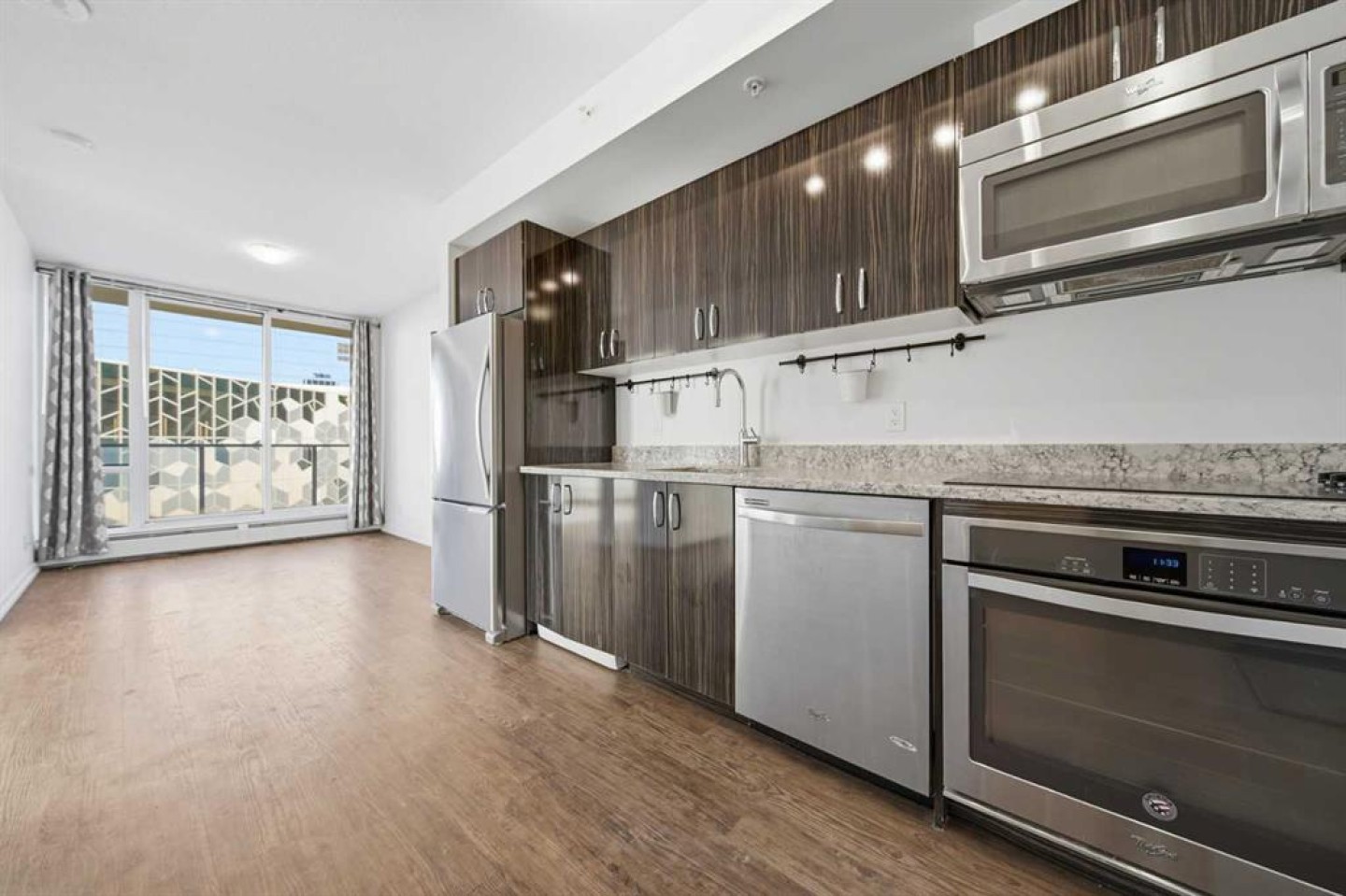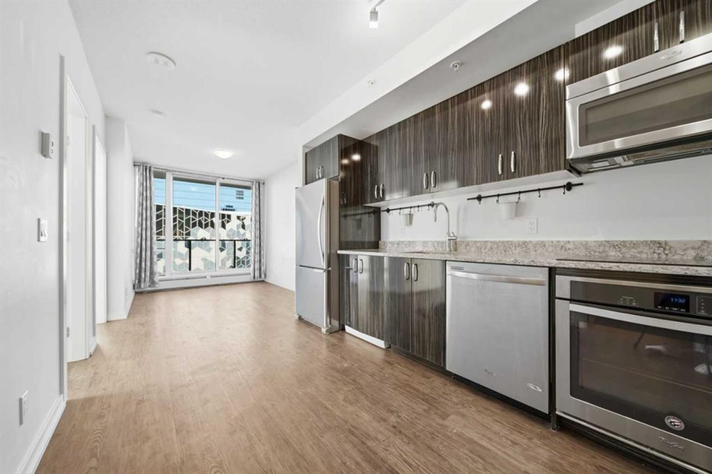 Bold city living meets everyday ease in this west-facing, two-bedroom corner residence offering expansive city views and beautiful natural light throughout the day. The smart, open layout balances comfort and functionality, making it easy to personalize the space to suit your lifestyle—whether that means a dedicated home office, added storage solutions, or a relaxed urban retreat. The kitchen is both stylish and practical, featuring granite countertops, built-in stainless steel appliances, and an abundance of cabinetry for streamlined storage and everyday efficiency. Open to the living and dining areas, it’s a welcoming space for both quiet nights in and casual entertaining. The well-proportioned primary living areas enjoy sun-filled west-facing views, while the two bedrooms provide flexibility for guests, work-from-home needs, or shared living. A modern four-piece bathroom and in-suite European-style laundry add convenience and thoughtful design to this downtown home. Step outside and immerse yourself in one of Calgary’s most energetic and evolving neighbourhoods. From morning coffee at Caffè Rosso to evenings at Studio Bell or the iconic King Eddy, the best of East Village is just moments away. Enjoy effortless access to the Bow River pathways and C-Train stations within easy walking distance, making commuting simple and stress-free. Daily errands are a breeze with a new grocery store only one block away, while parking options available nearby for monthly rental add flexibility for residents and visitors alike. Just next door, the award-winning Calgary Public Library, internationally recognized for its striking architecture, anchors the neighbourhood with culture and community. N3 refines urban living with standout amenities, including a state-of-the-art fitness centre on the 16th floor with city views, rooftop patios ideal for entertaining, a secure storage locker, and dedicated bike storage for an active downtown lifestyle. Whether you’re investing in lifestyle, location, or long-term value, this East Village condo delivers modern design, exceptional walkability, and a neighbourhood poised to thrive for years to come.Whether you’re investing in lifestyle, location, or long-term value, this East Village condo offers a compelling blend of modern design, walkable convenience, and a vibrant urban setting that continues to grow and thrive.