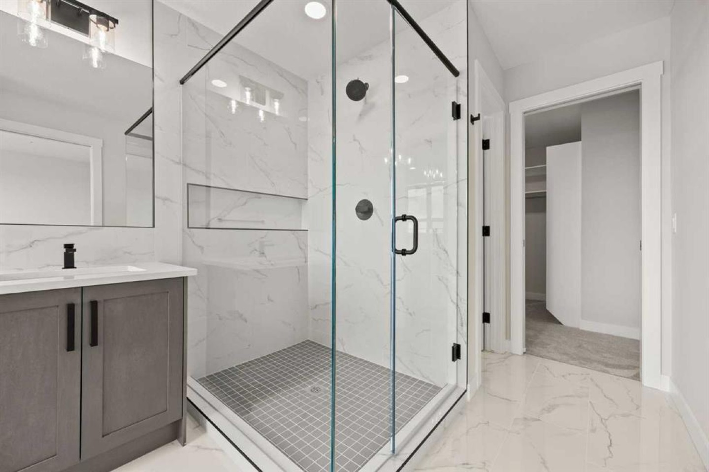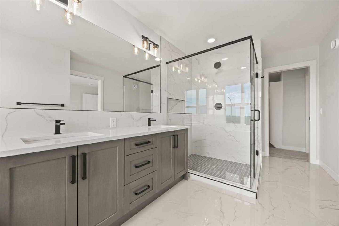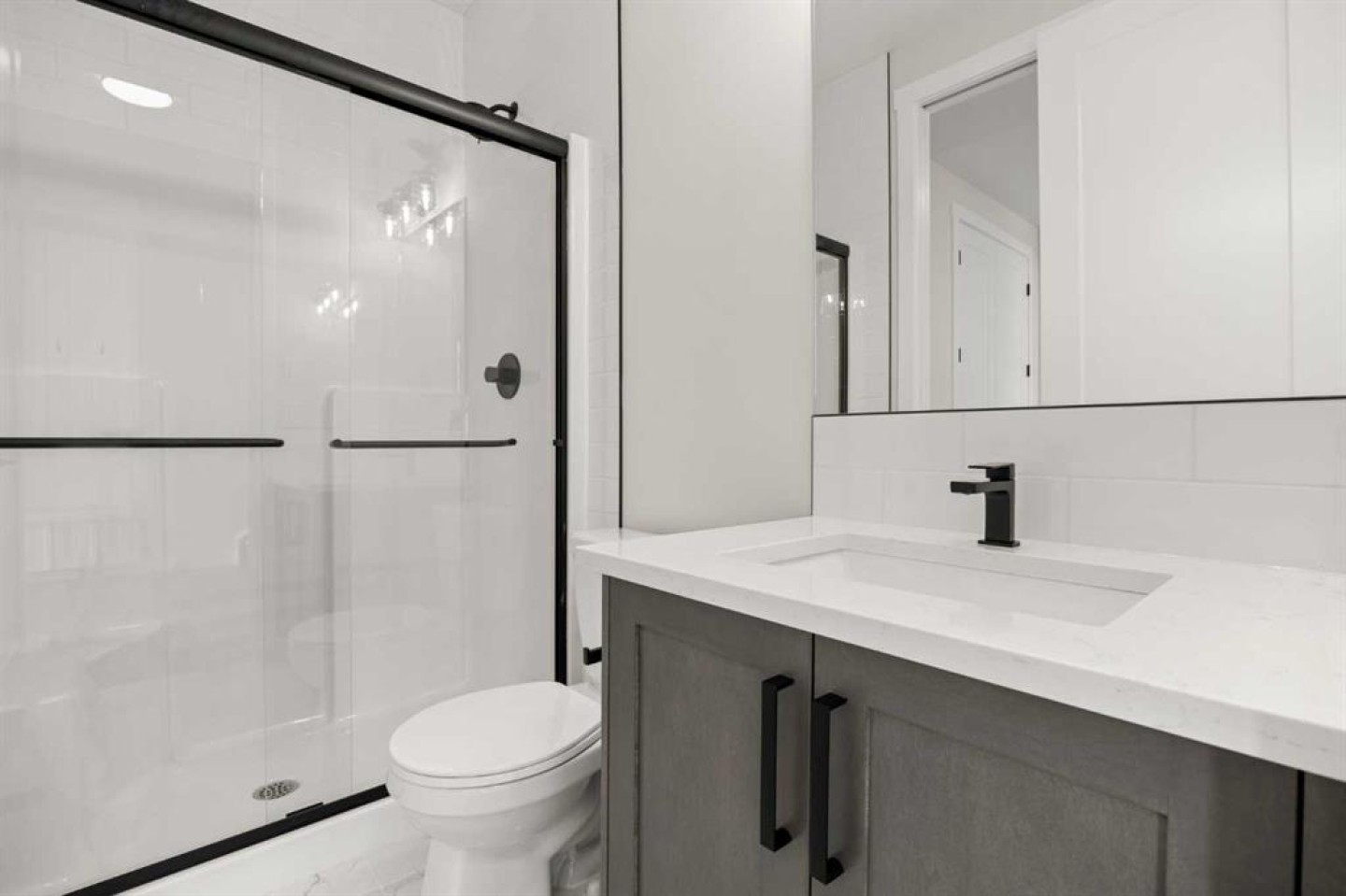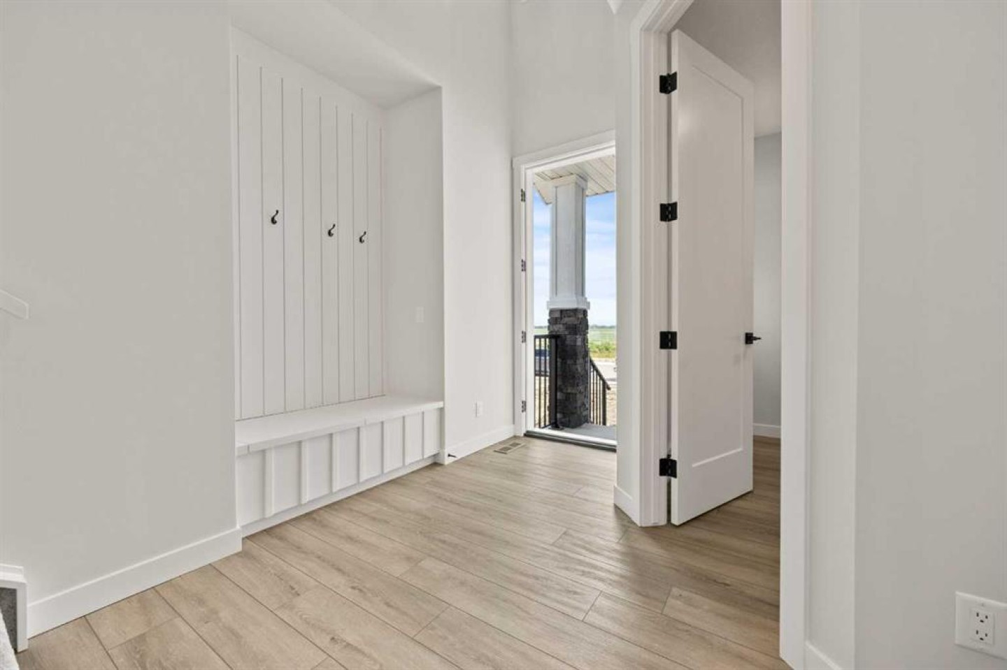From the moment you step inside, you’re greeted by a luxury open-to-below entrance featuring a custom shiplap coat hook and built-in bench, making a stylish and practical first impression. The main floor features 9' ceilings with 8' doors throughout, a full bedroom with an adjoining full bathroom, and a walkthrough mudroom and pantry that connects seamlessly to the open living space. The heart of the home is the kitchen, with painted cabinets to the ceiling, quartz countertops, a large island with breakfast bar seating, and stainless steel appliances. Oversized triple-pane windows fill the dining and living rooms with natural light, while the open layout makes this the perfect home for family gatherings or entertaining.
