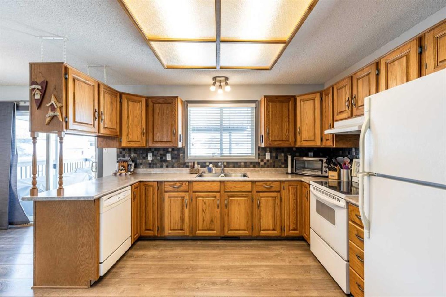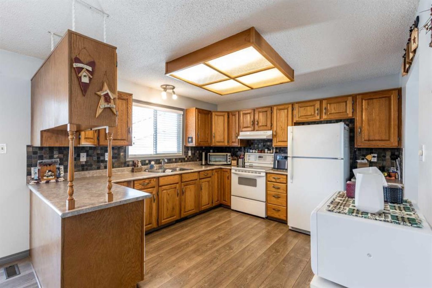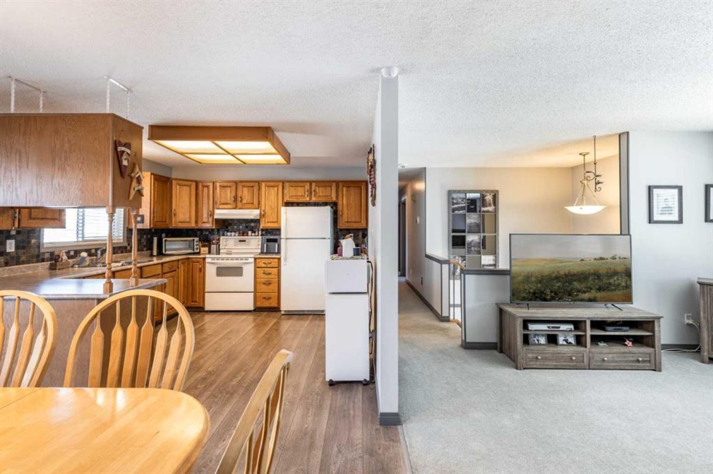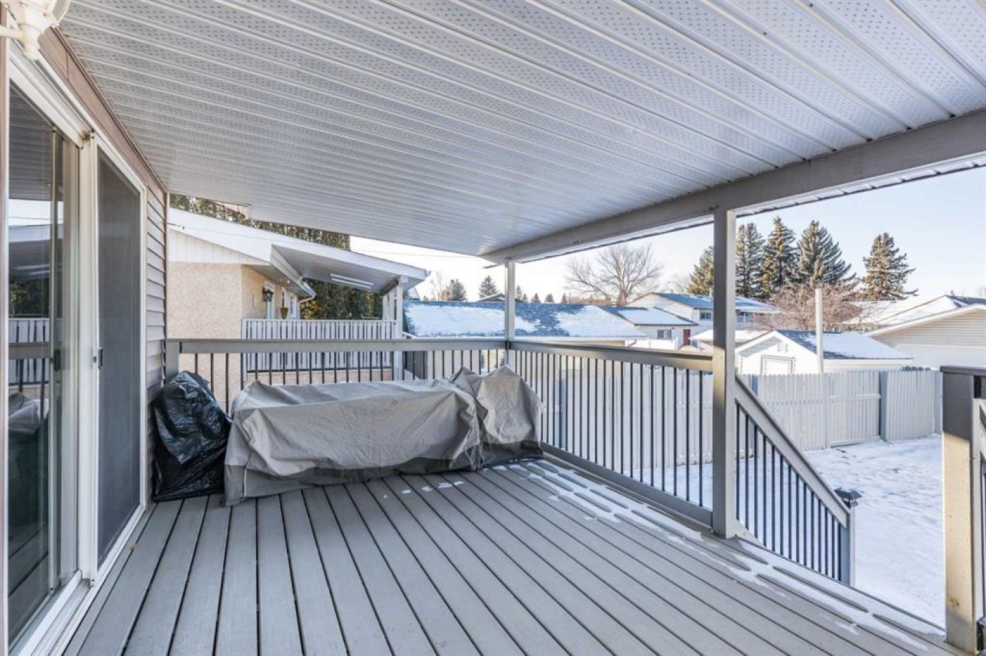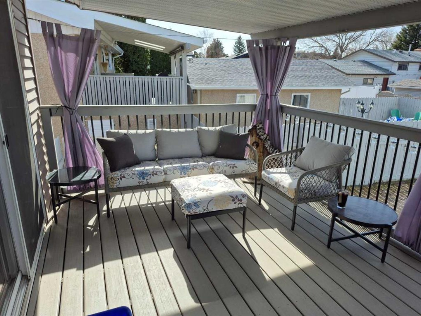 Welcome to this beautiful family home in the highly desirable Ross Glen. Featuring 3+1 bedrooms and 2.5 bathrooms, this well-maintained property is perfect for growing families. The open kitchen, with warm oak cabinetry, flows seamlessly into the dining area, where patio doors lead to a large covered deck, ideal for entertaining, with enclosed storage underneath to keep those backyard essentials organized.