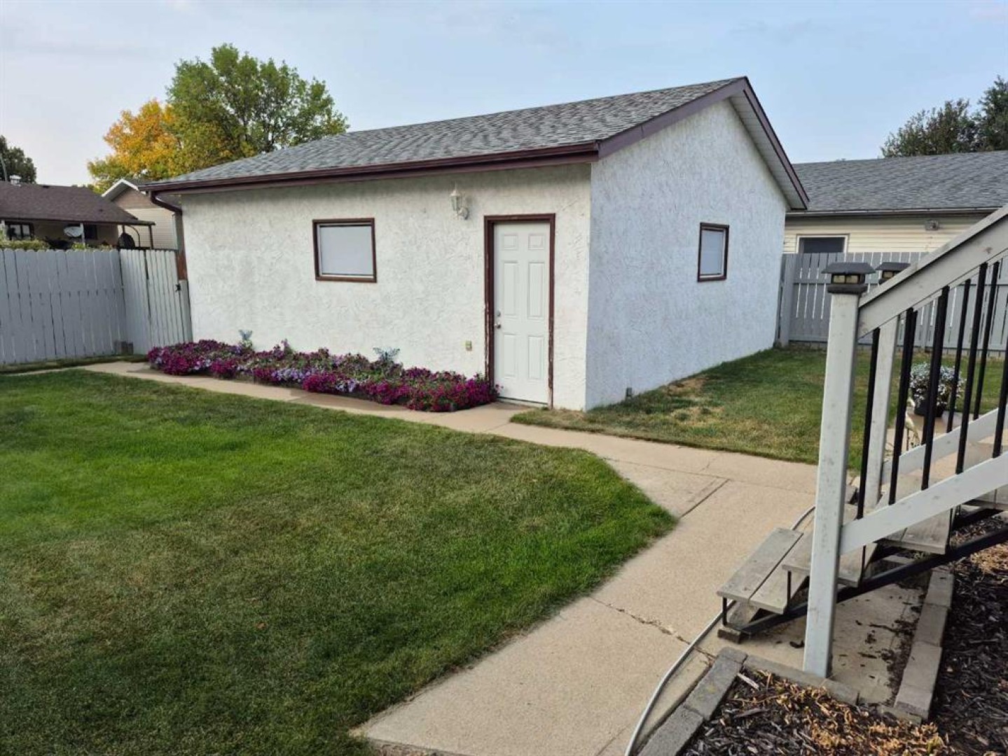 The lower level offers a spacious family room with a gas stove for cozy evenings, a large additional bedroom, plenty of storage, laundry, and a renovated 3-piece bathroom. Outside, enjoy a fully landscaped backyard with a hot tub hookup, a 23'4" x 23'4" detached garage, and RV and/or additional off street parking in the front.