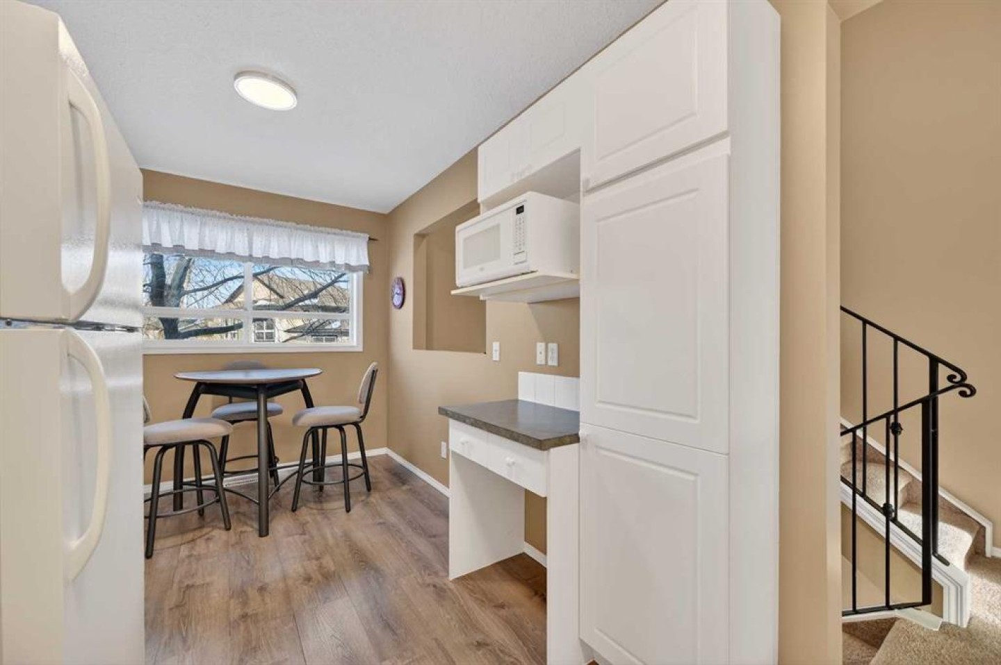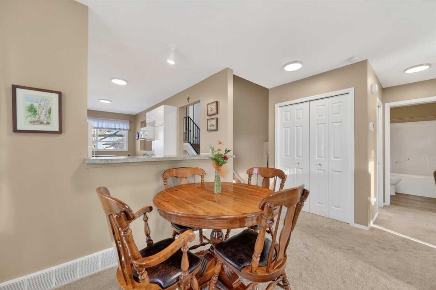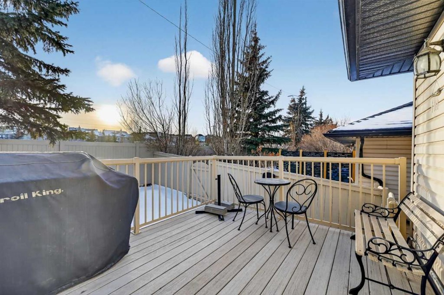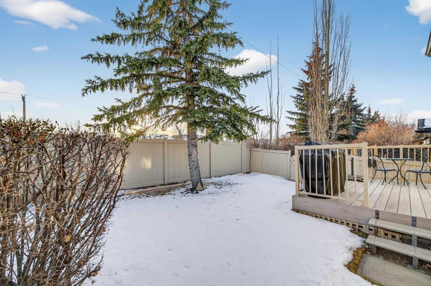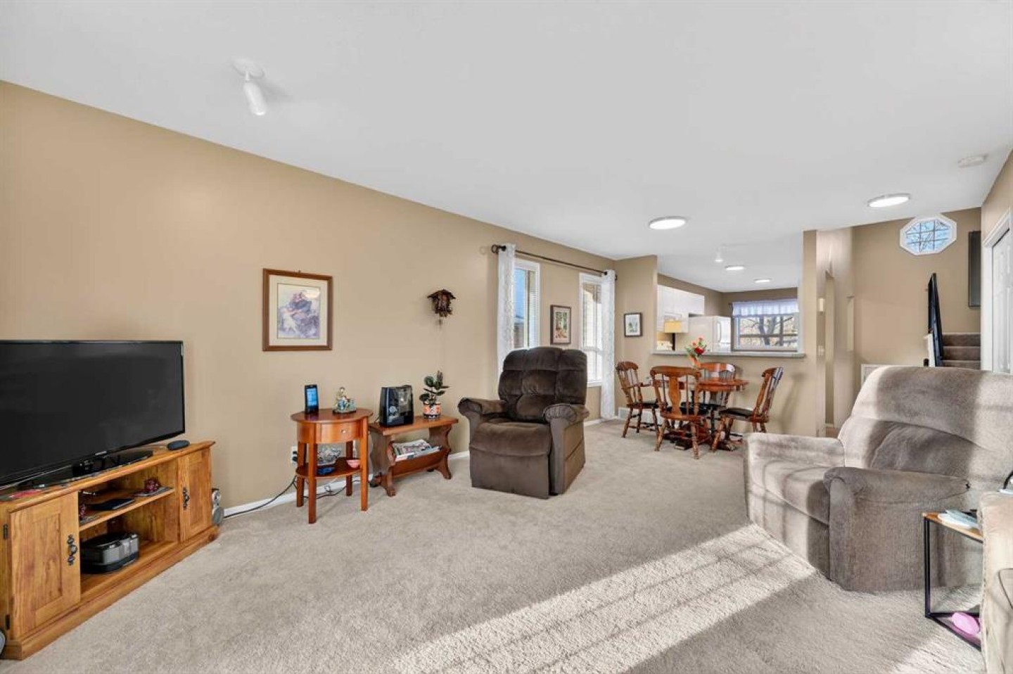 Welcome to West Pointe Villas, Airdrie’s sought-after adult living community, where pride of original ownership is evident throughout this beautifully maintained home. Thoughtfully designed with comfort and functionality in mind, the main level features an open-concept kitchen overlooking the living room, creating a bright and airy atmosphere. A generously sized dining area sits adjacent to a large window, offering an inviting space for everyday meals or entertaining. French doors from the living room lead to a sunny south-facing deck, overlooking a peaceful, fully fenced backyard—perfect for relaxing or enjoying outdoor time. A spacious bedroom on the main level can serve as a primary or guest room and is conveniently located next to a full four-piece bathroom. The upper level is dedicated entirely to a private primary retreat, featuring a large walk-in closet and a full four-piece ensuite, providing a quiet and comfortable escape. The lower level includes an additional bedroom, a welcoming family room, aundry area, and a large storage room, offering excellent versatility and extra living space. There is a rough in for a 3rd bathroom in the basement. Completing the home is a beautifully landscaped backyard and a single attached garage, making this property an exceptional opportunity for low-maintenance living in a well-established community.