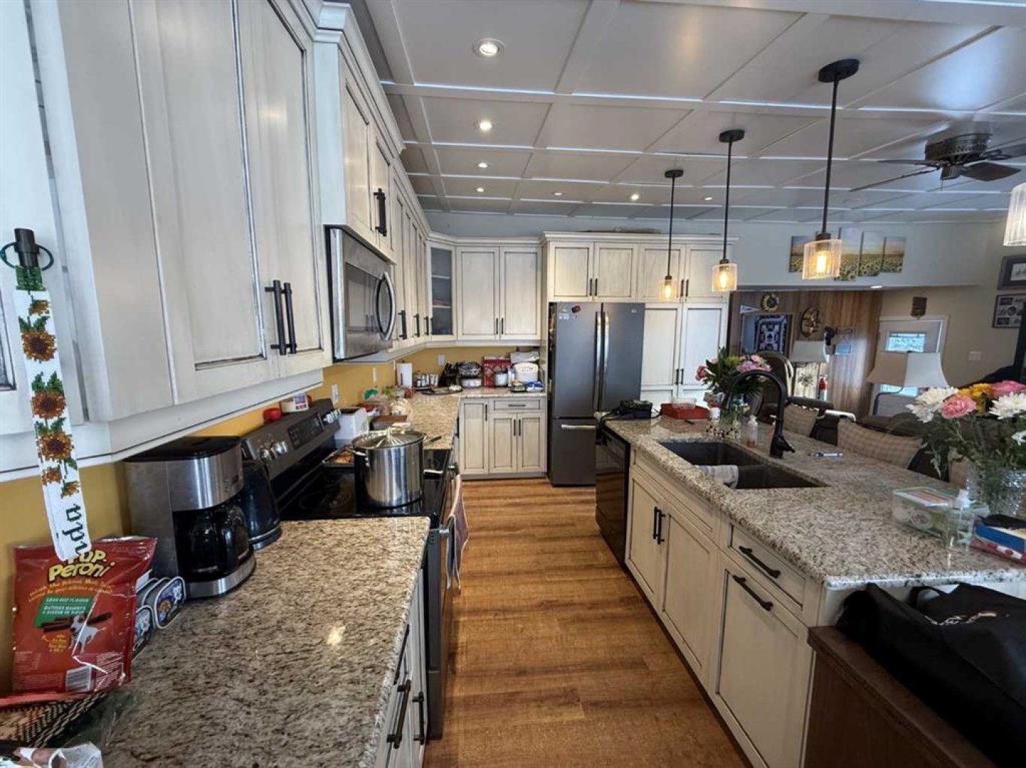 At the heart of the home is a stunning, newly renovated kitchen that rivals anything you’ll find in the city, featuring granite countertops, beautiful cabinetry, and a spacious island—perfect for entertaining or baking up your favorite treats. The dining room is wrapped in full-width of windows, showcasing breathtaking, year-round lake views, while the cozy living room invites you to relax beside the wood stove, keeping winter chills at bay.