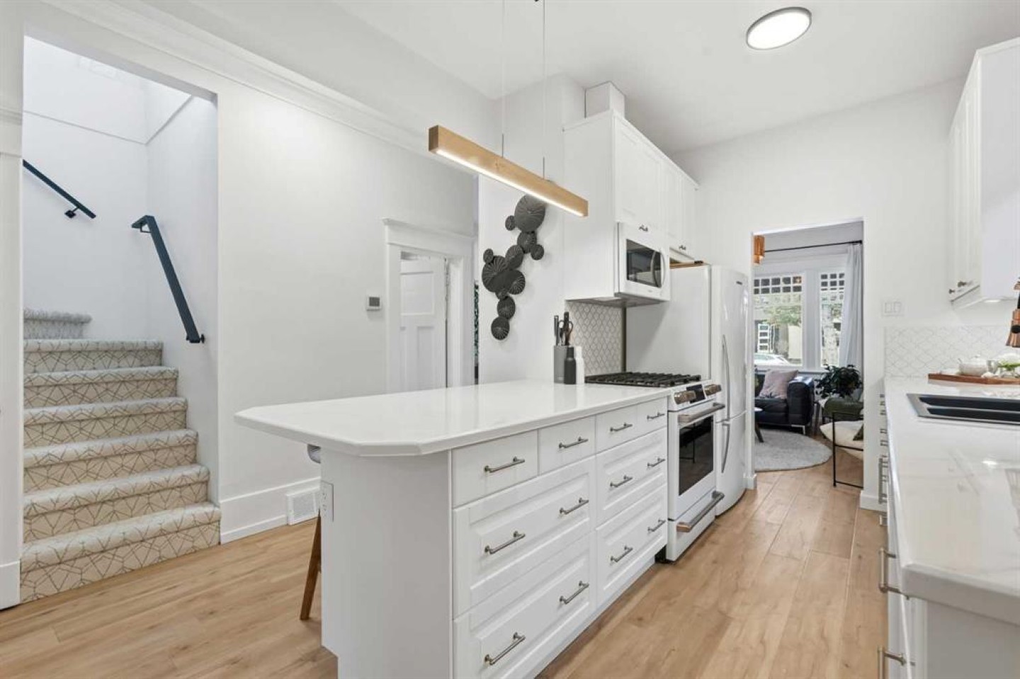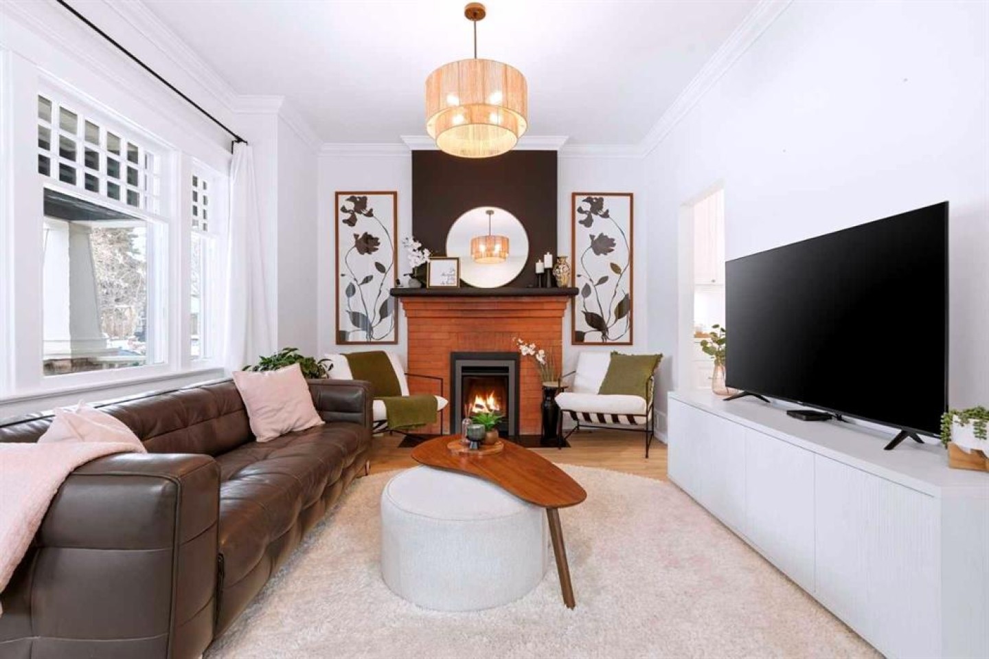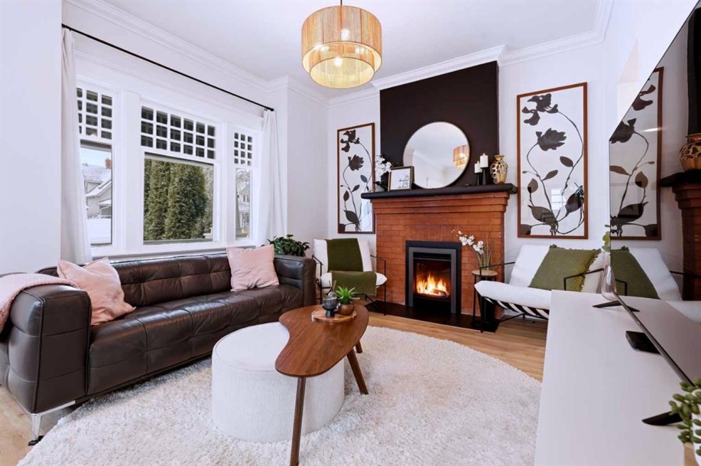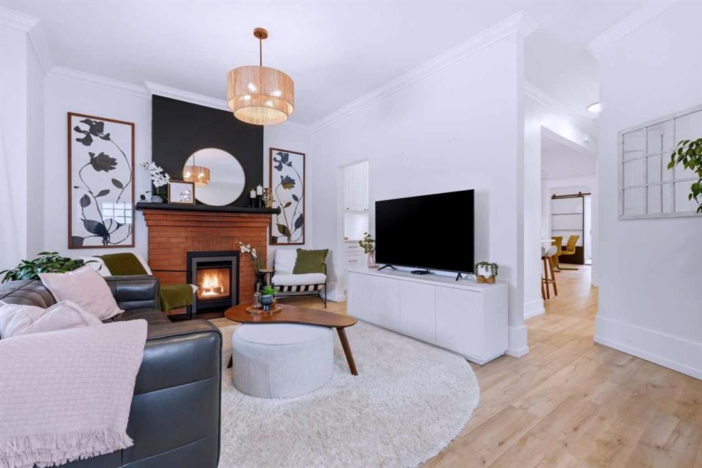 Welcome to this beautifully updated home in the heart of Sunnyside, where timeless character meets a thoughtful modern addition—offering the perfect blend of charm, comfort, and functionality in one of Calgary’s most walkable inner-city communities. The curb appeal is immediately striking with a coastal-inspired exterior featuring deep navy shingle-style siding, crisp white trim, and an inviting covered front porch. Inside, you’ll love the warmth and personality throughout, highlighted by 9.5’ ceilings, oversized baseboards, and a flexible main floor layout designed for today’s lifestyle. The living room is anchored by a cozy gas fireplace, creating the perfect space to relax and unwind. An extensive 2017/2018 renovation introduced a bright and functional two-storey rear addition, adding incredible everyday convenience. Enjoy the spacious mudroom/boot room and laundry area with heated floors, surrounded by large triple-pane windows that bring in beautiful natural light. A convenient main floor 3-piece bathroom adds to the smart layout. Upstairs, the primary suite feels like a private retreat with a walk-in closet, built-in storage, a private balcony, and a full ensuite bathroom—a rare and desirable feature in a character home. The outdoor spaces are designed for easy enjoyment and entertaining. The east-facing backyard features a composite deck, stone patio, and pergola—perfect for morning sun and summer evenings. With two gas lines already in place for a BBQ and fire feature, your backyard setup is ready to go. The irrigation system services the grass, flower beds, hanging baskets, and planters, keeping everything looking lush with minimal effort. Additional upgrades include central air conditioning for year-round comfort. And for those who know Sunnyside, the oversized detached garage (23’ x 15’) is a rare find with plenty of room for parking and storage. Steps to Kensington, parks, dog park, the river pathway system, and quick access downtown—this is inner-city living at its best.