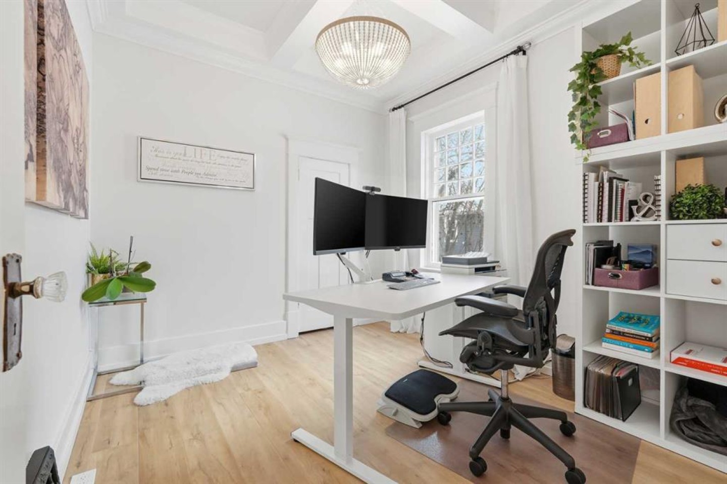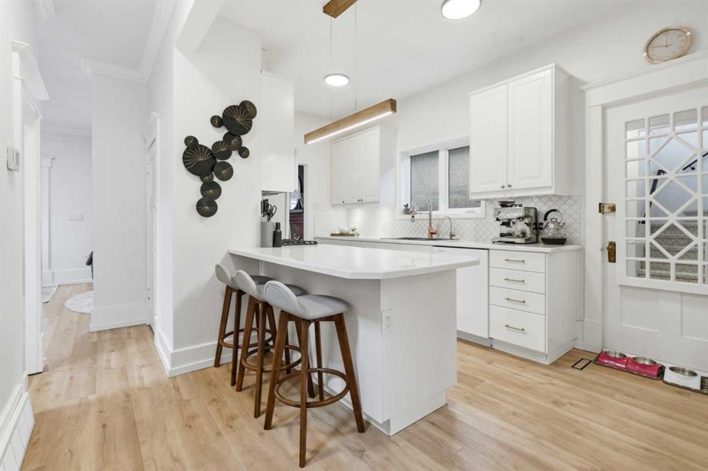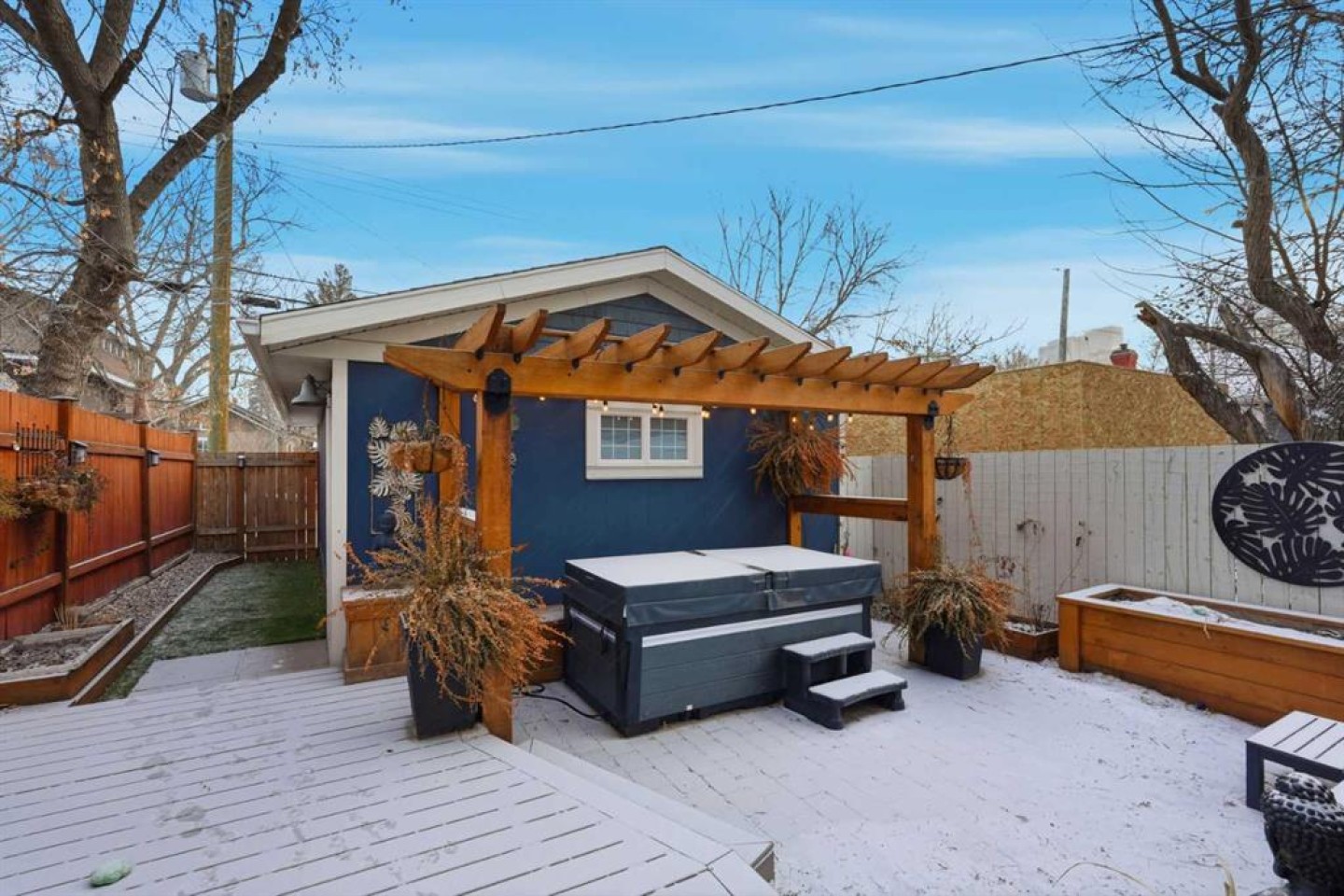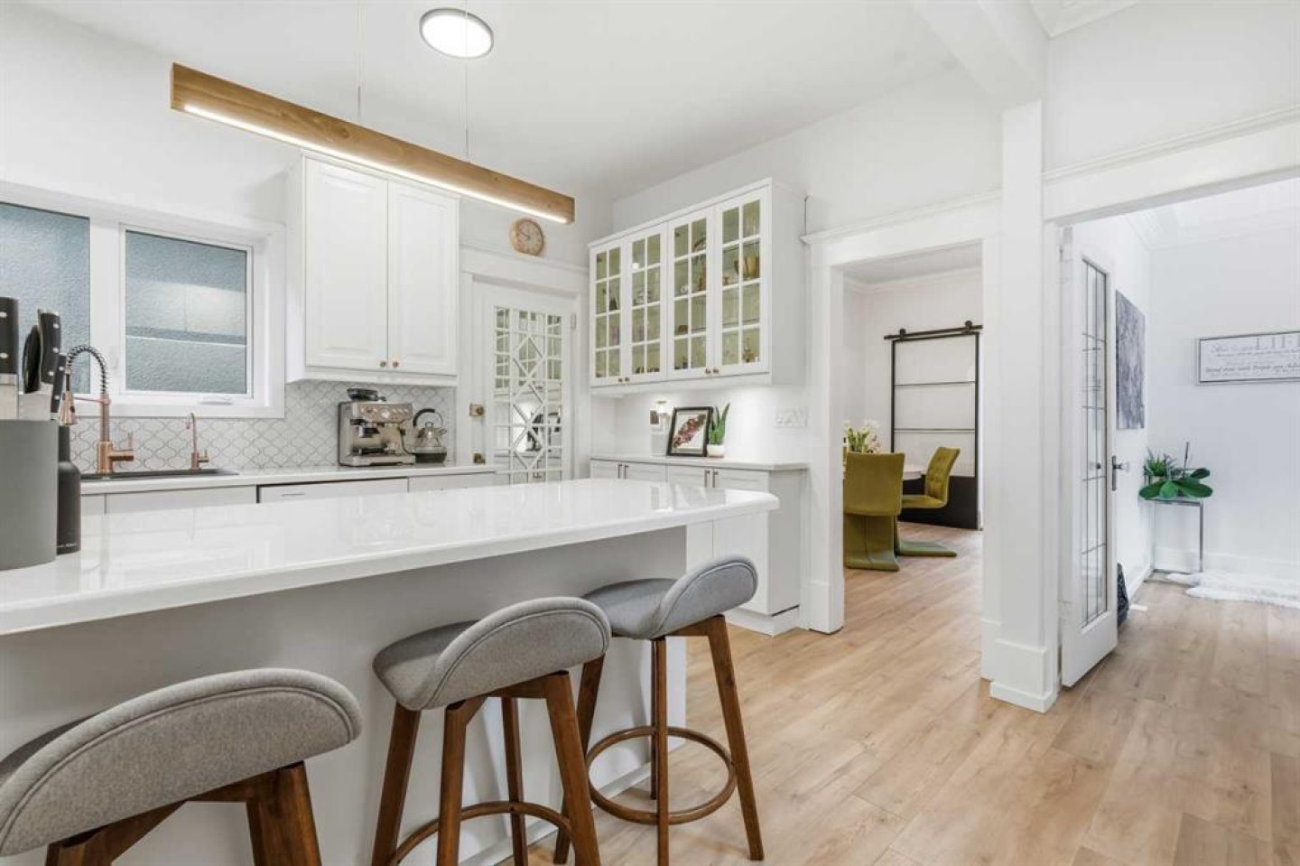 Welcome to this beautifully updated home in the heart of Sunnyside, where timeless character meets a thoughtful modern addition—offering the perfect blend of charm, comfort, and functionality in one of Calgary’s most walkable inner-city communities. The curb appeal is immediately striking with a coastal-inspired exterior featuring deep navy shingle-style siding, crisp white trim, and an inviting covered front porch. Inside, you’ll love the warmth and personality throughout, highlighted by 9.5’ ceilings, oversized baseboards, and a flexible main floor layout designed for today’s lifestyle. The living room is anchored by a cozy gas fireplace, creating the perfect space to relax and unwind. An extensive 2017/2018 renovation introduced a bright and functional two-storey rear addition, adding incredible everyday convenience. Enjoy the spacious mudroom/boot room and laundry area with heated floors, surrounded by large triple-pane windows that bring in beautiful natural light. A convenient main floor 3-piece bathroom adds to the smart layout. Upstairs, the primary suite feels like a private retreat with a walk-in closet, built-in storage, a private balcony, and a full ensuite bathroom—a rare and desirable feature in a character home. The outdoor spaces are designed for easy enjoyment and entertaining. The east-facing backyard features a composite deck, stone patio, and pergola—perfect for morning sun and summer evenings. With two gas lines already in place for a BBQ and fire feature, your backyard setup is ready to go. The irrigation system services the grass, flower beds, hanging baskets, and planters, keeping everything looking lush with minimal effort. Additional upgrades include central air conditioning for year-round comfort. And for those who know Sunnyside, the oversized detached garage (23’ x 15’) is a rare find with plenty of room for parking and storage. Steps to Kensington, parks, dog park, the river pathway system, and quick access downtown—this is inner-city living at its best.