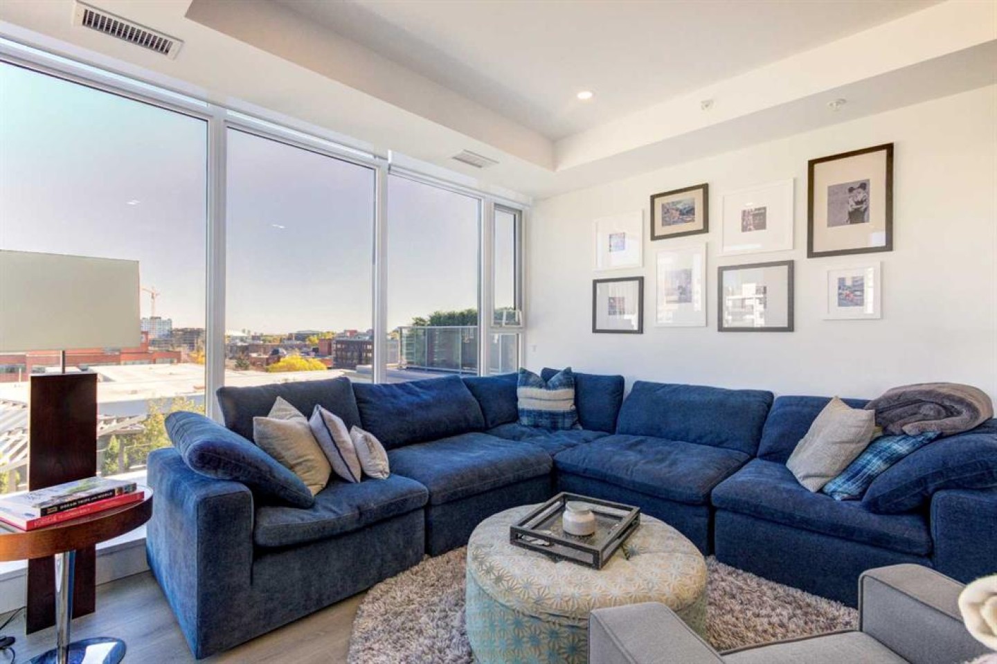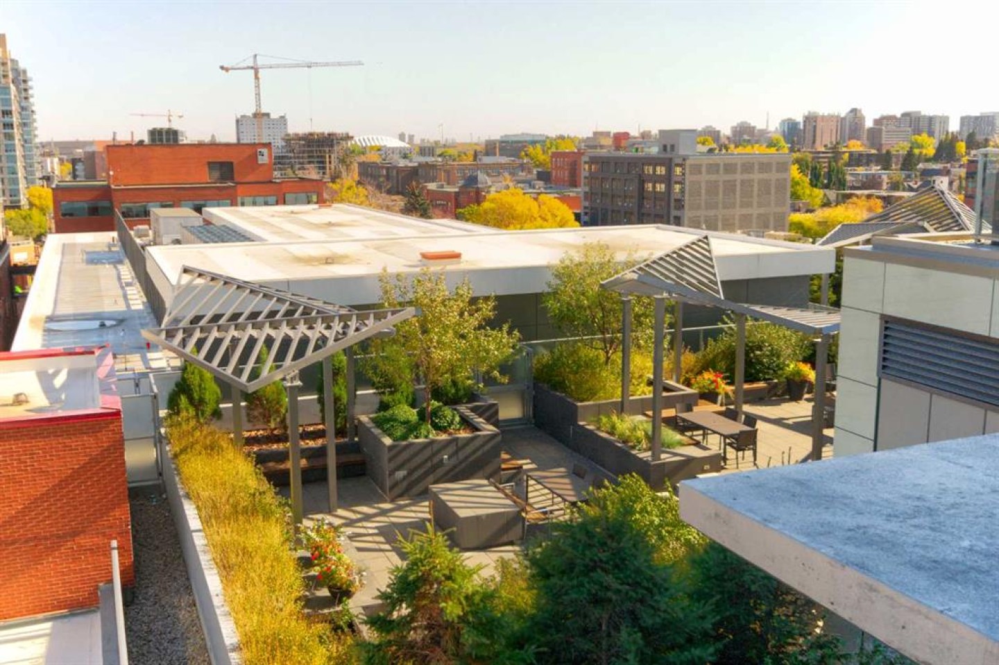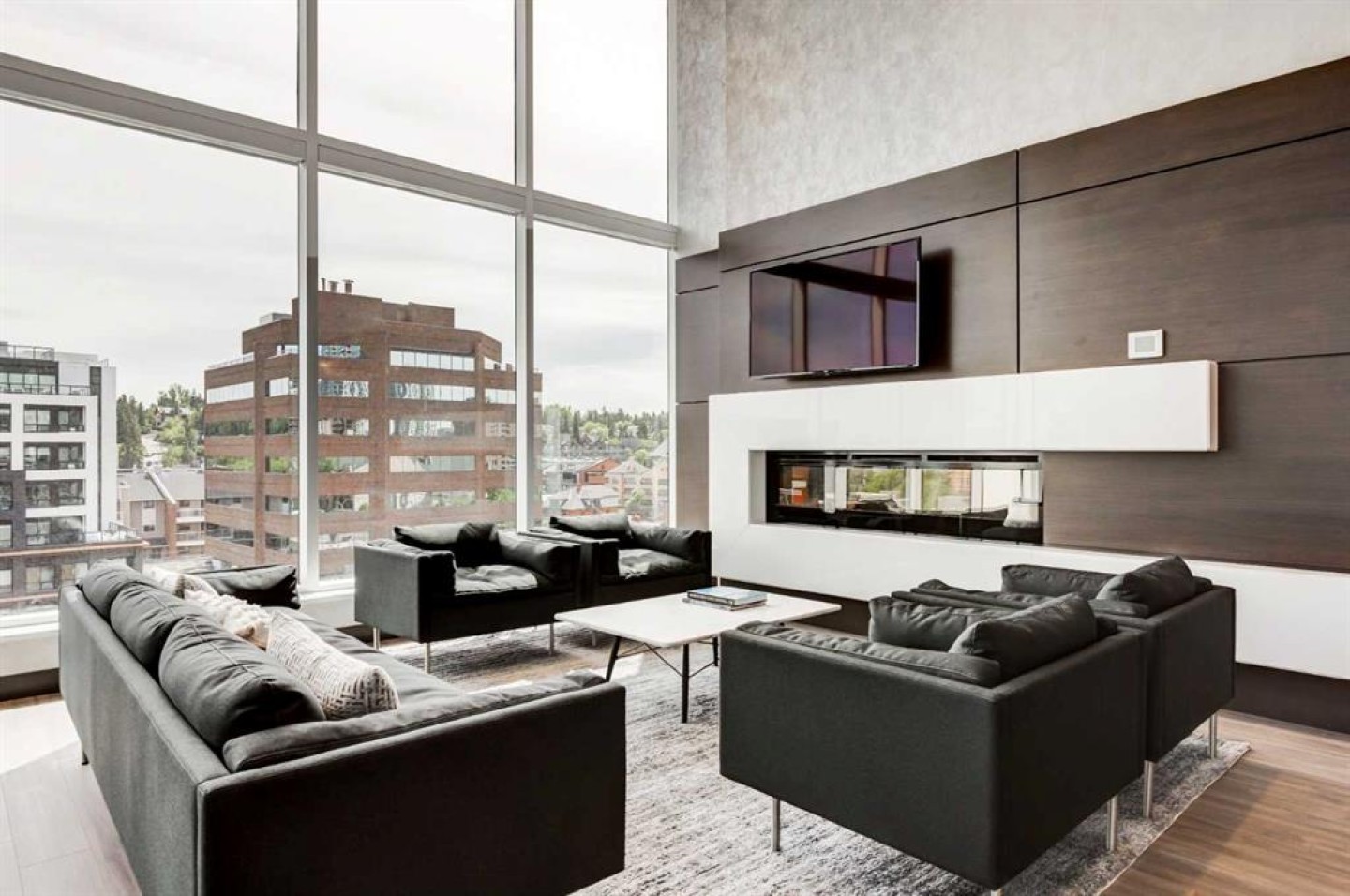 Welcome to unit 703 in The Royal! A lovely 2 bedroom 2 bathroom double balcony corner unit with stunning downtown views. The floor to ceiling windows flood the main living space with natural light and the north and east vistas are stunning. The bright kitchen is fully equipped with a large quartz island, high end appliances, plenty of cabinet and counter space with custom built in - all overlooking the main living and dining areas, perfect for entertaining. Large primary bedroom, with direct access to the second balcony, features a walk-in closet, an ensuite with a large glass door shower, double vanity and heated floors. The second bedroom is located on the opposite side of the unit, perfect for guests or home office. Other features include air conditioning, a gas line on the balcony for bbq, in-suite full size stacked laundry and additional 4 piece bathroom with soaker tub. Residents can enjoy the many amenities including a fitness center, steam room, sauna, squash court, 24-hour concierge/security, outdoor courtyard, and private dining area for larger get togethers. Located just off 17th avenue you will have quick access to great shopping, restaurants, groceries, coffee shops and pubs. Building is very pet friendly, with approval, and there are many parks and green spaces near by. This unit is complete with a secure heated underground parking space and a separate storage locker. An excellent well cared for urban home.