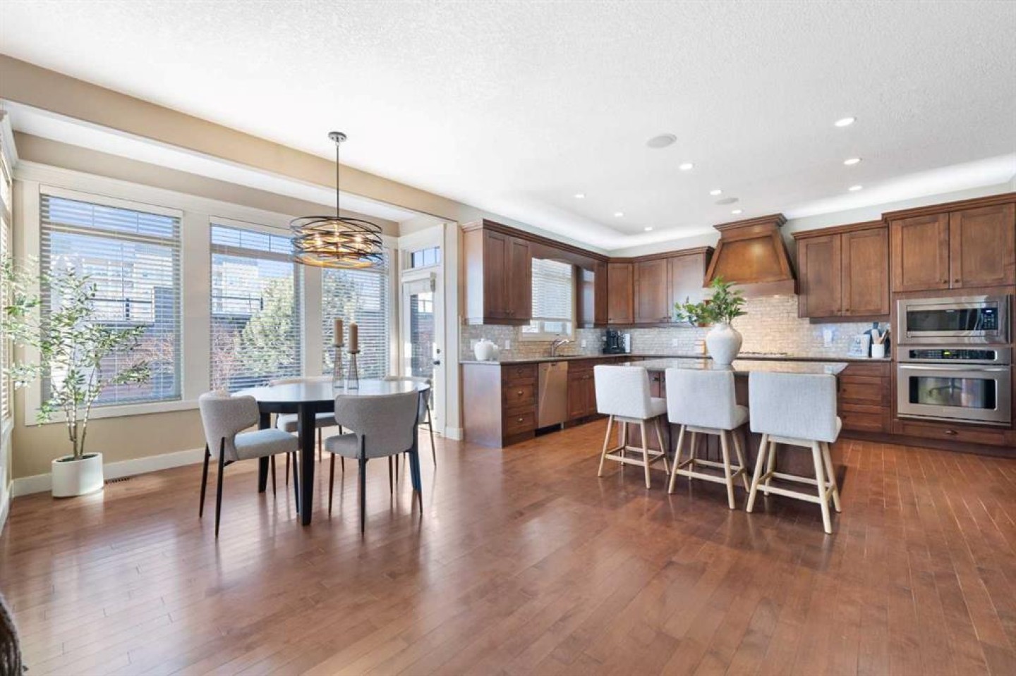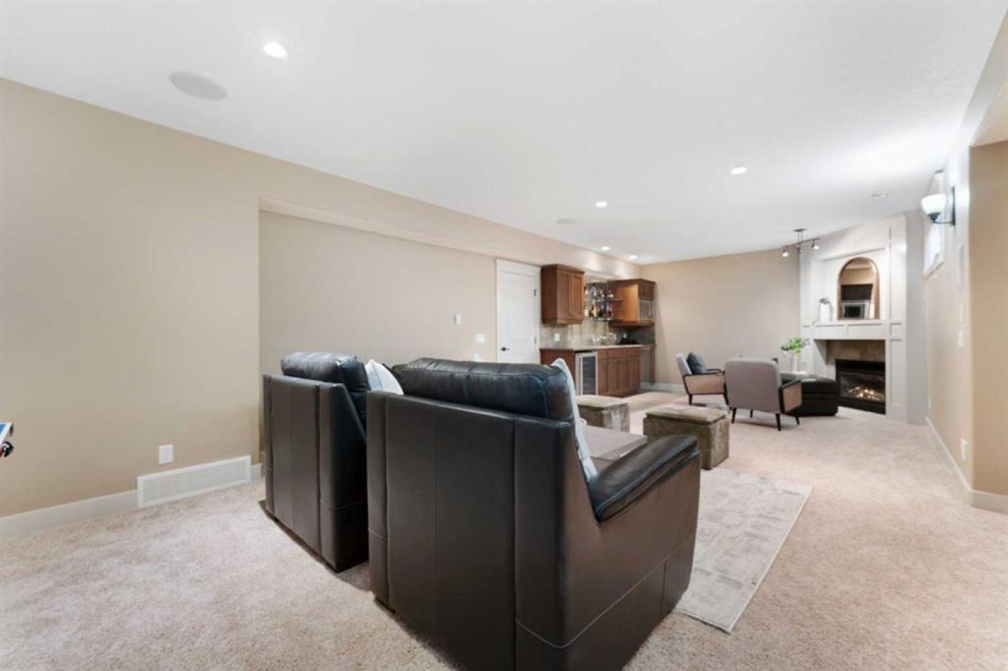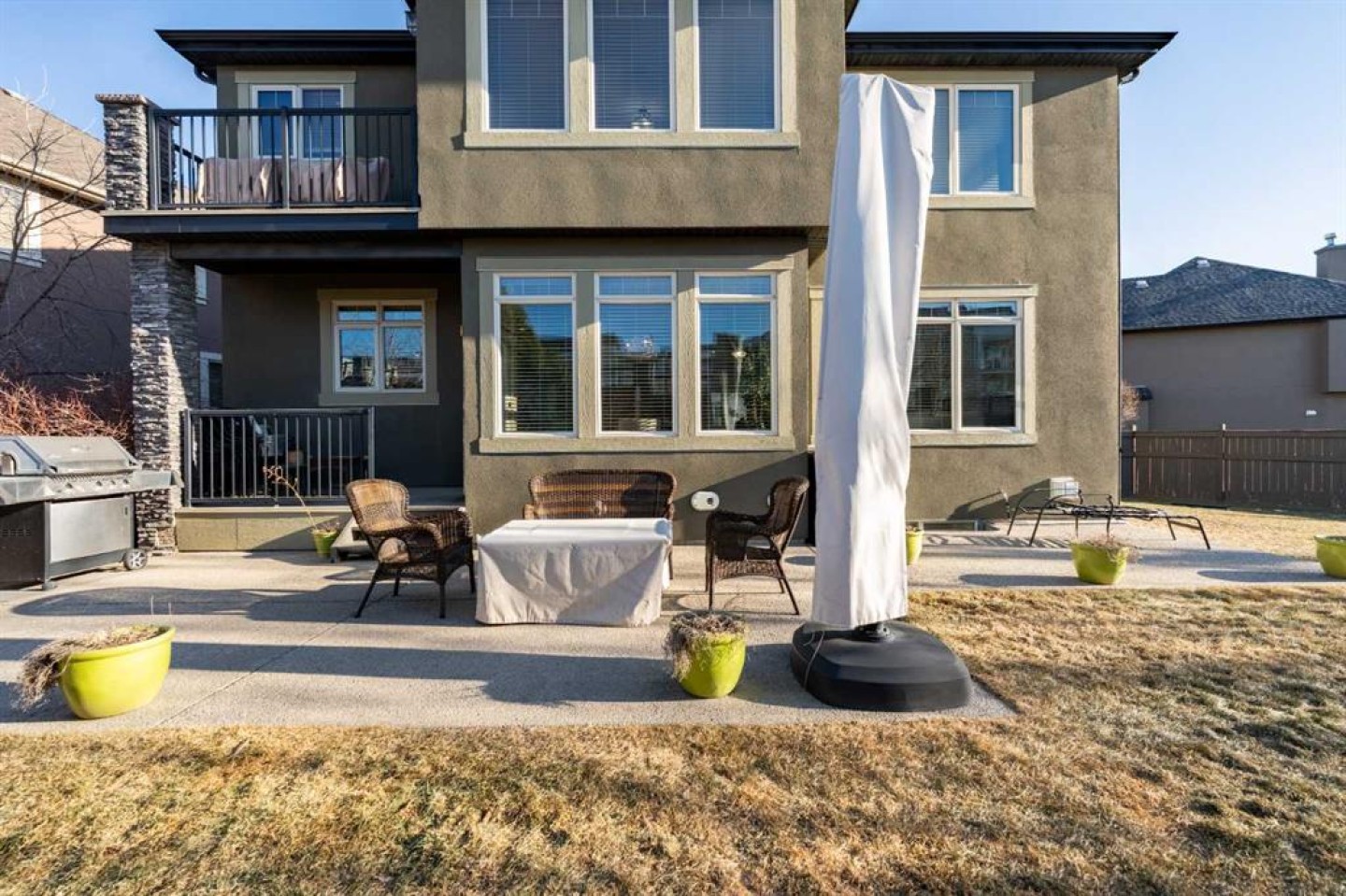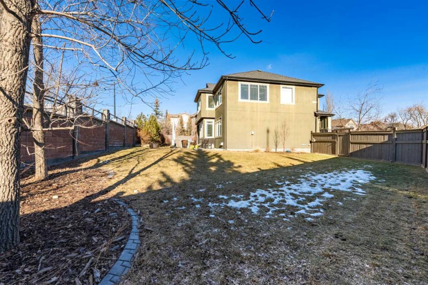 Rare Offering. Nestled in the prestigious community of Aspen Estates, this exquisite estate home blends timeless elegance with modern luxury and exceptional functionality. Situated on a massive west-facing reverse pie lot in a quiet cul-de-sac, this immaculate, original-owner home offers mountain views, privacy, and a sun-drenched backyard—perfect for family living and entertaining. Built by Homes By Us, this residence showcases a dream floorplan where functionality meets refined luxury. From the moment you step inside, you’re greeted by soaring two-storey ceilings in the foyer and an abundance of natural light spanning the entire back of the home through expansive windows. The open-concept main floor is anchored by a truly impressive gourmet kitchen, the heart of the home. Featuring a massive central island, abundant storage, and seamless flow into both a walk-through pantry and a separate pantry room, this space is designed for busy families and effortless hosting. The kitchen opens beautifully into the spacious breakfast nook and family room, highlighted by a focal fireplace and custom built-ins. A large formal dining room, complete with French doors, also functions perfectly as a private home office. Completing the main level is a massive mudroom off the garage. Upstairs, you’re immediately drawn into the bright and inviting bonus room, capturing mountain views to the south and west. The primary suite is a true retreat, featuring a luxurious five-piece ensuite with a corner jetted tub, dual sinks, a glass-enclosed shower and a large walk-in closet with built-in dresser and shelving. Step outside to your private owner’s balcony and take in the views. Two additional spacious bedrooms share a Jack-and-Jill bathroom, while the dream laundry room offers extensive cabinetry and storage. The fully developed basement provides exquisitely finished living space, including a large media and recreation room with a second cozy fireplace and wet bar. Down the hall you’ll find a full bathroom, home gym, and a generous fourth bedroom—ideal for guests or growing families. Additional highlights include two high-efficiency furnaces (cleaned January 2026), air conditioning, carpets cleaned January 2026, a fully landscaped yard, an oversized garage, and a home that has been meticulously cared for from day one. The sense of community is exceptional, with amazing neighbours adding to the appeal. This immaculate home on a rare oversized corner reverse-pie lot offers the added bonus of no sidewalks to shovel and is walking distance to Aspen Landing, the C-Train, multiple parks, Westside Recreation Centre, and top-tier schools including Dr. Roberta Bondar, Rundle College, Webber Academy, and Ernest Manning High School. With easy access to Stoney Trail, downtown Calgary, and the Rocky Mountains, this exceptional property blends modern elegance with family comfort in one of the city’s most sought-after westside communities. This exceptional