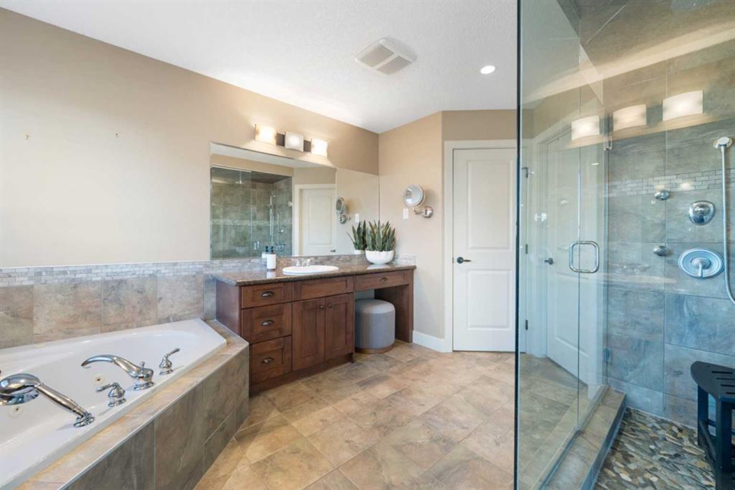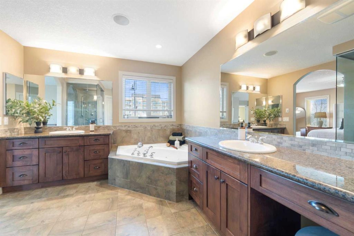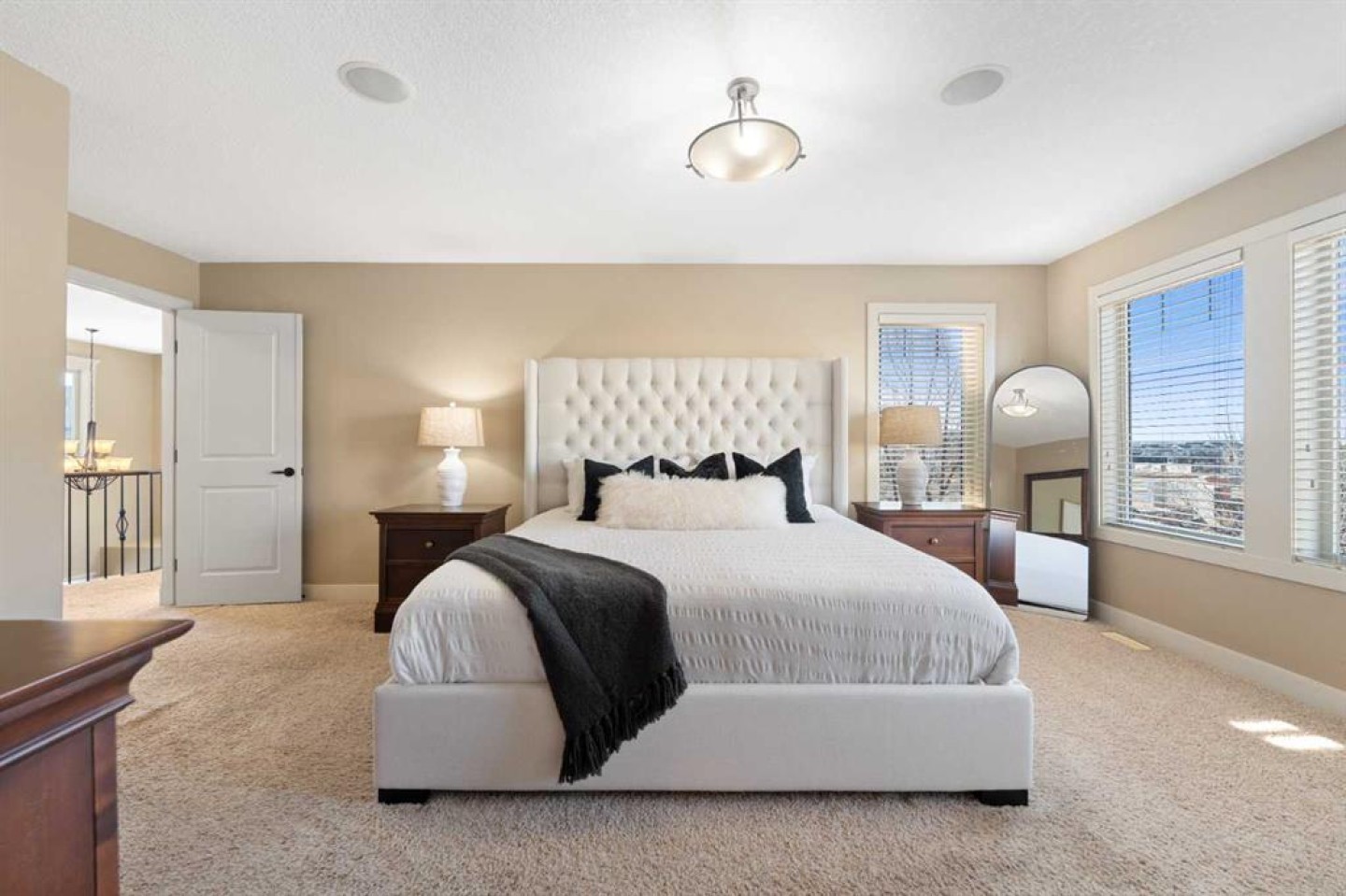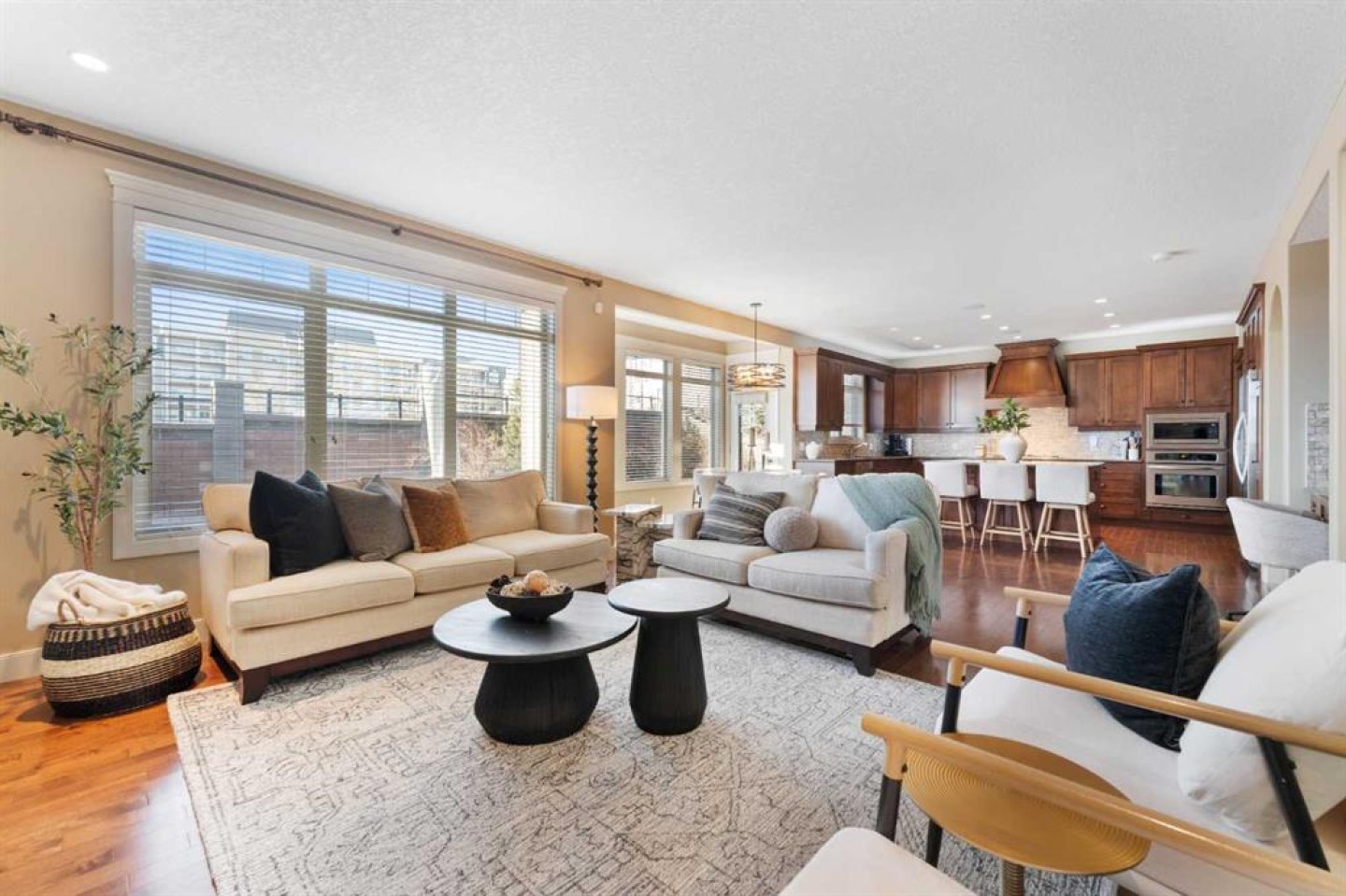 Rare Offering. Nestled in the prestigious community of Aspen Estates, this exquisite estate home blends timeless elegance with modern luxury and exceptional functionality. Situated on a massive west-facing reverse pie lot in a quiet cul-de-sac, this immaculate, original-owner home offers mountain views, privacy, and a sun-drenched backyard—perfect for family living and entertaining. Built by Homes By Us, this residence showcases a dream floorplan where functionality meets refined luxury. From the moment you step inside, you’re greeted by soaring two-storey ceilings in the foyer and an abundance of natural light spanning the entire back of the home through expansive windows. The open-concept main floor is anchored by a truly impressive gourmet kitchen, the heart of the home. Featuring a massive central island, abundant storage, and seamless flow into both a walk-through pantry and a separate pantry room, this space is designed for busy families and effortless hosting. The kitchen opens beautifully into the spacious breakfast nook and family room, highlighted by a focal fireplace and custom built-ins. A large formal dining room, complete with French doors, also functions perfectly as a private home office. Completing the main level is a massive mudroom off the garage. Upstairs, you’re immediately drawn into the bright and inviting bonus room, capturing mountain views to the south and west. The primary suite is a true retreat, featuring a luxurious five-piece ensuite with a corner jetted tub, dual sinks, a glass-enclosed shower and a large walk-in closet with built-in dresser and shelving. Step outside to your private owner’s balcony and take in the views. Two additional spacious bedrooms share a Jack-and-Jill bathroom, while the dream laundry room offers extensive cabinetry and storage. The fully developed basement provides exquisitely finished living space, including a large media and recreation room with a second cozy fireplace and wet bar. Down the hall you’ll find a full bathroom, home gym, and a generous fourth bedroom—ideal for guests or growing families. Additional highlights include two high-efficiency furnaces (cleaned January 2026), air conditioning, carpets cleaned January 2026, a fully landscaped yard, an oversized garage, and a home that has been meticulously cared for from day one. The sense of community is exceptional, with amazing neighbours adding to the appeal. This immaculate home on a rare oversized corner reverse-pie lot offers the added bonus of no sidewalks to shovel and is walking distance to Aspen Landing, the C-Train, multiple parks, Westside Recreation Centre, and top-tier schools including Dr. Roberta Bondar, Rundle College, Webber Academy, and Ernest Manning High School. With easy access to Stoney Trail, downtown Calgary, and the Rocky Mountains, this exceptional property blends modern elegance with family comfort in one of the city’s most sought-after westside communities. This exceptional