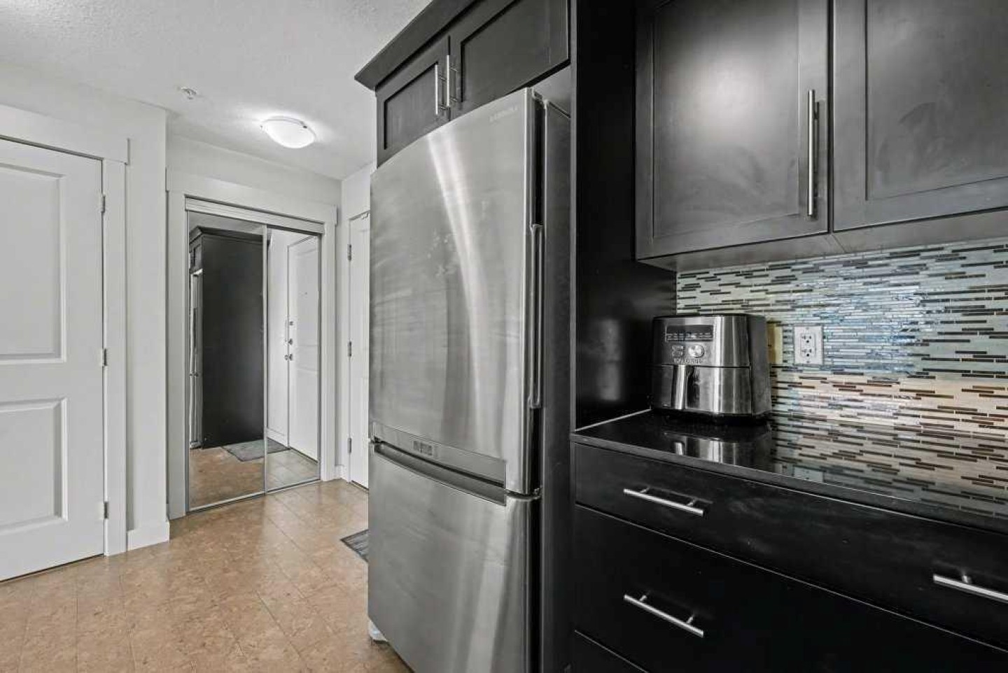 Welcome to SkyWest, a quality-built Truman Homes development. This affordable and functional 1-bedroom condo is ideally located on the 3rd floor and includes 1 titled parking stall. Step inside to a bright, modern open-concept layout designed for everyday living. The kitchen is both stylish and practical, featuring black granite countertops, stainless steel appliances, and a convenient eating bar that flows seamlessly into the spacious living and dining area. From here, enjoy a sunny south-facing exposure and step out onto your large covered balcony overlooking the quiet, courtyard-facing view—perfect for morning coffee or winding down after work. The bedroom is generously sized and complete with a walk-in closet, while the 4-piece bathroom and stacked front-load laundry (tucked neatly behind closet doors) round out the space with smart functionality. Located with quick access to Stoney Trail and Deerfoot Trail, you’re minutes from CrossIron Mills, and just a short walk to nearby shopping, green spaces, and playgrounds. Whether you’re a first-time buyer, downsizer, or investor, this is an excellent opportunity in a well-managed, well-located building.